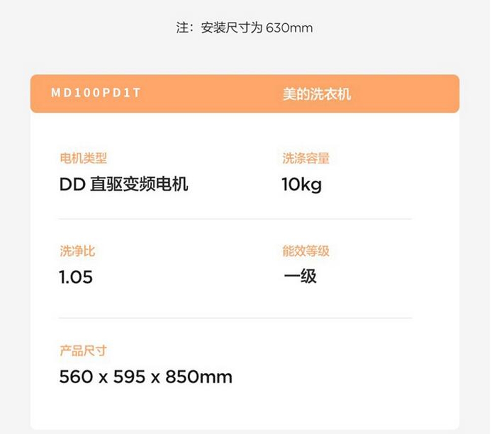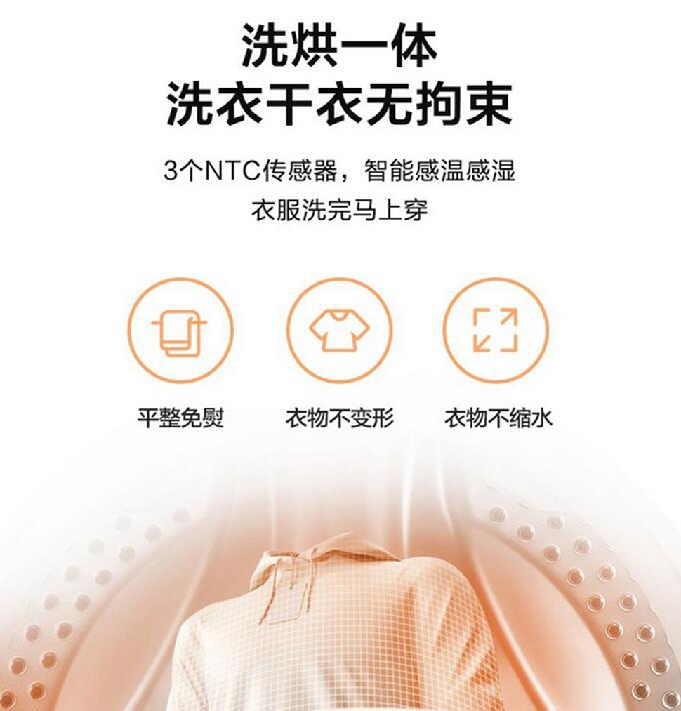 美的10公斤 DD直驱变频家用洗衣机MD100PD1T 洗烘一体