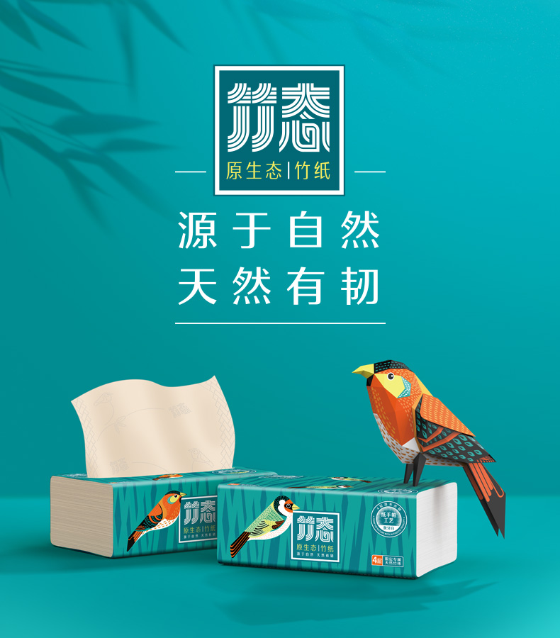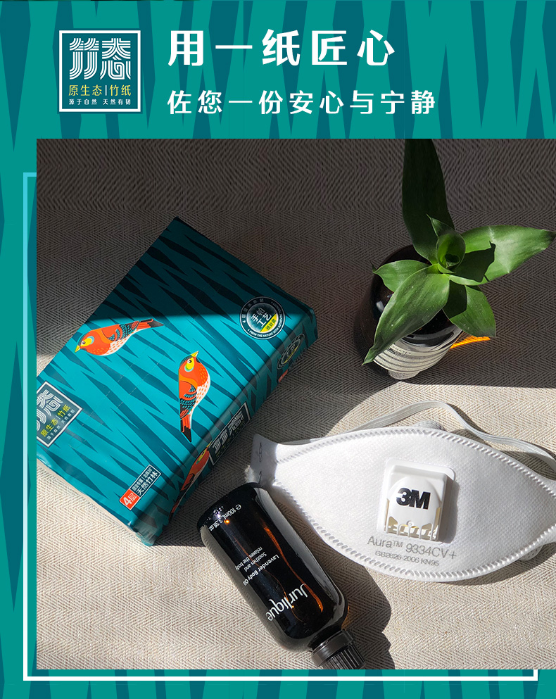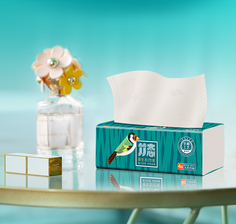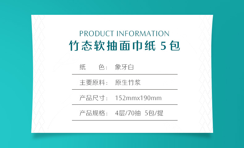 体验装/竹态象牙白压纹软抽抽纸4层70抽5包M码EC