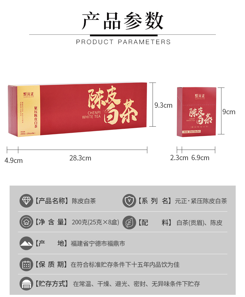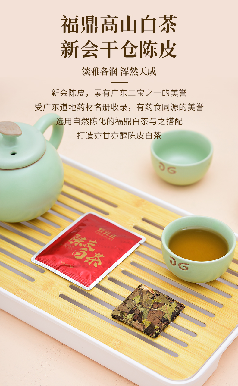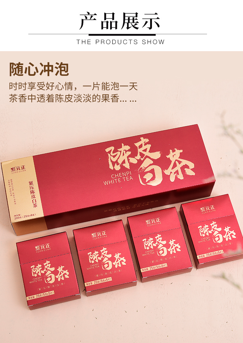 元正 紧压陈皮白茶 福鼎加新会组合小泡袋便携装200g(贡眉)