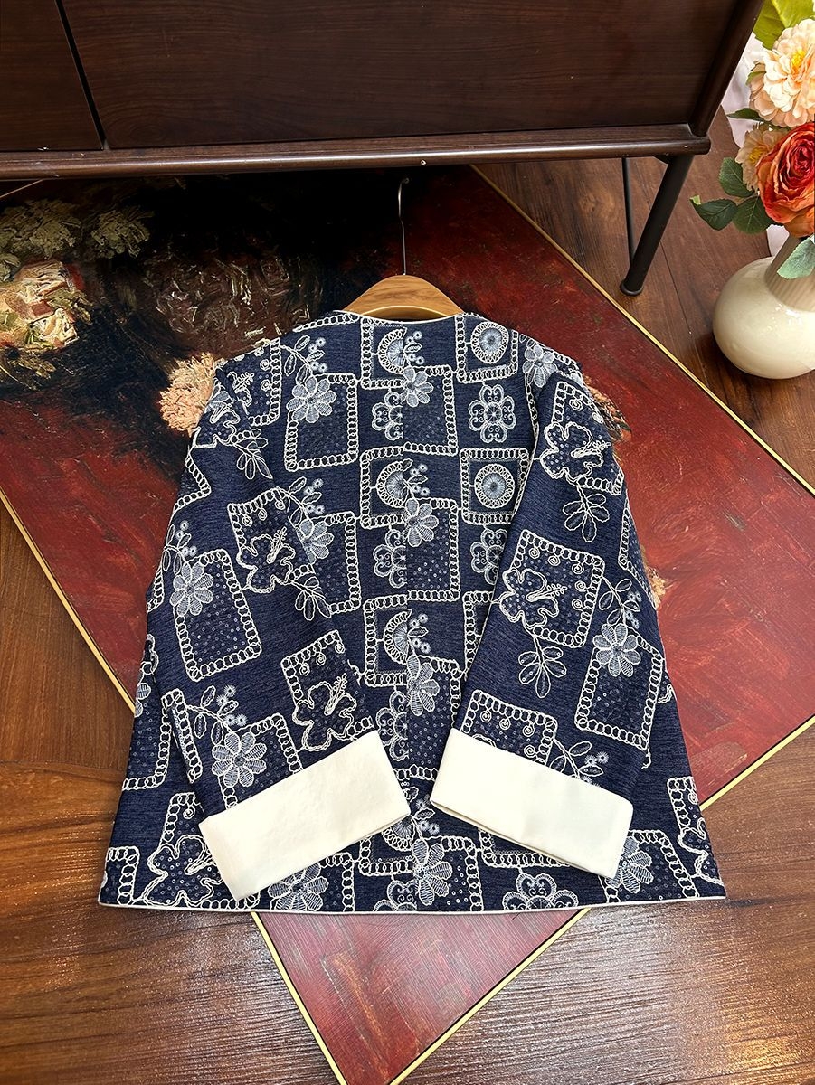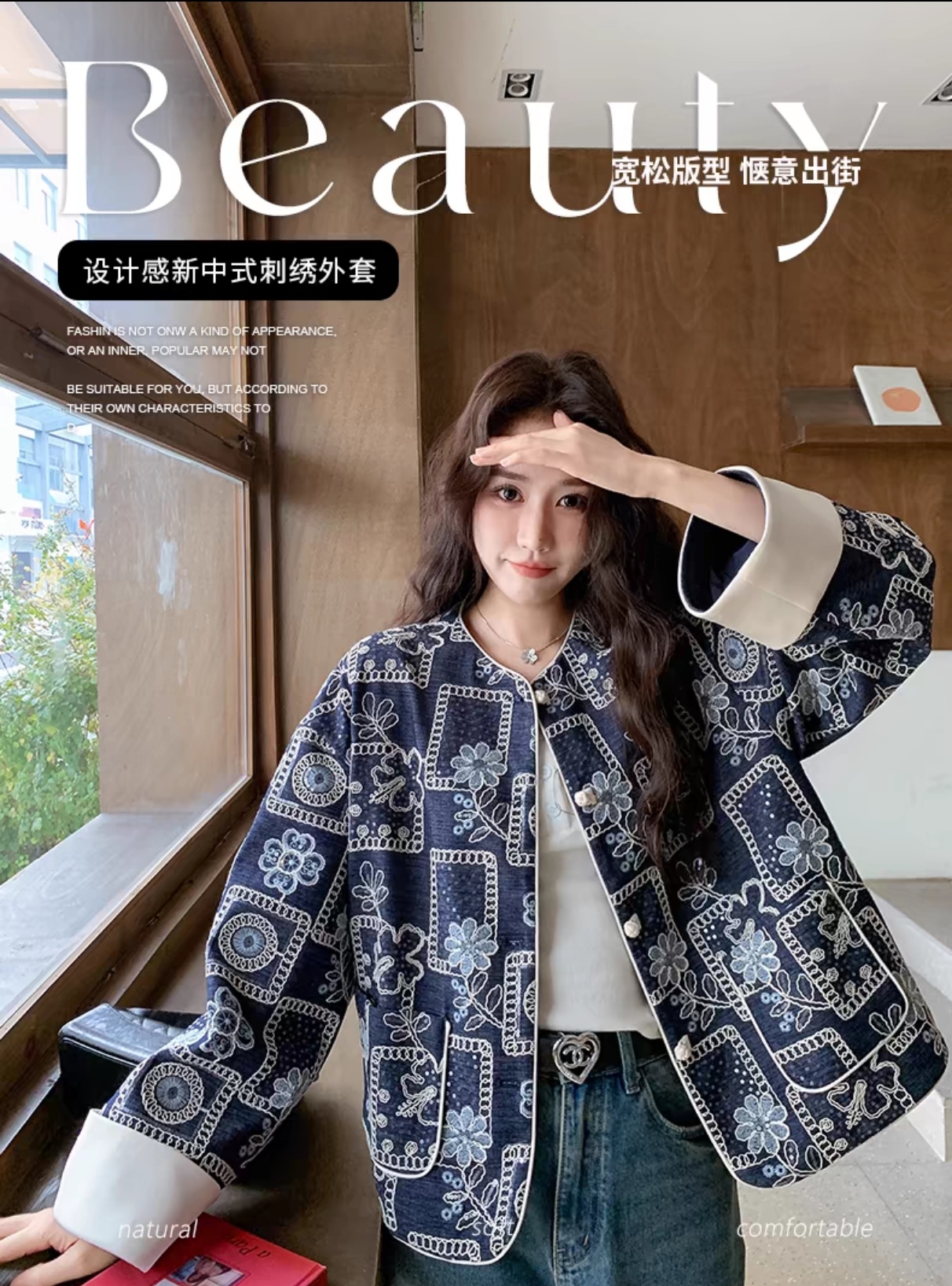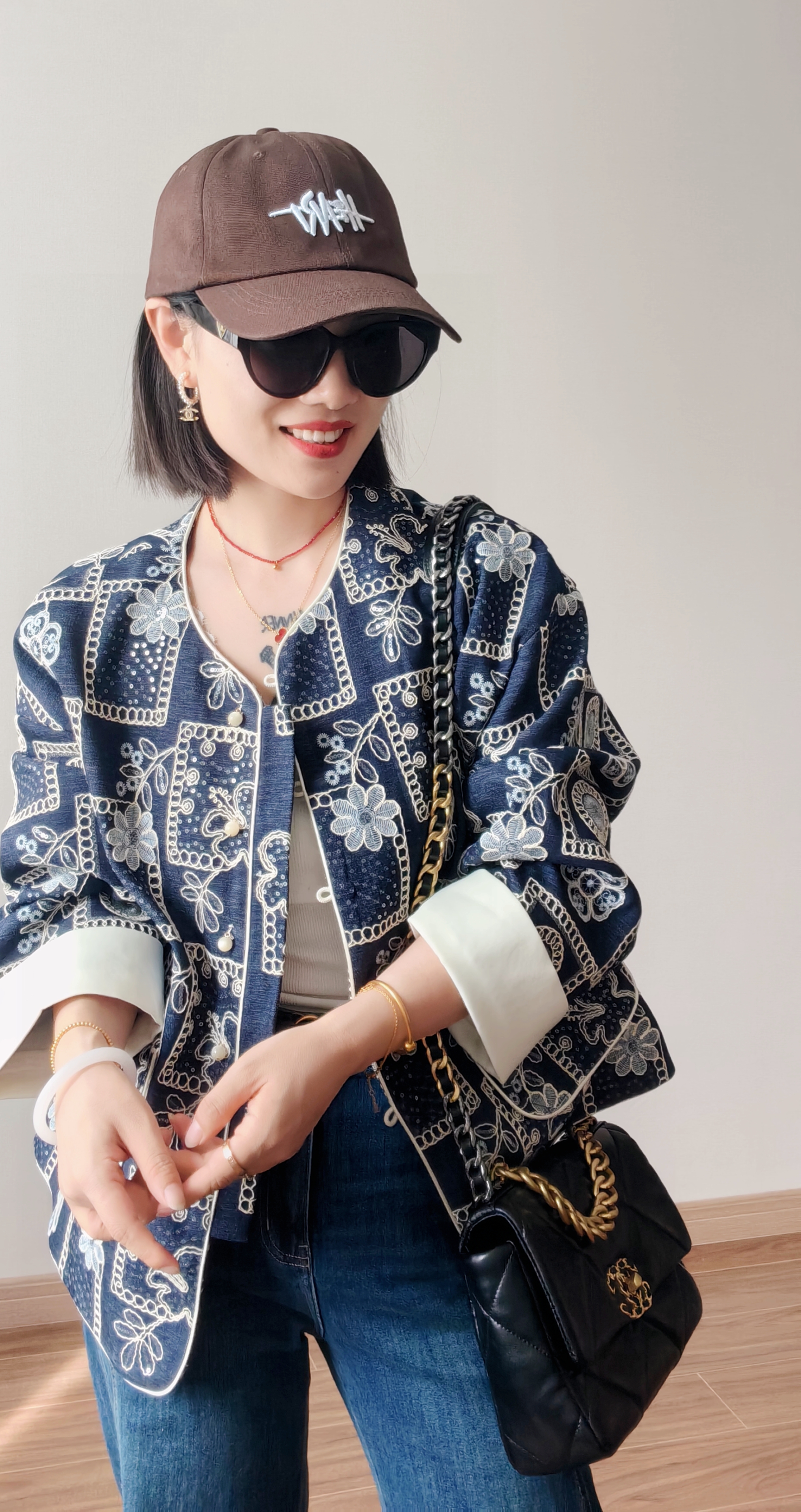 这款外套,面料上乘,挺括又舒适。其上刺绣工艺jing湛~