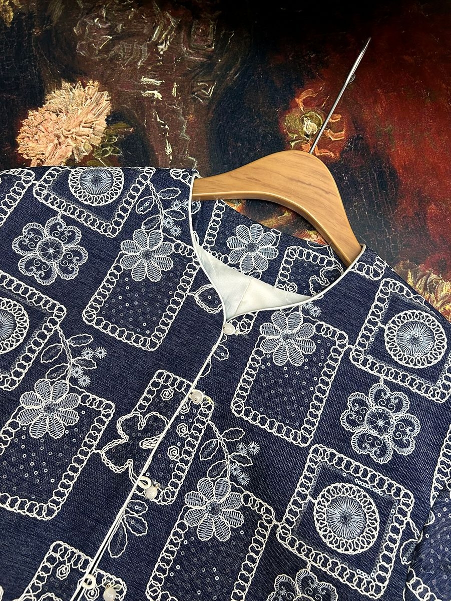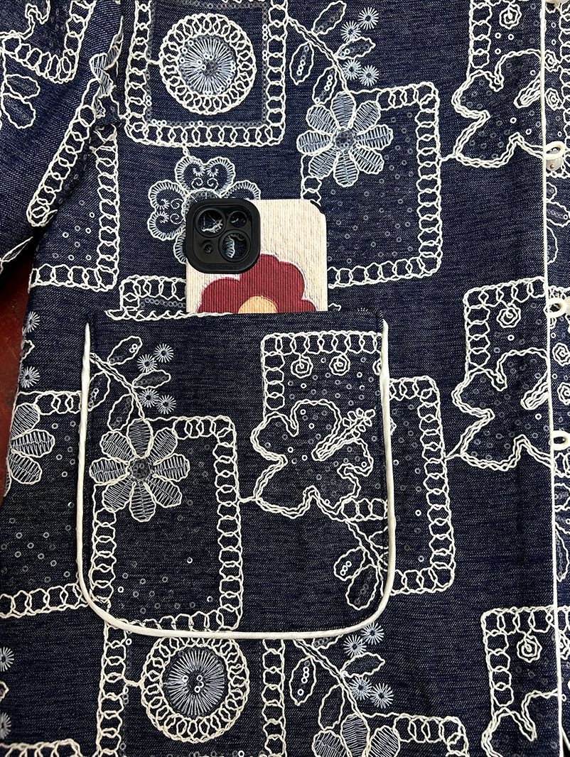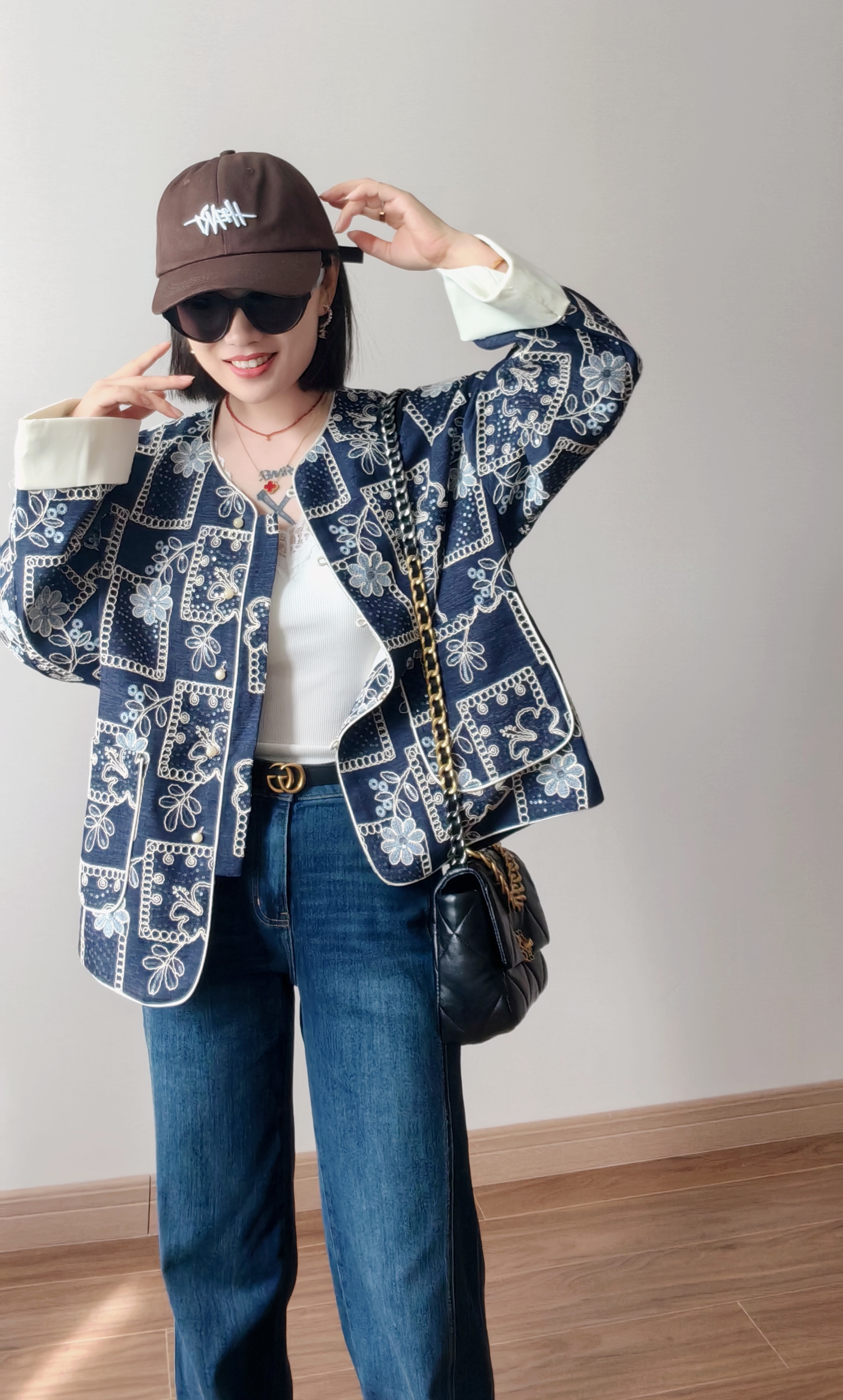 这款外套,面料上乘,挺括又舒适。其上刺绣工艺jing湛~