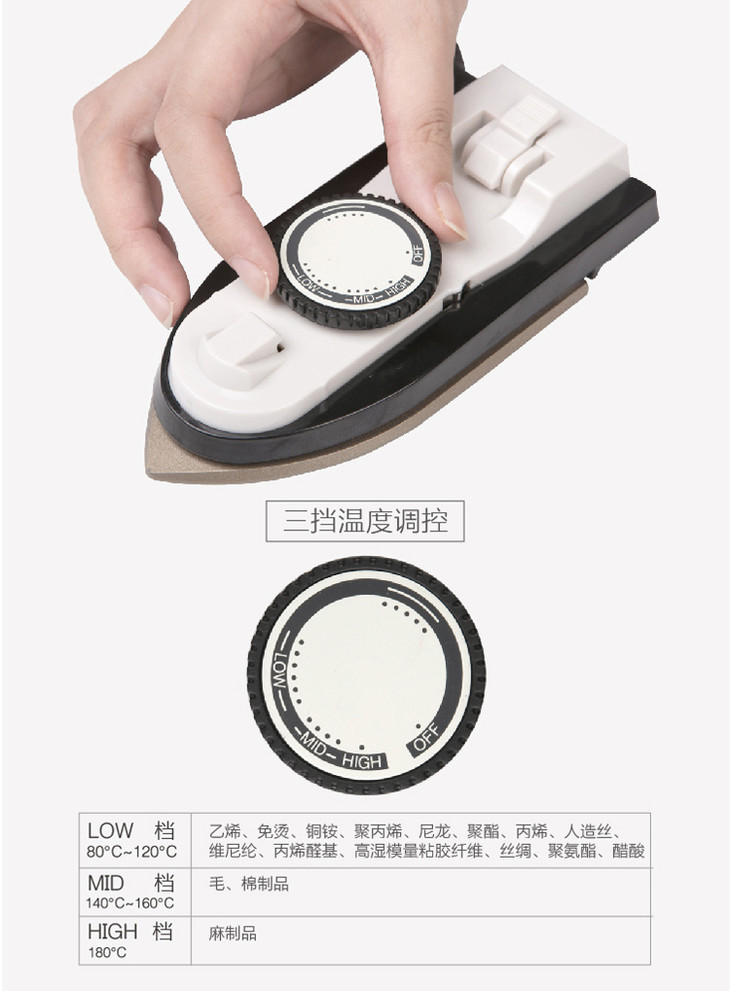 经常出差、旅行的人都有这样的烦恼,无法携带太大的熨斗或者挂烫机,衣服挤在行李箱里皱巴巴的,特别影响心情,如果刚好要出差商务洽谈更是影响形象,此时,这个巴掌大小的折叠熨斗就派上用场了。