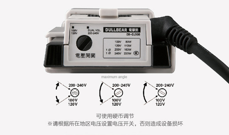 备注:请根据所在地区电压设置,否则造成设备损坏。