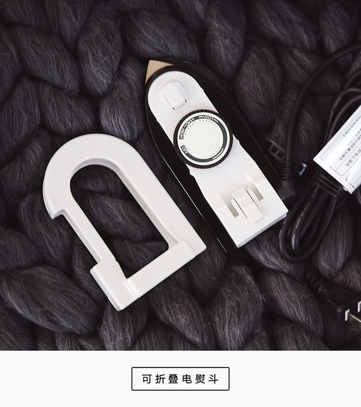 可折叠电熨斗,由把手和机身组合,两步就能简单拆装,无论去哪,都可随身携带。