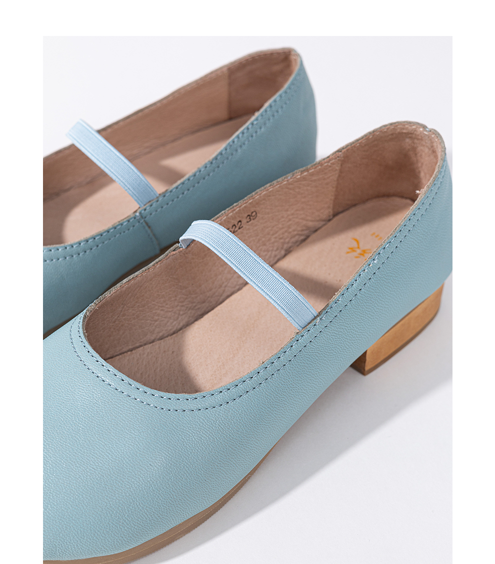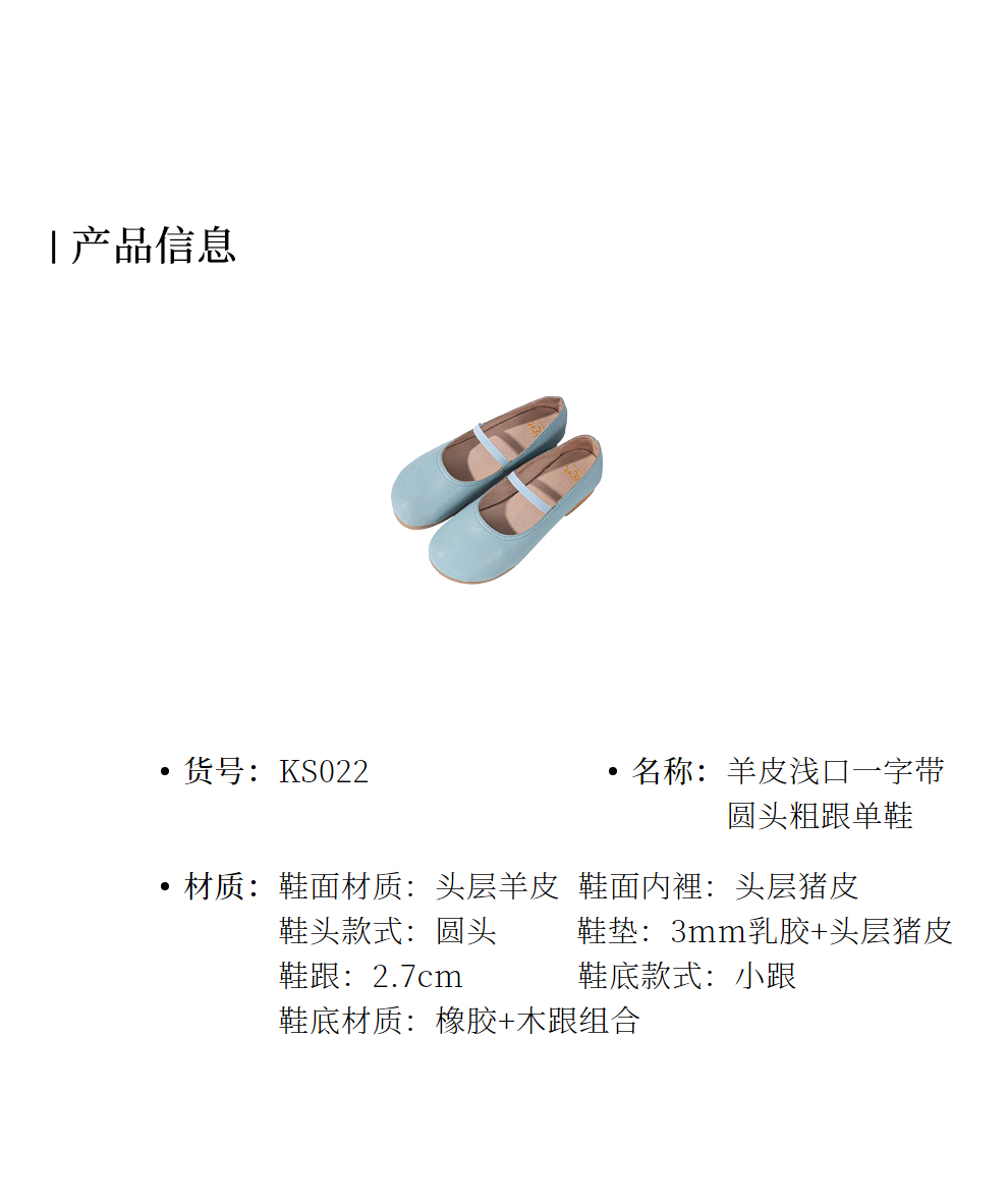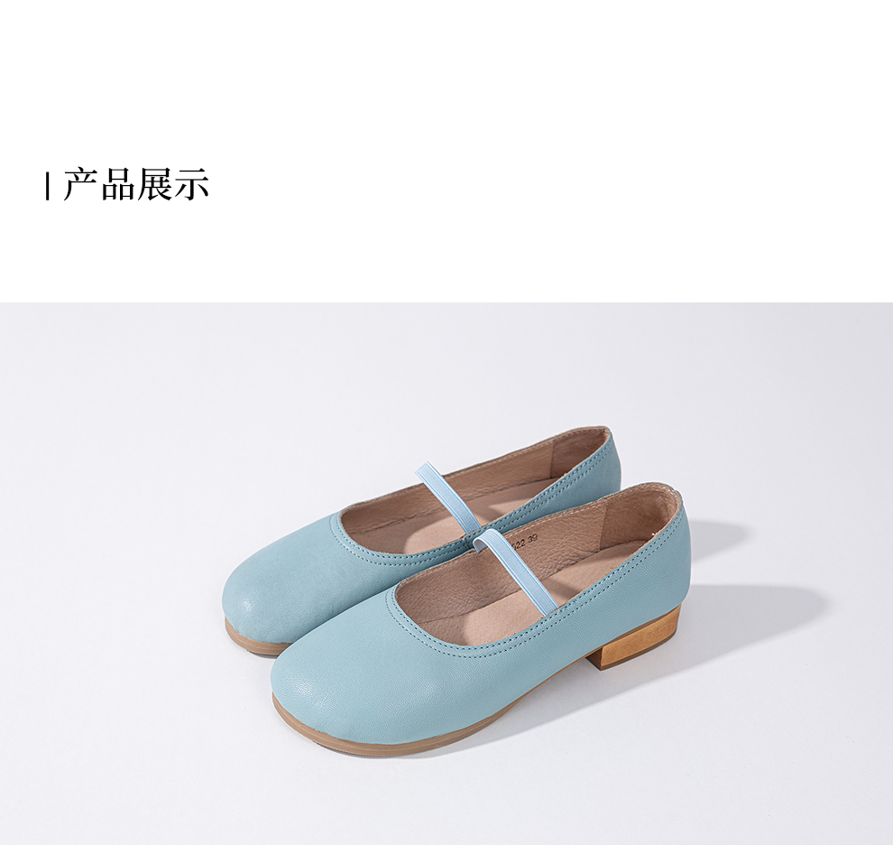 绽放KS022朵/羊皮浅口一字带圆头粗跟单鞋柔软舒适百搭小皮鞋女