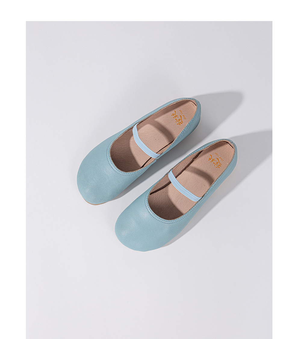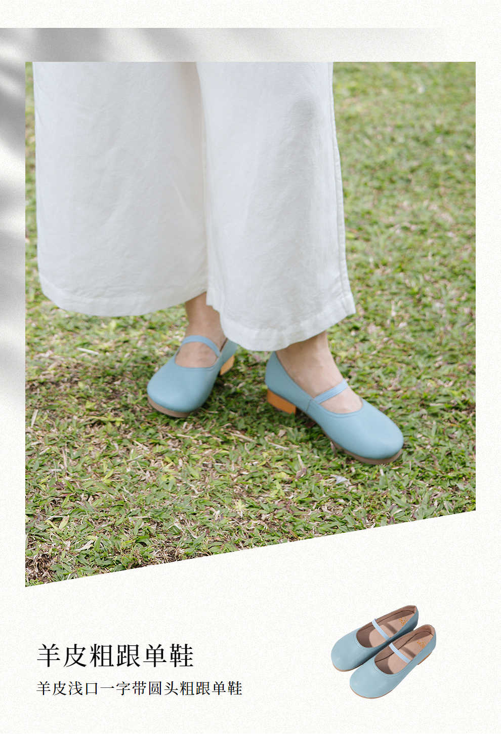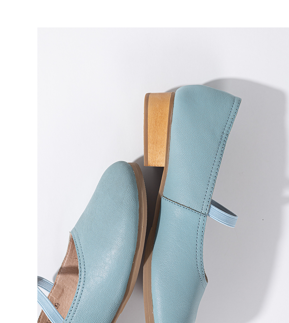 绽放KS022朵/羊皮浅口一字带圆头粗跟单鞋柔软舒适百搭小皮鞋女