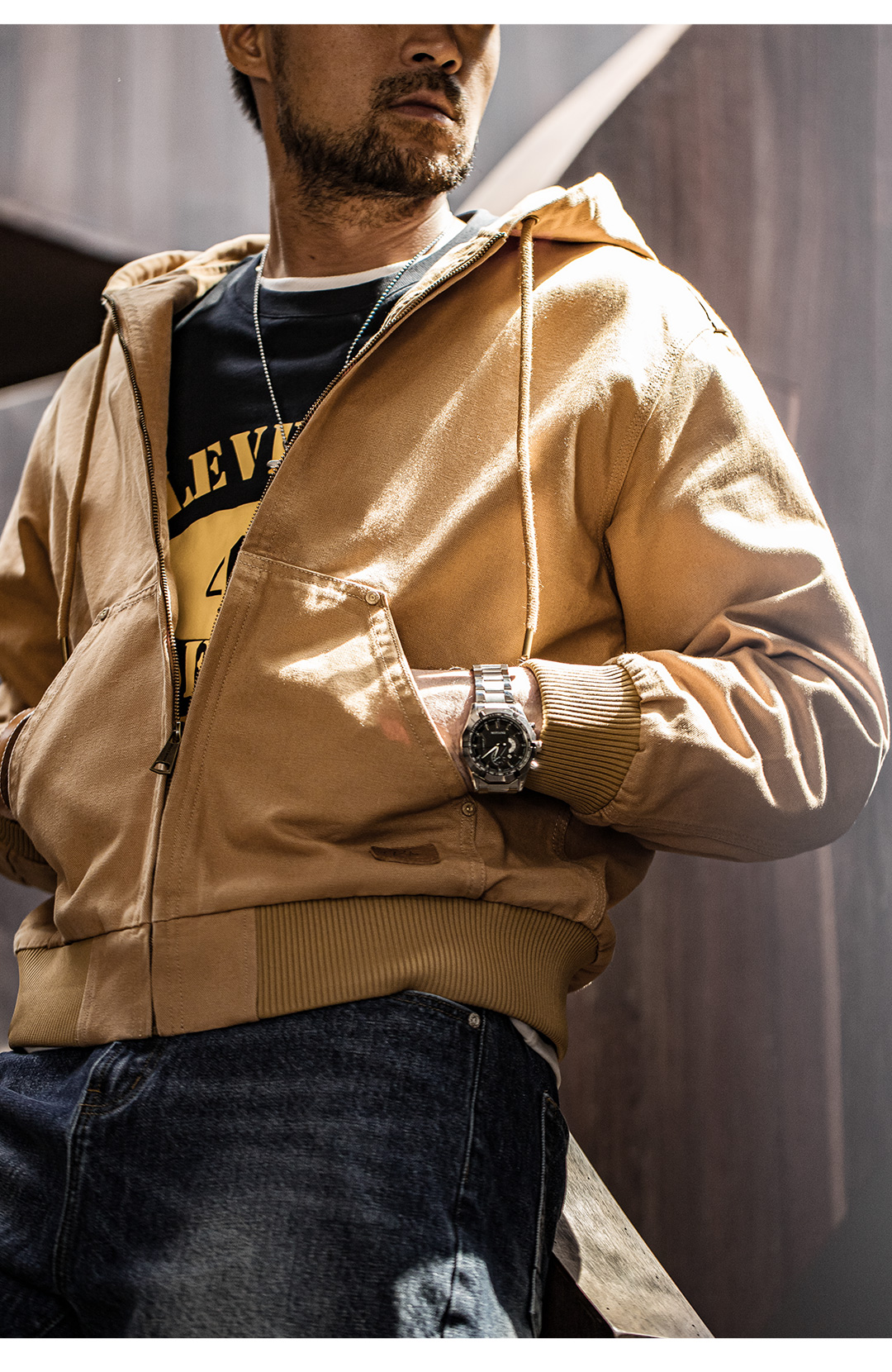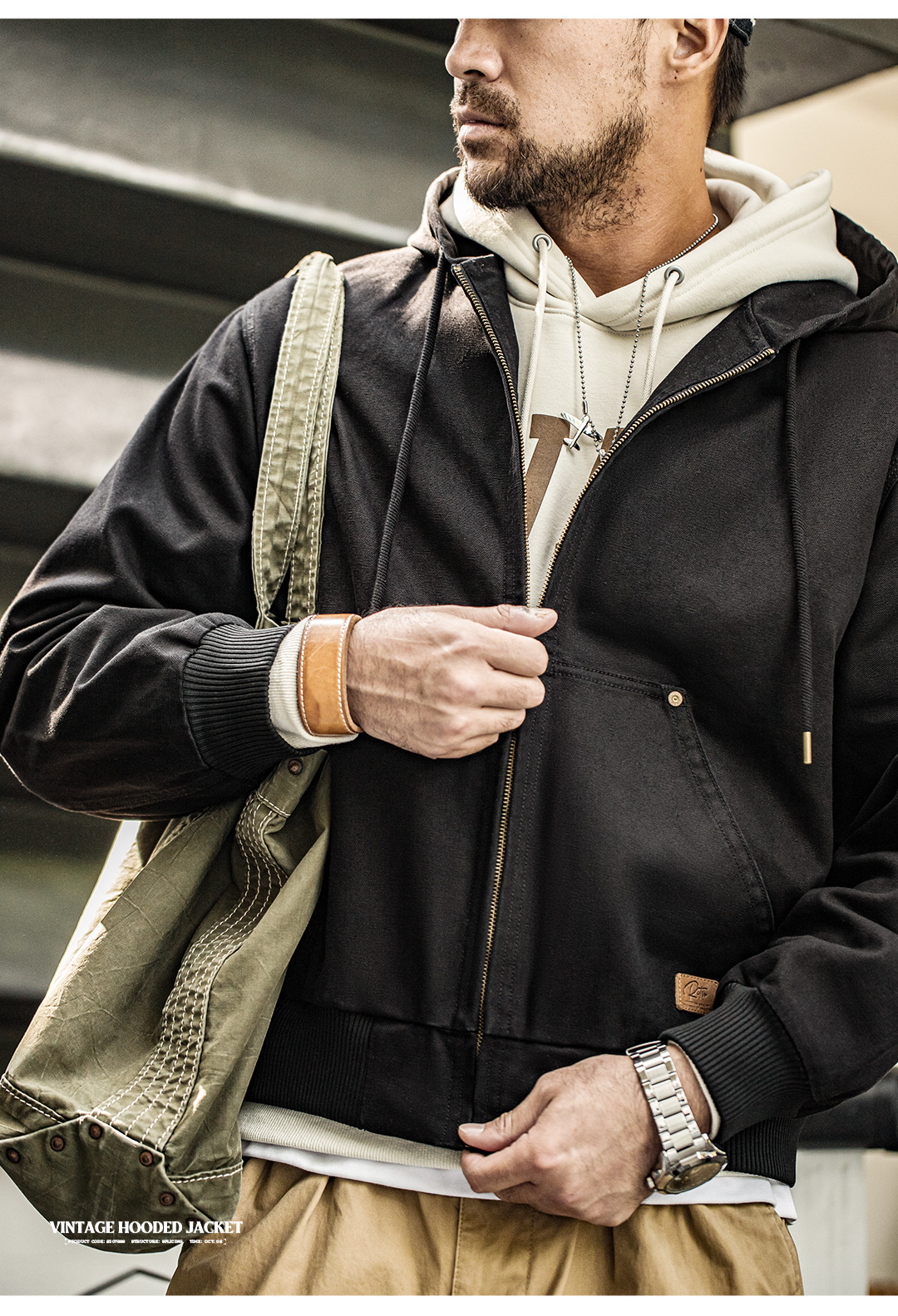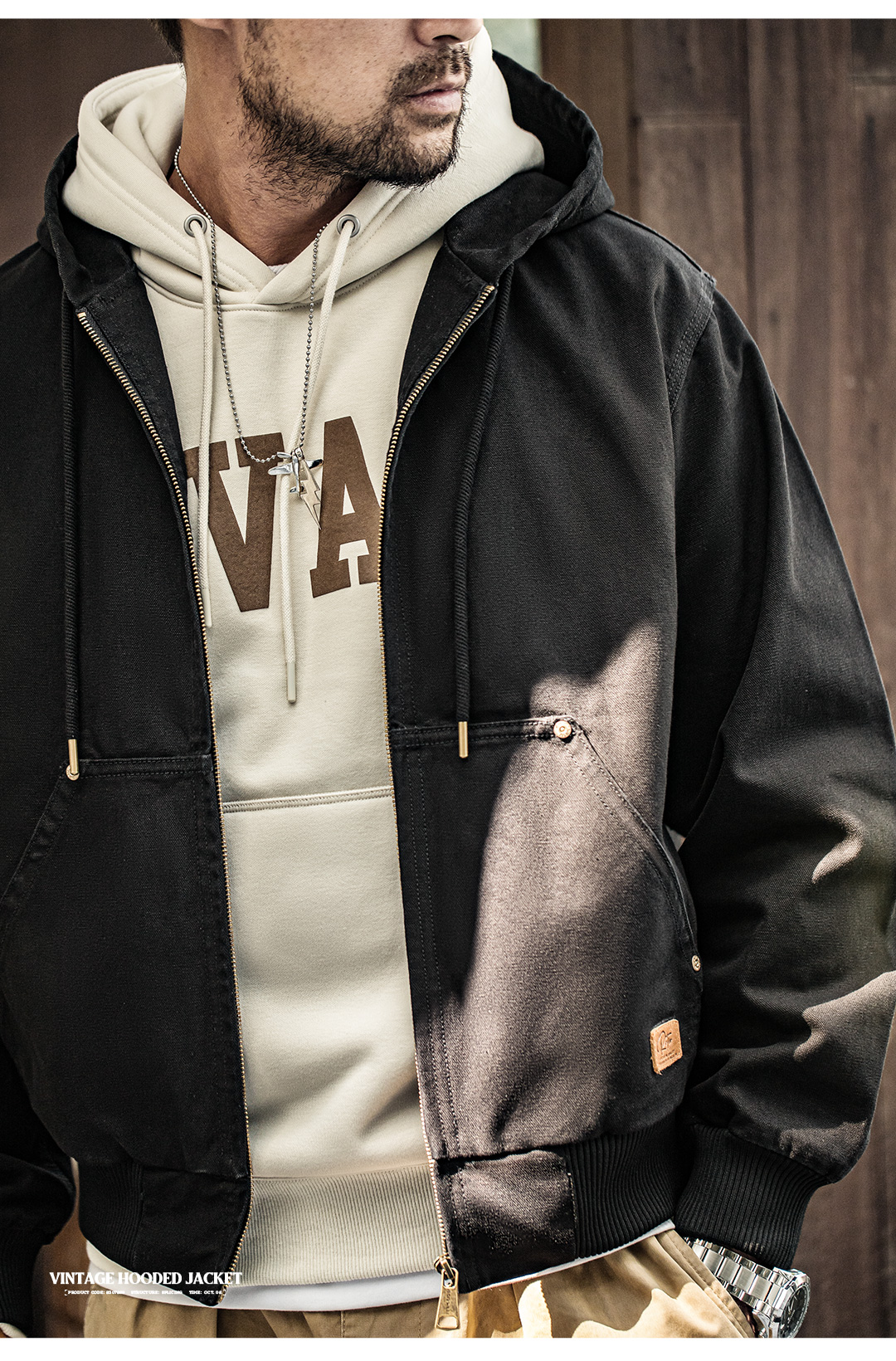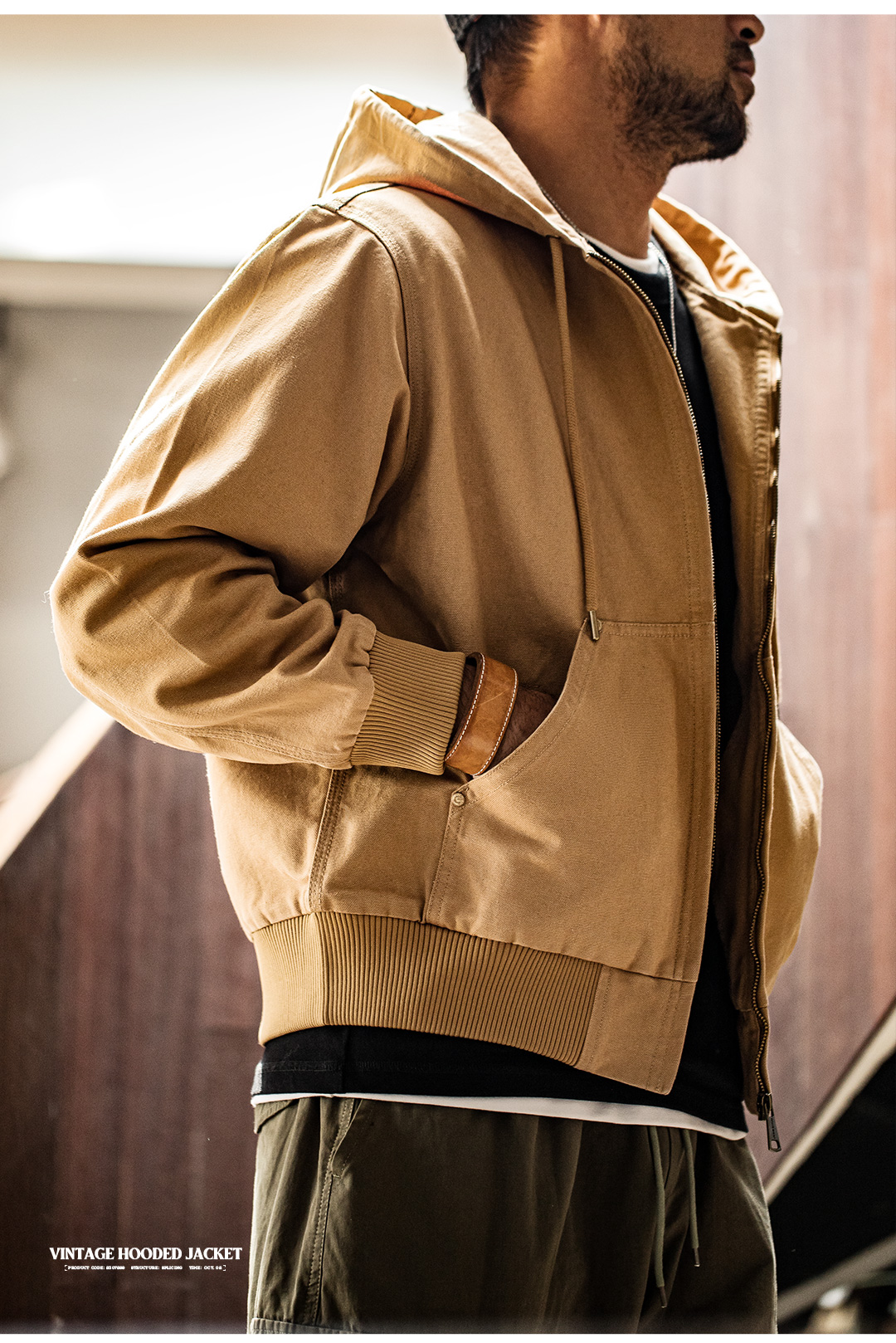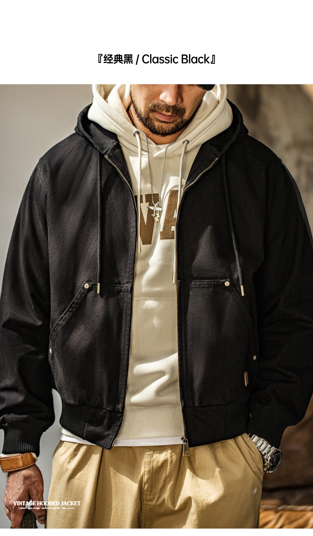工装优选 美式复古J130重磅连帽夹克vintage经典短款帆布外套男秋