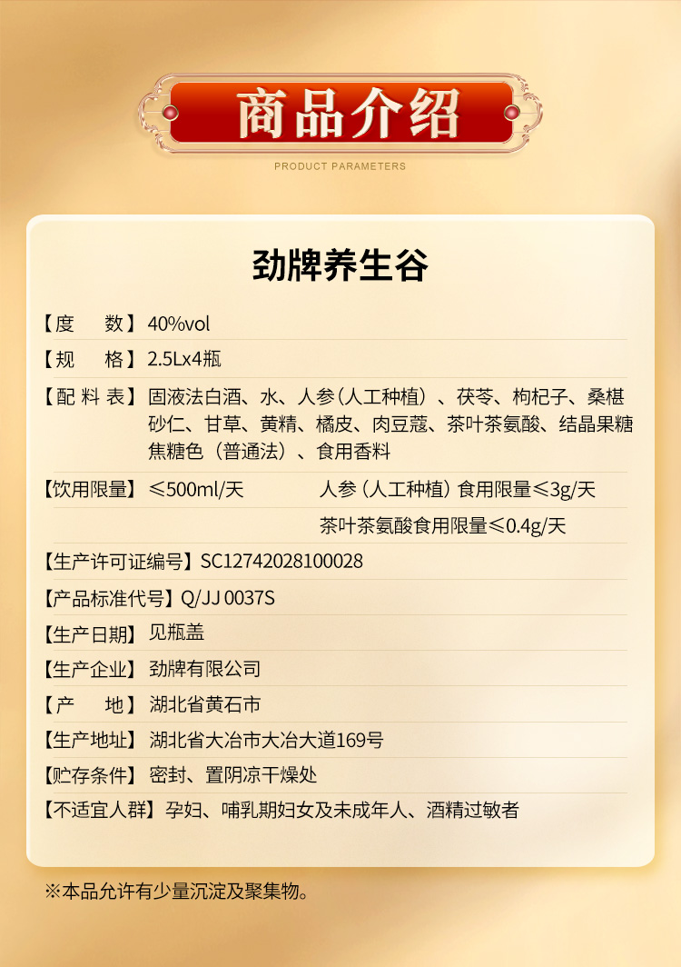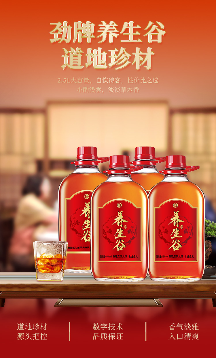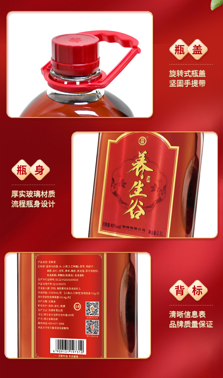 劲牌 养生谷酒 40度 2.5L 5斤装 玻璃瓶 性价比 自饮 宴请