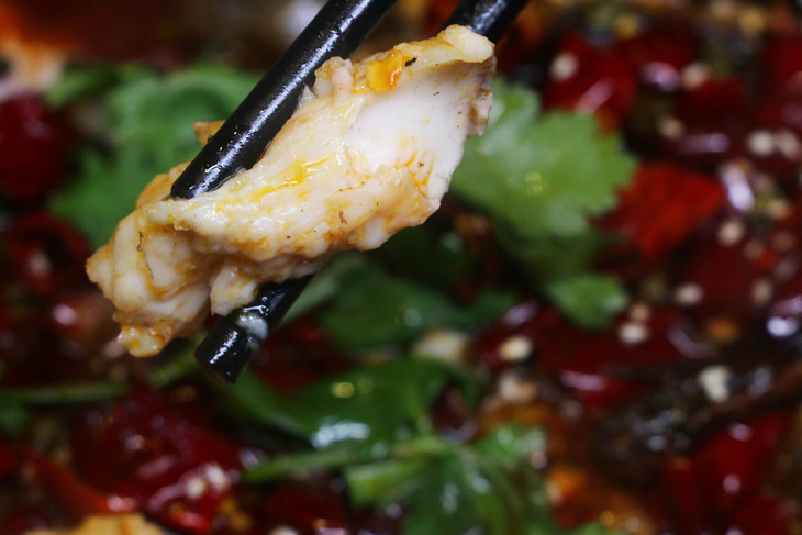 鱼肉真的很厚有没有,肉质细嫩,肥而不腻、口感软糯、鲜辣适口,辣中还带有微微甜。