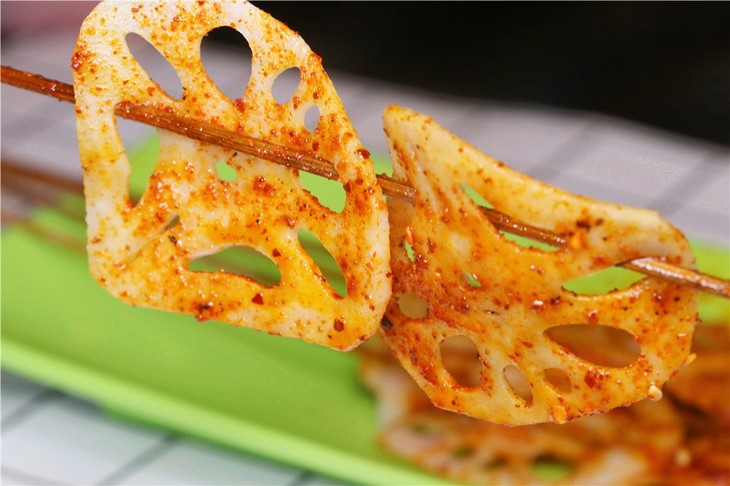 烤藕片5串,素菜系列里面,很多人的必点菜,爽脆可口又香辣美味。
