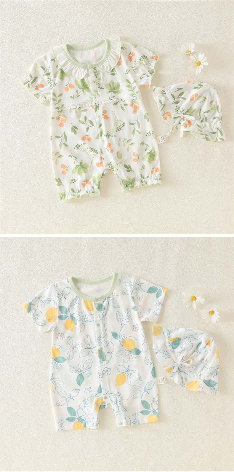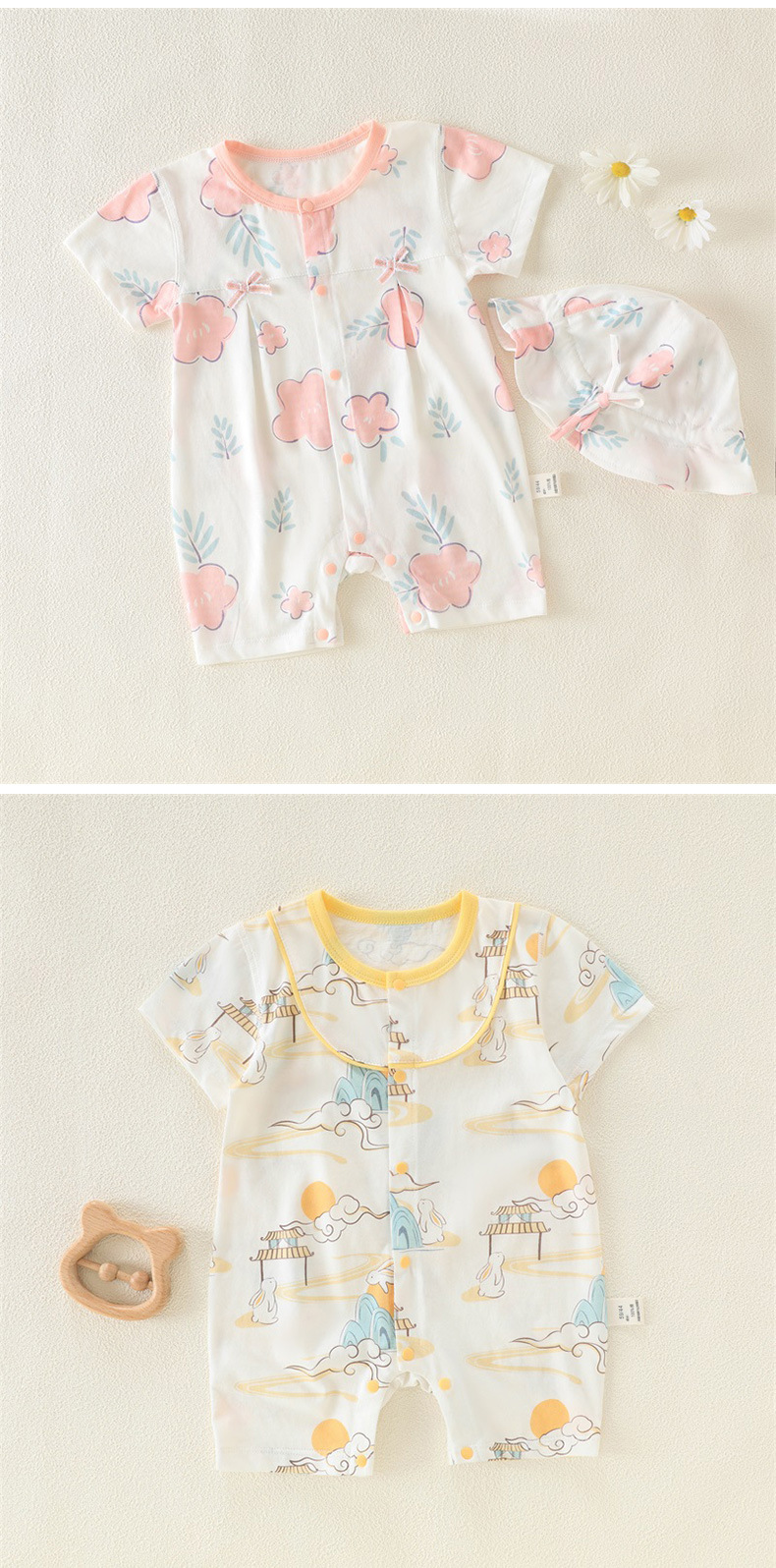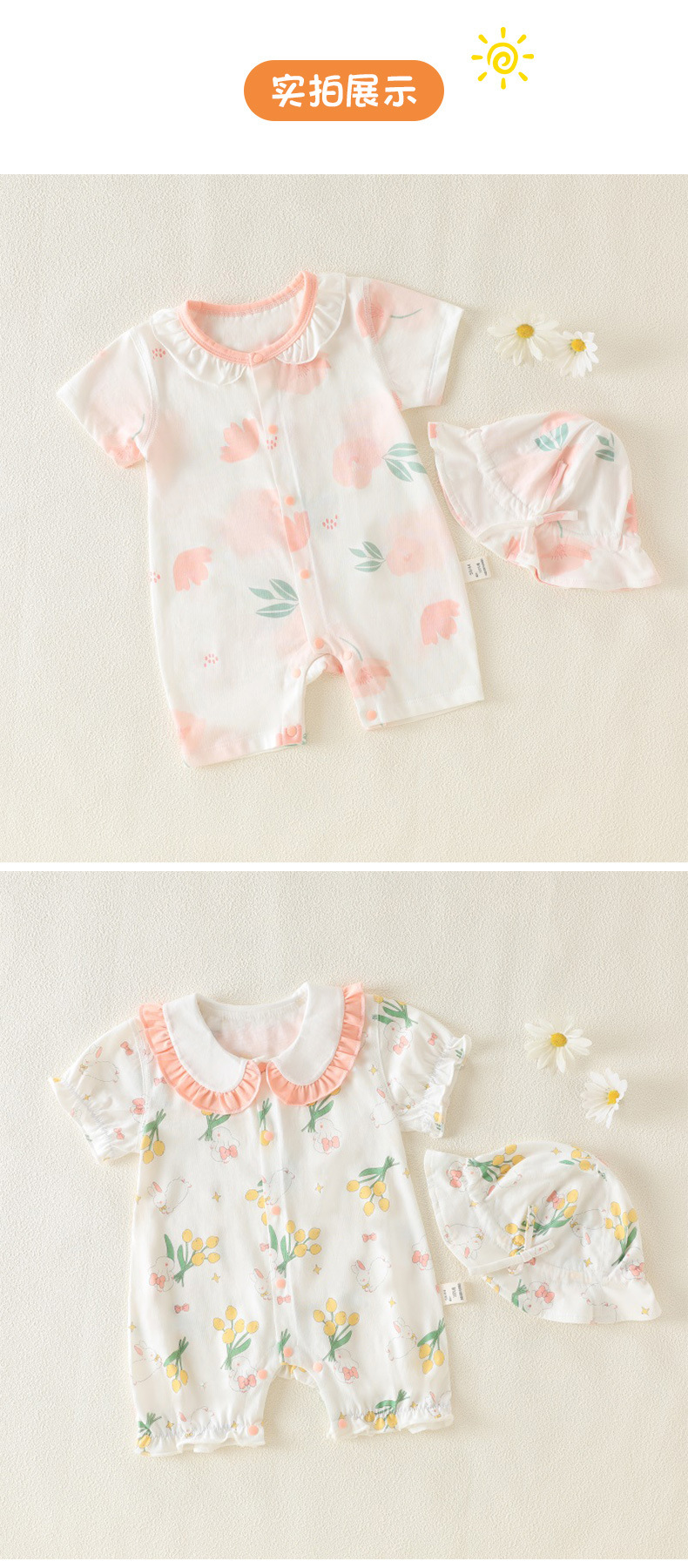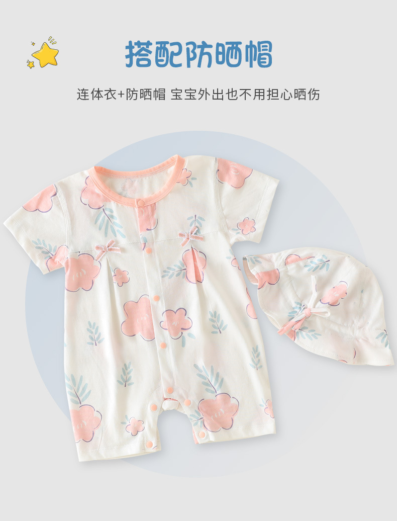 【婴儿短袖连体衣+防晒胎帽】新品婴儿夏季连体衣纯棉无骨婴儿短袖薄款A类女宝宝夏季衣服哈衣