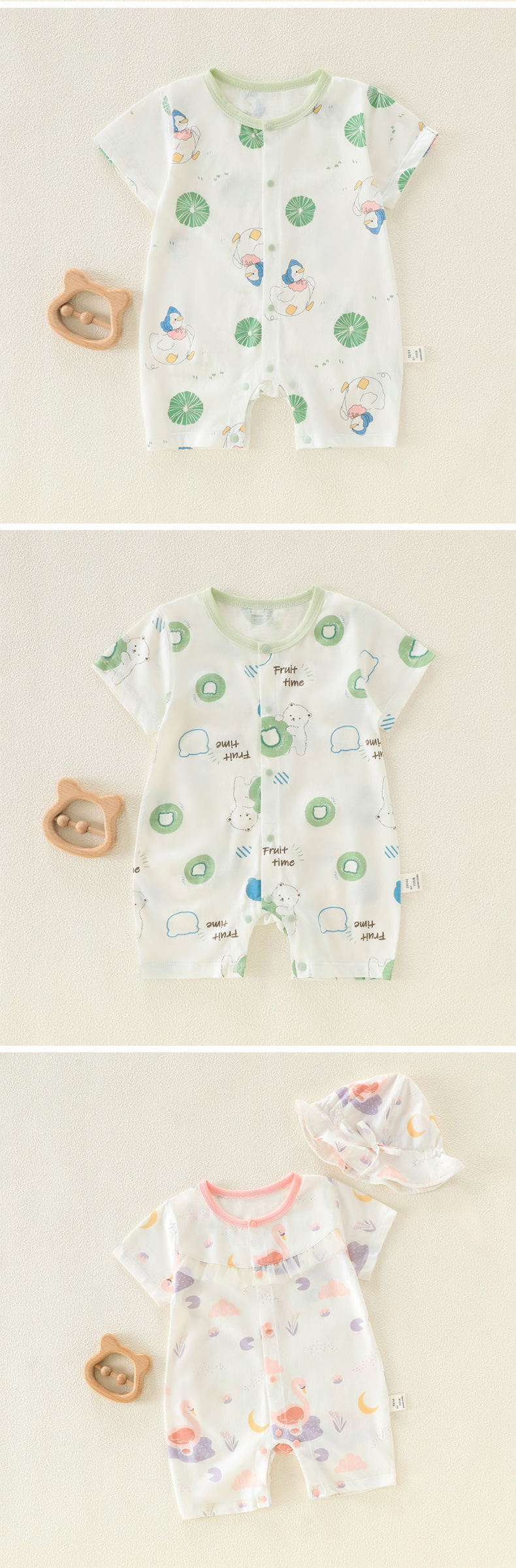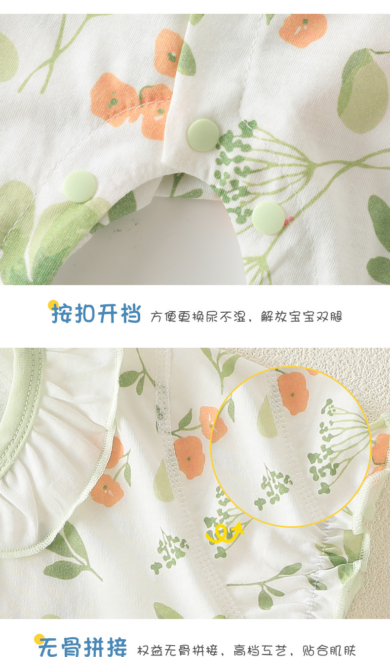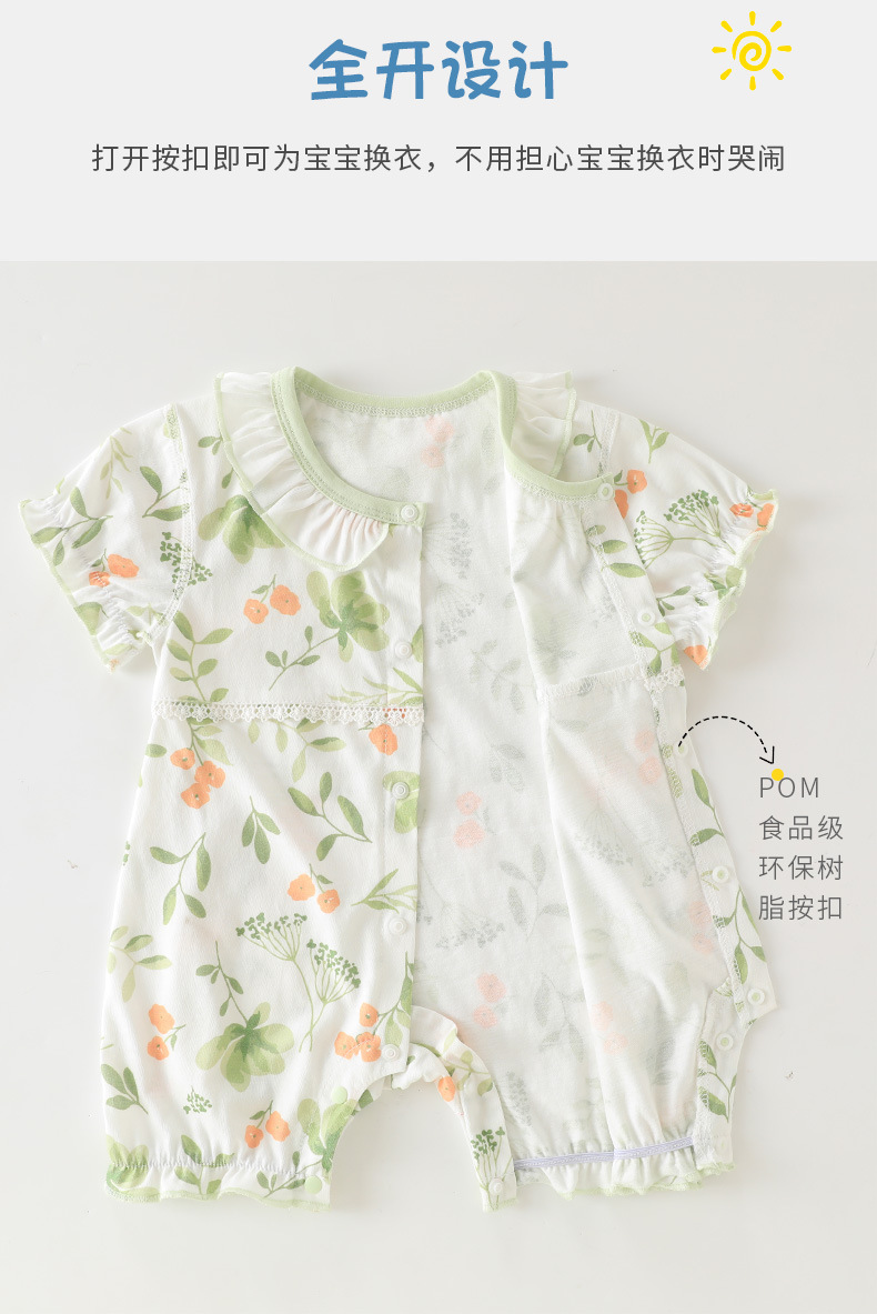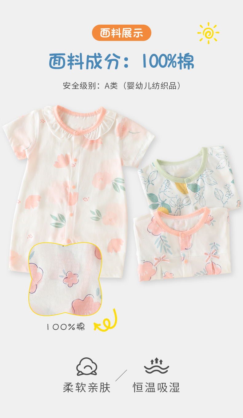 【婴儿短袖连体衣+防晒胎帽】新品婴儿夏季连体衣纯棉无骨婴儿短袖薄款A类女宝宝夏季衣服哈衣