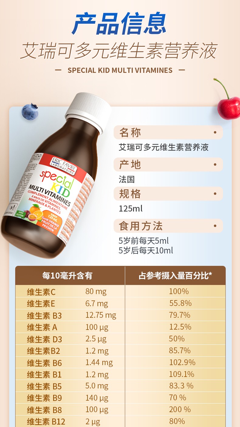 【保税仓】法国艾瑞可多维Eric Favre儿童复合维生素糖浆水果味125ml