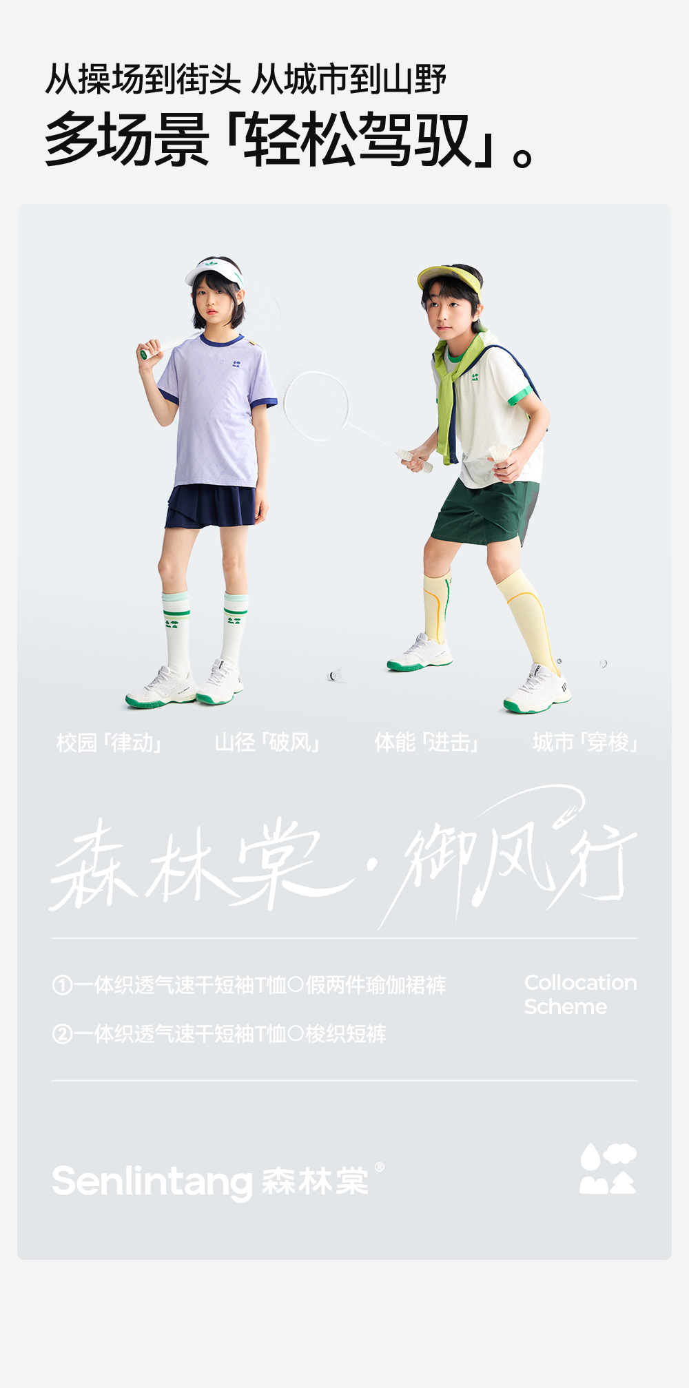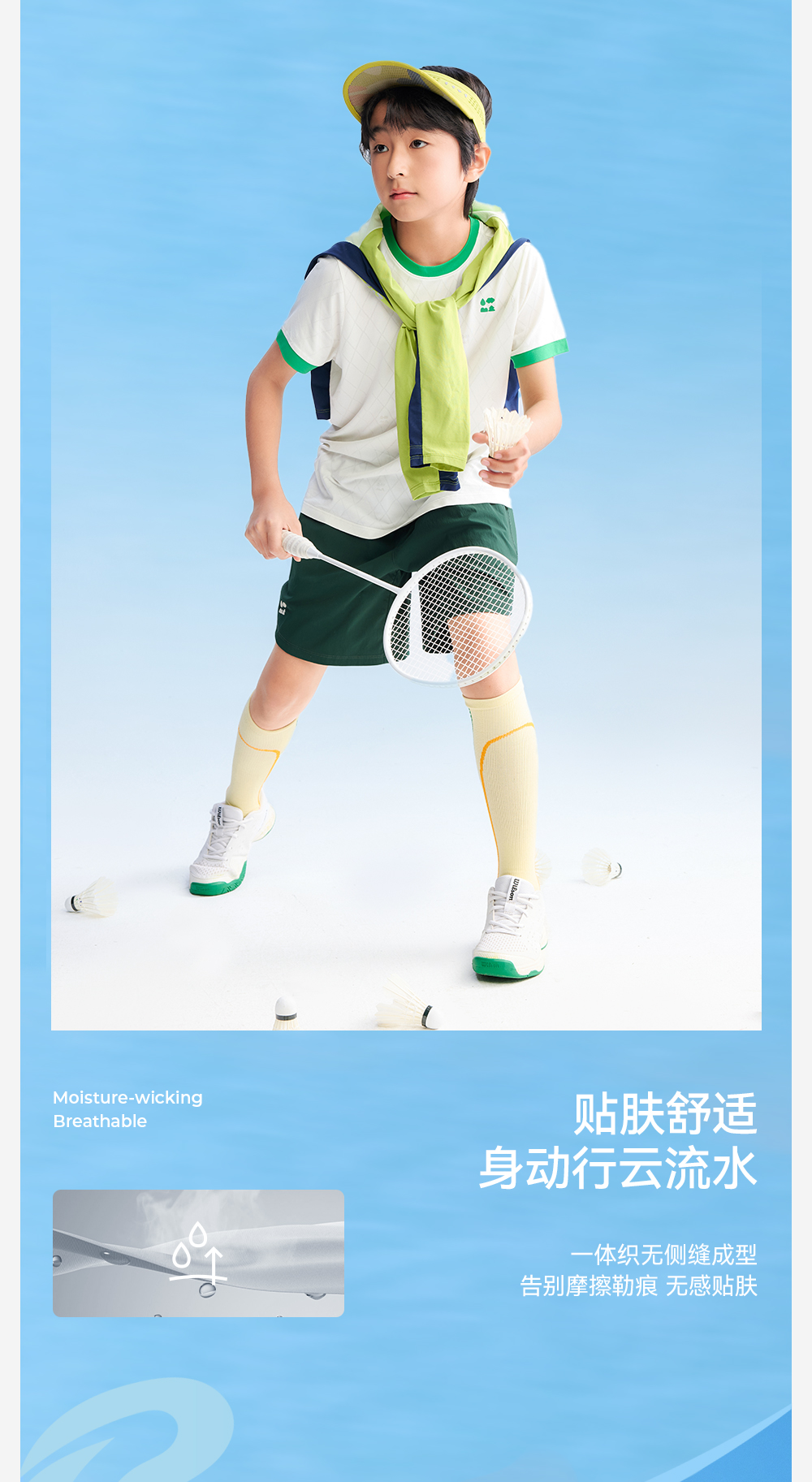 【一体织透气速干】森林棠26夏款肌理提花儿童撞色短袖T恤40162240