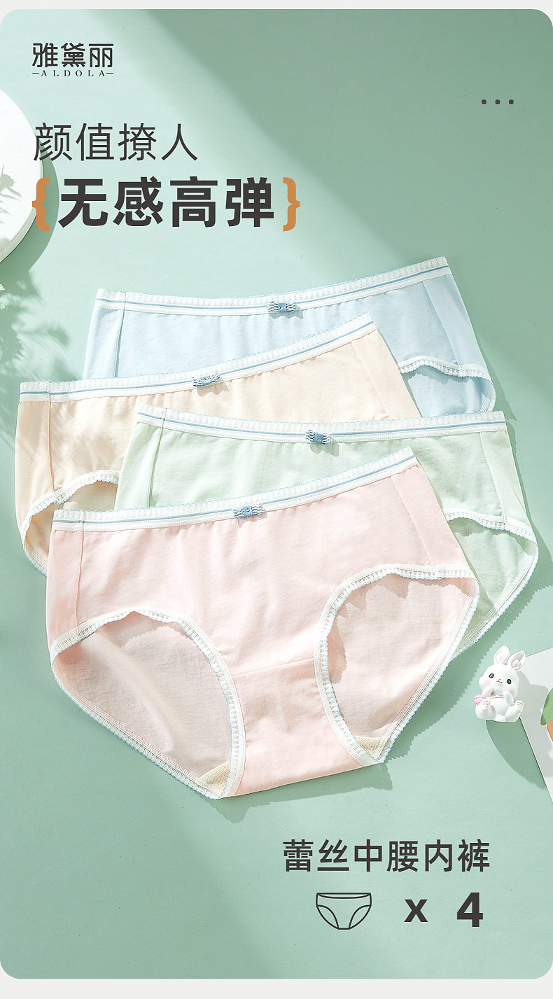 雅黛俪女士三角裤含桑蚕丝底裆亲肤透气中腰女生内裤短裤