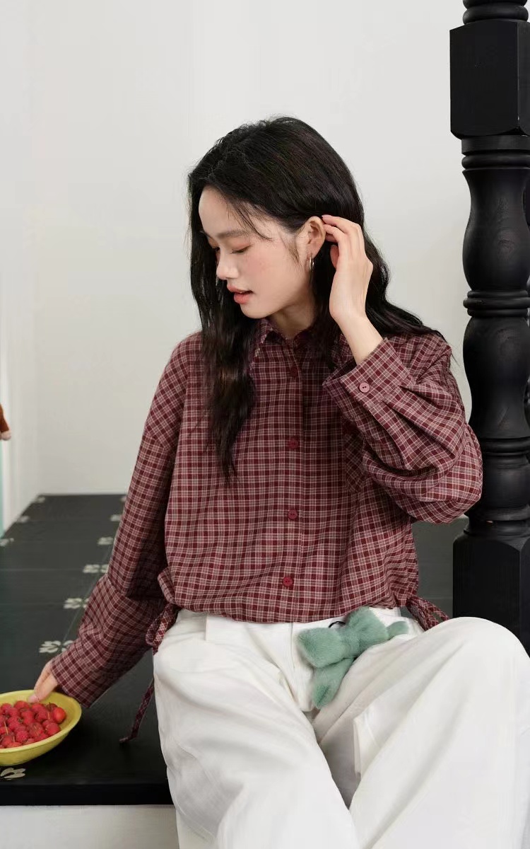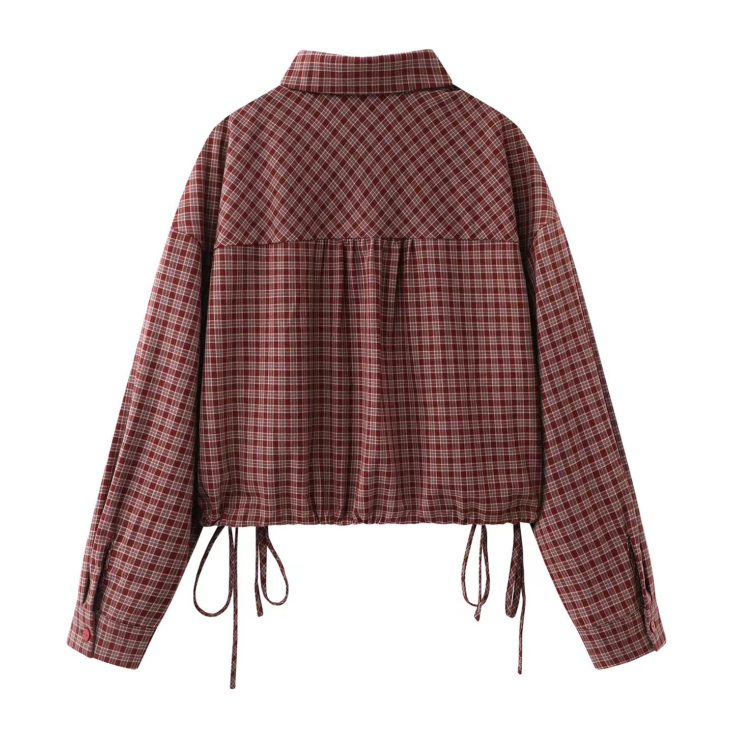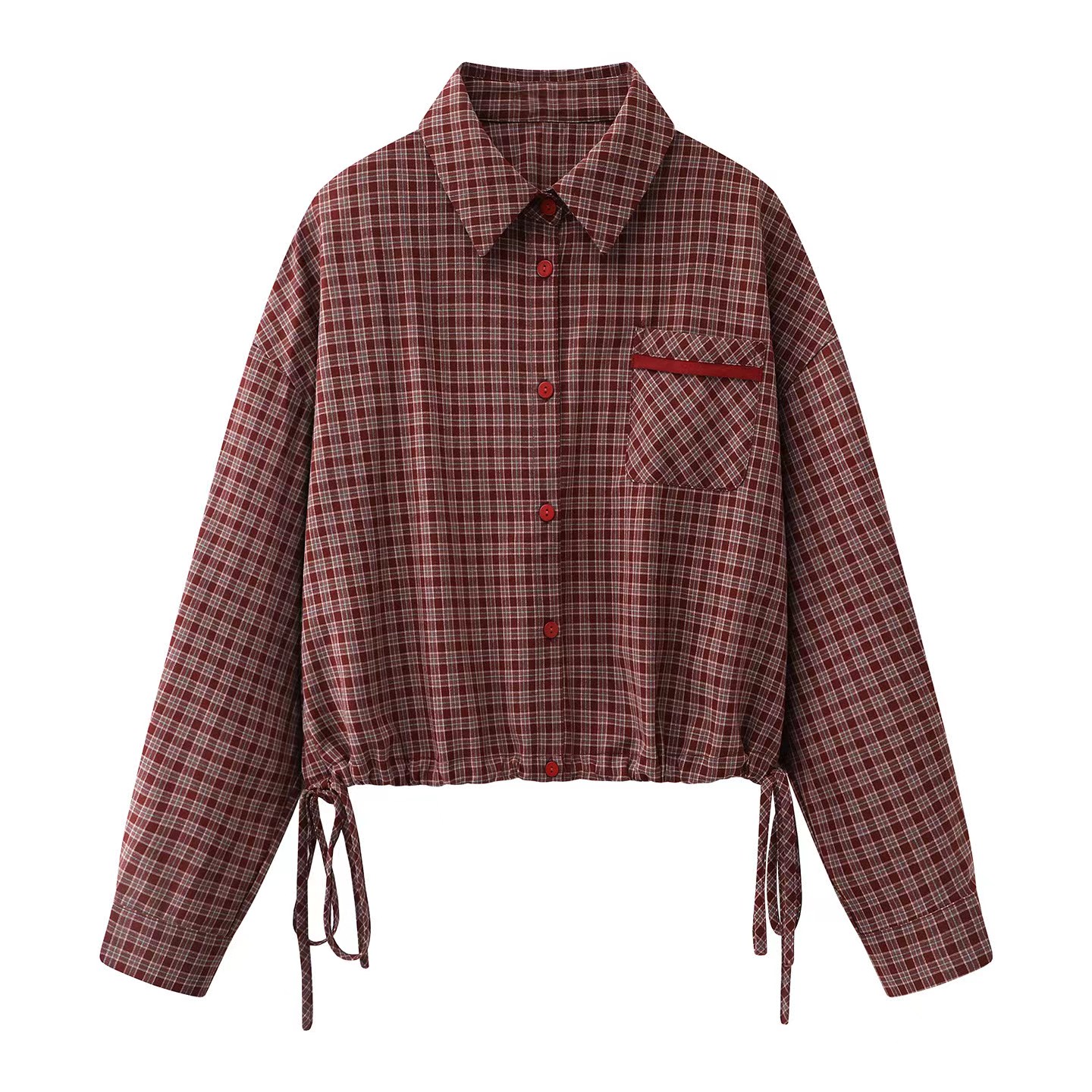 2026春季新款红色格子外套长袖衬衫穿搭小个子上衣, 开春氛围感担当,复古红格自带元气滤镜.显高剪裁:短款版型+抽绳下摆,轻松拉高腰线,小个子也能穿出大长腿比例.细节控爱:撞色口袋饰条+同色系纽扣,复古感拉满;双侧抽绳可调节,甜酷风格随心切换.舒适面料:亲肤透气的格纹肌理,单穿叠穿都适配,早秋通勤、约会、出游都好搭.搭配思路:内搭白T+牛仔裤,或叠穿针织马甲,轻松拿捏松弛感