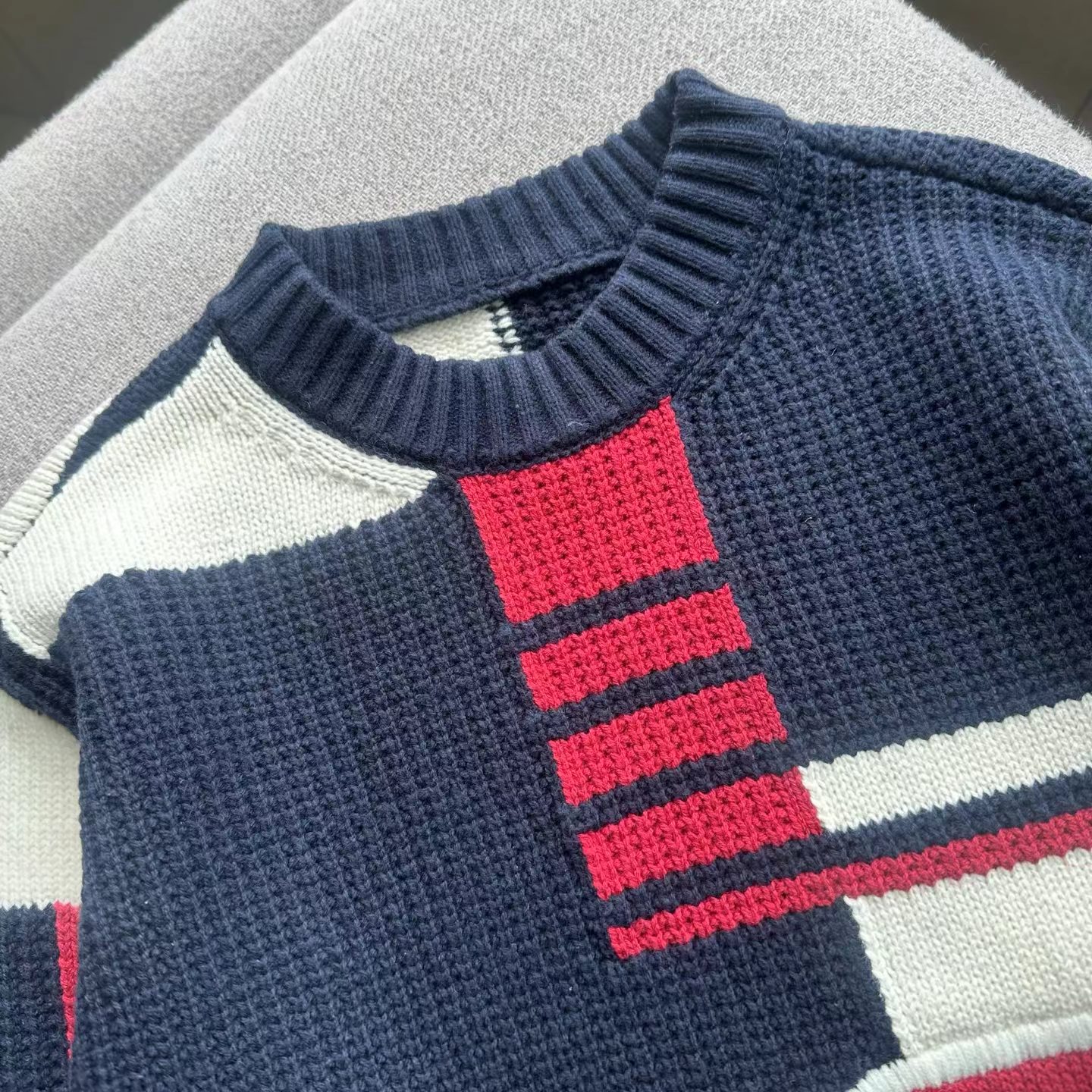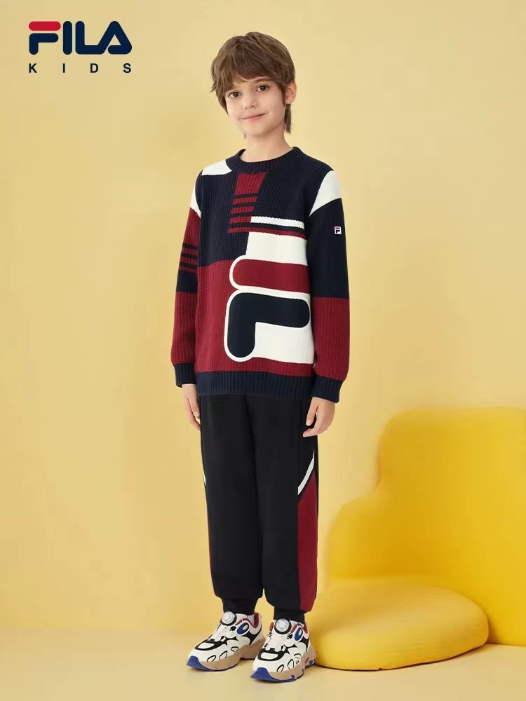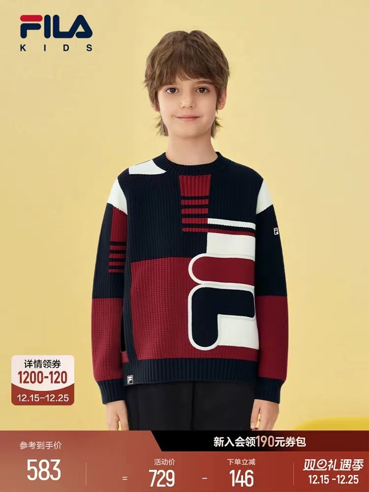 D122608儿童童装毛衫2025年冬季新款男童中大童休闲套头圆领毛衣