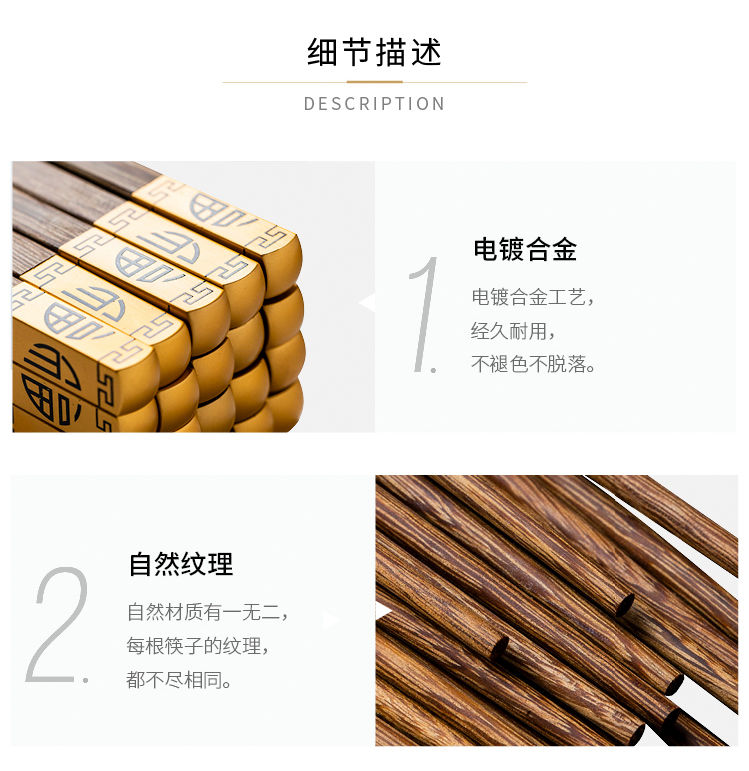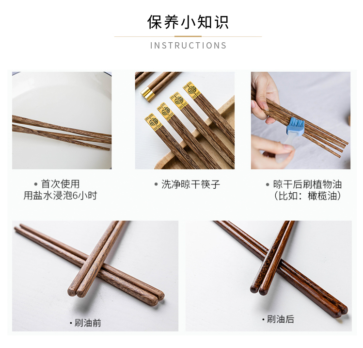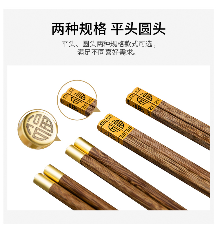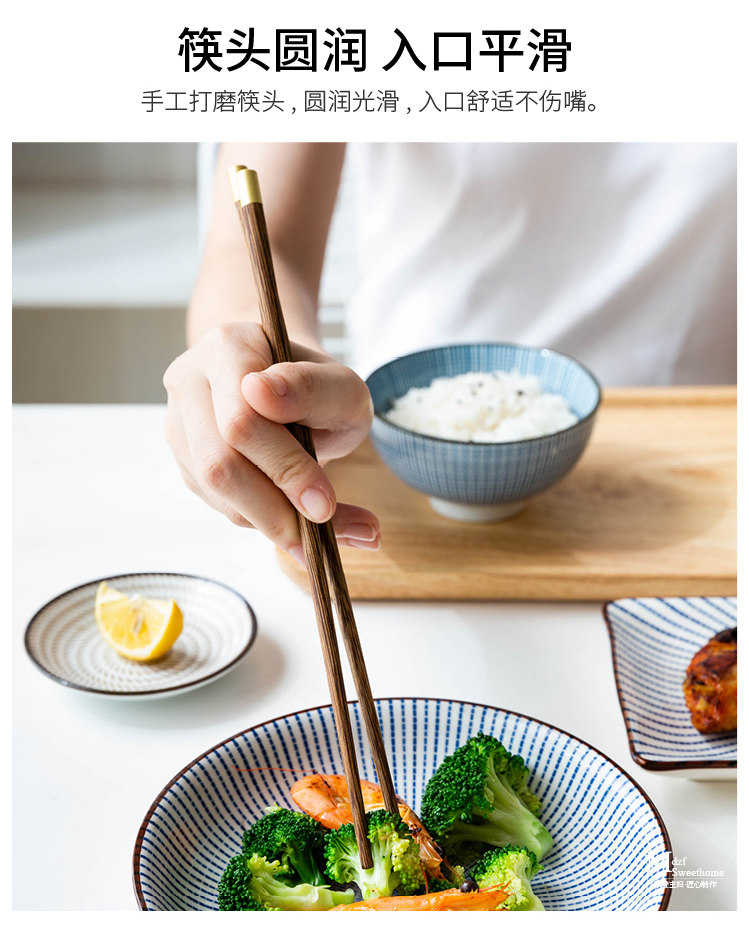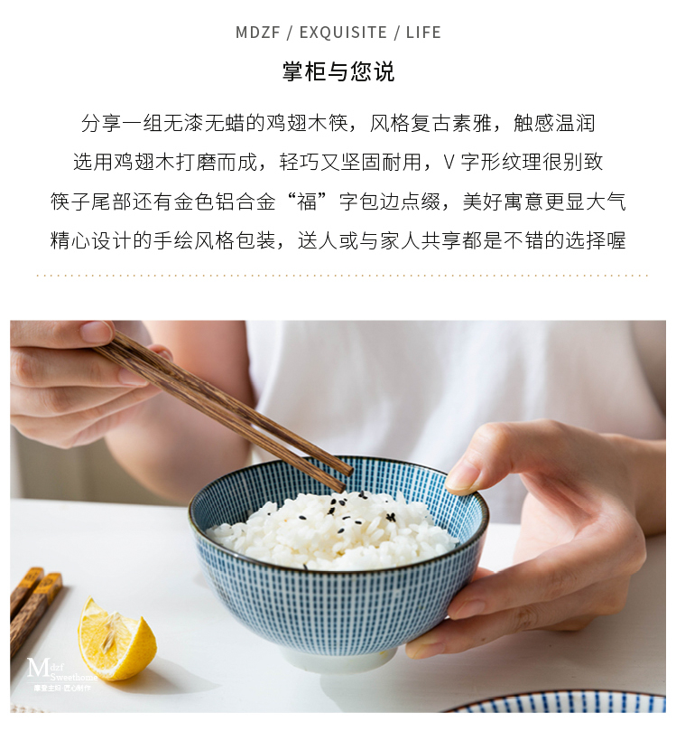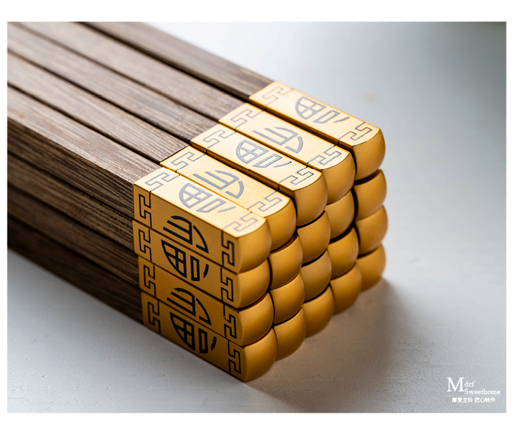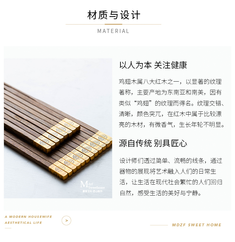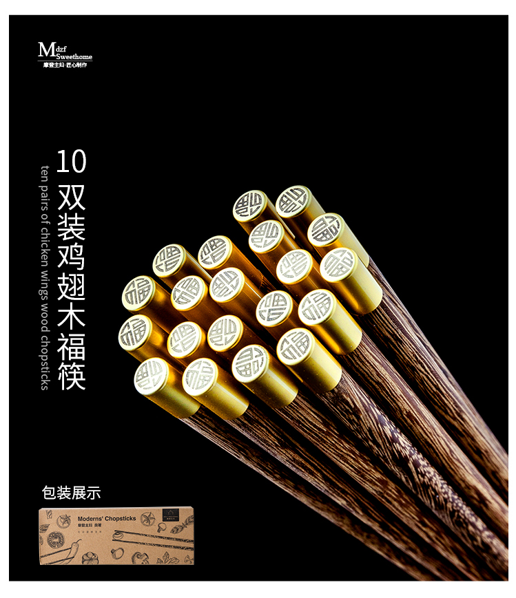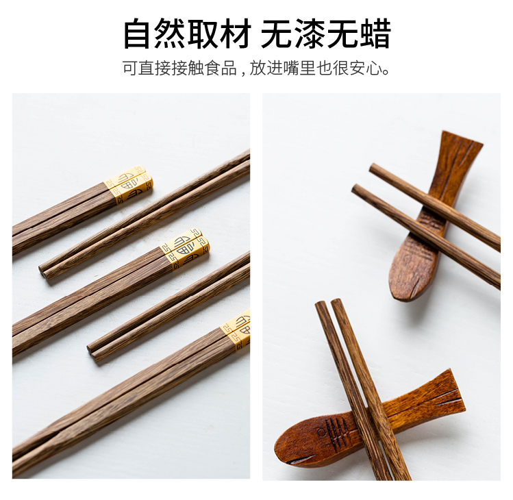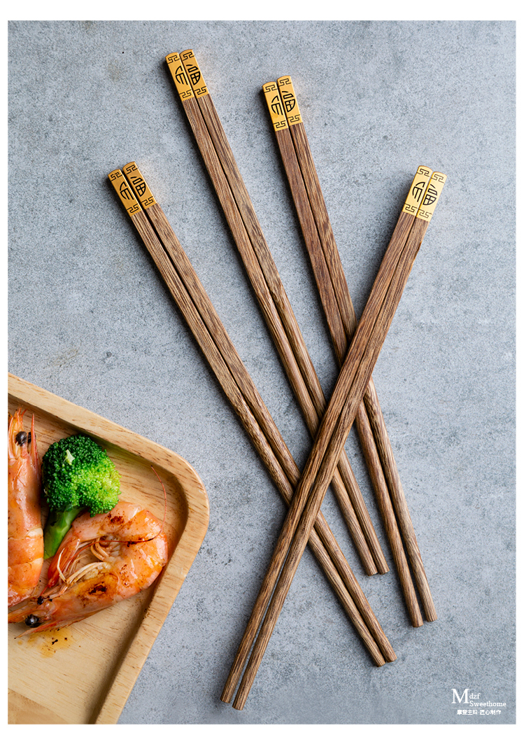 摩登主妇日式创意家用鸡翅木筷子套装餐具无漆无蜡福字实木筷子