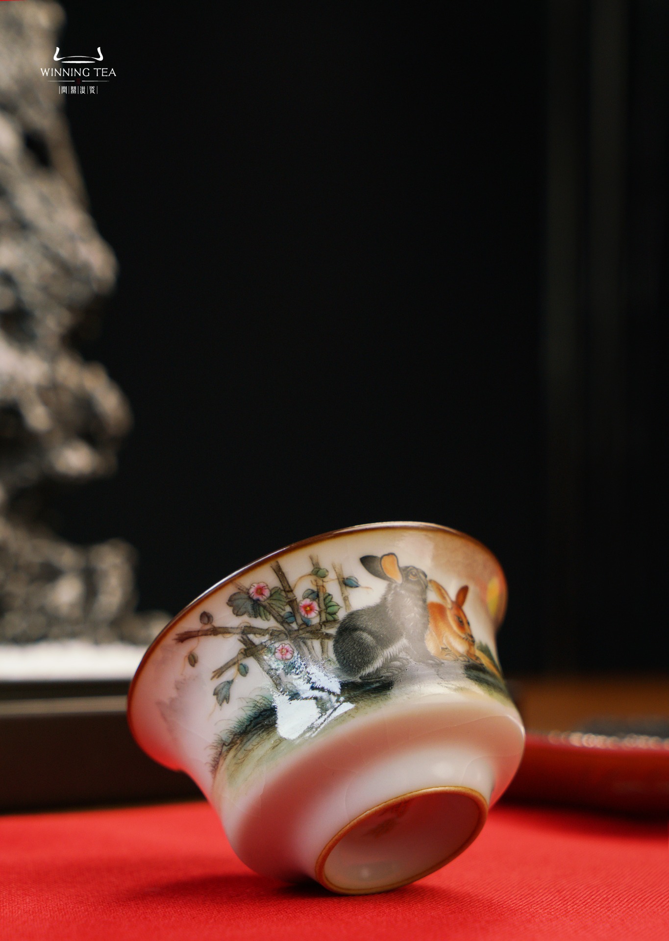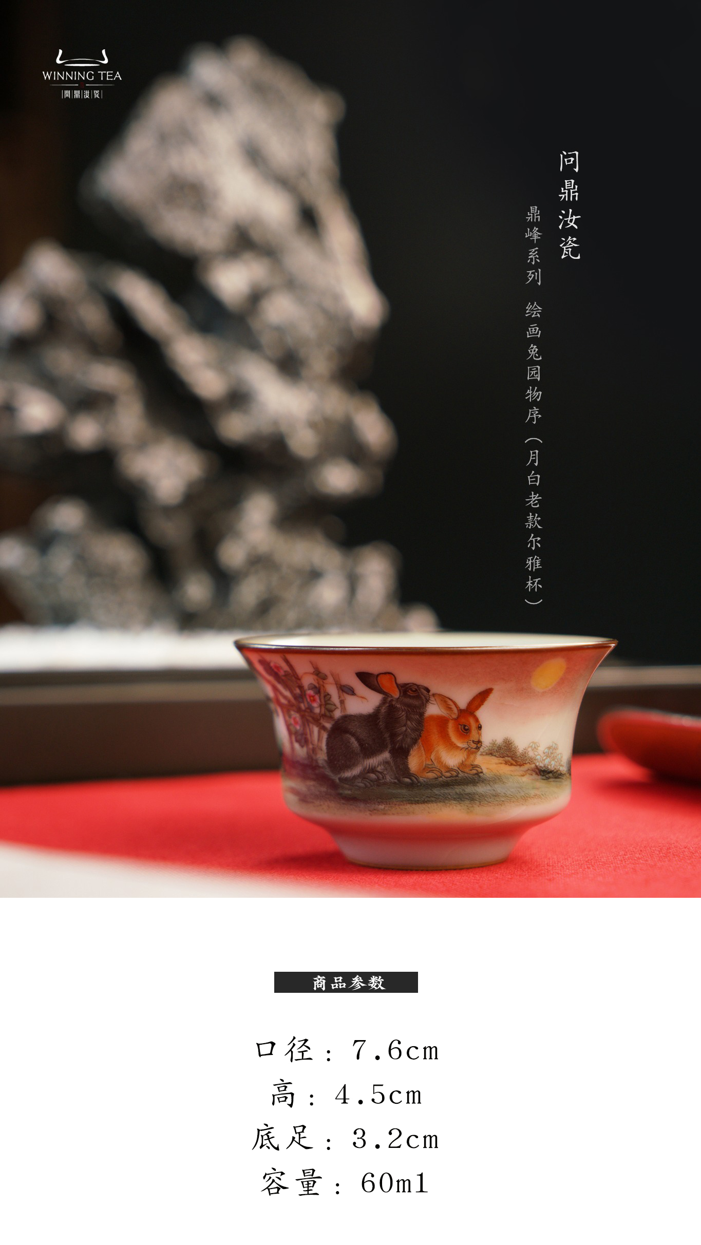 问鼎汝瓷鼎峰系列月白老款尔雅杯(绘画兔园物序)(缺货)