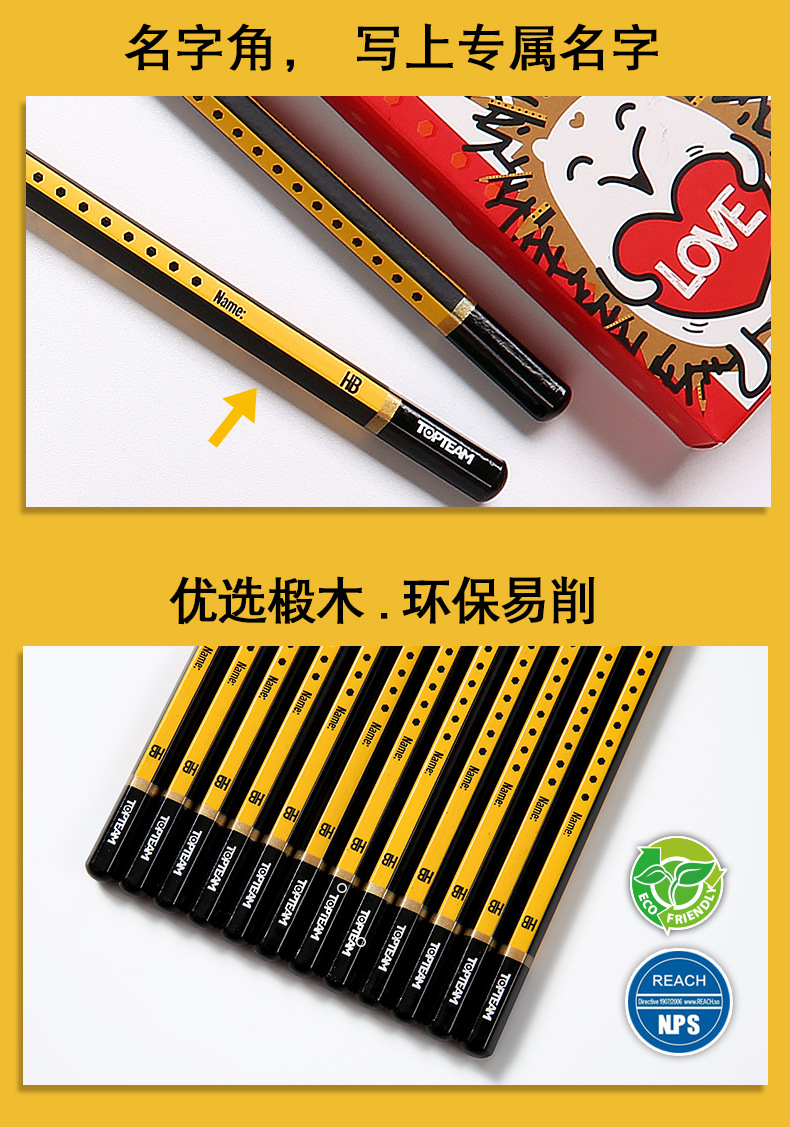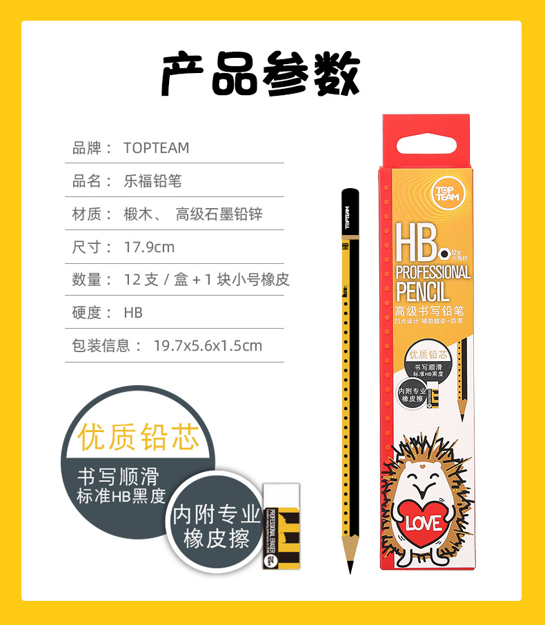 千千圈 小学生写字HB铅笔 学生文具用品考试绘画铅笔12支装+橡皮 商品图3