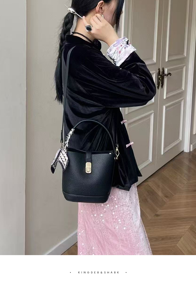 经典鲨2025年新款气质简约大容量单间斜挎水桶包KGB05-52601081