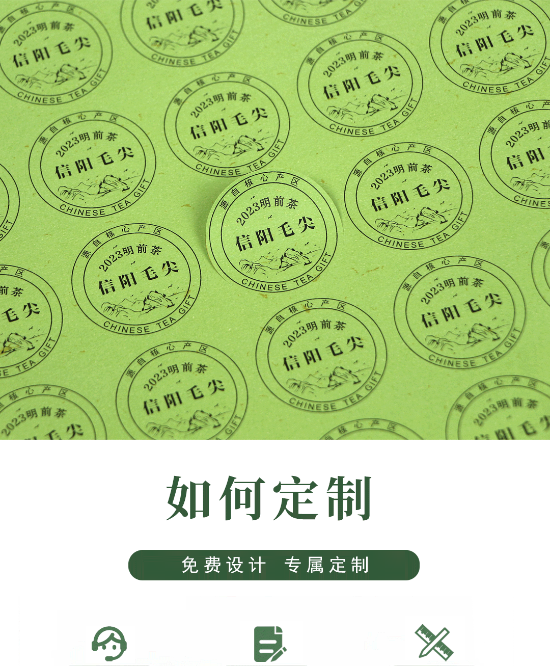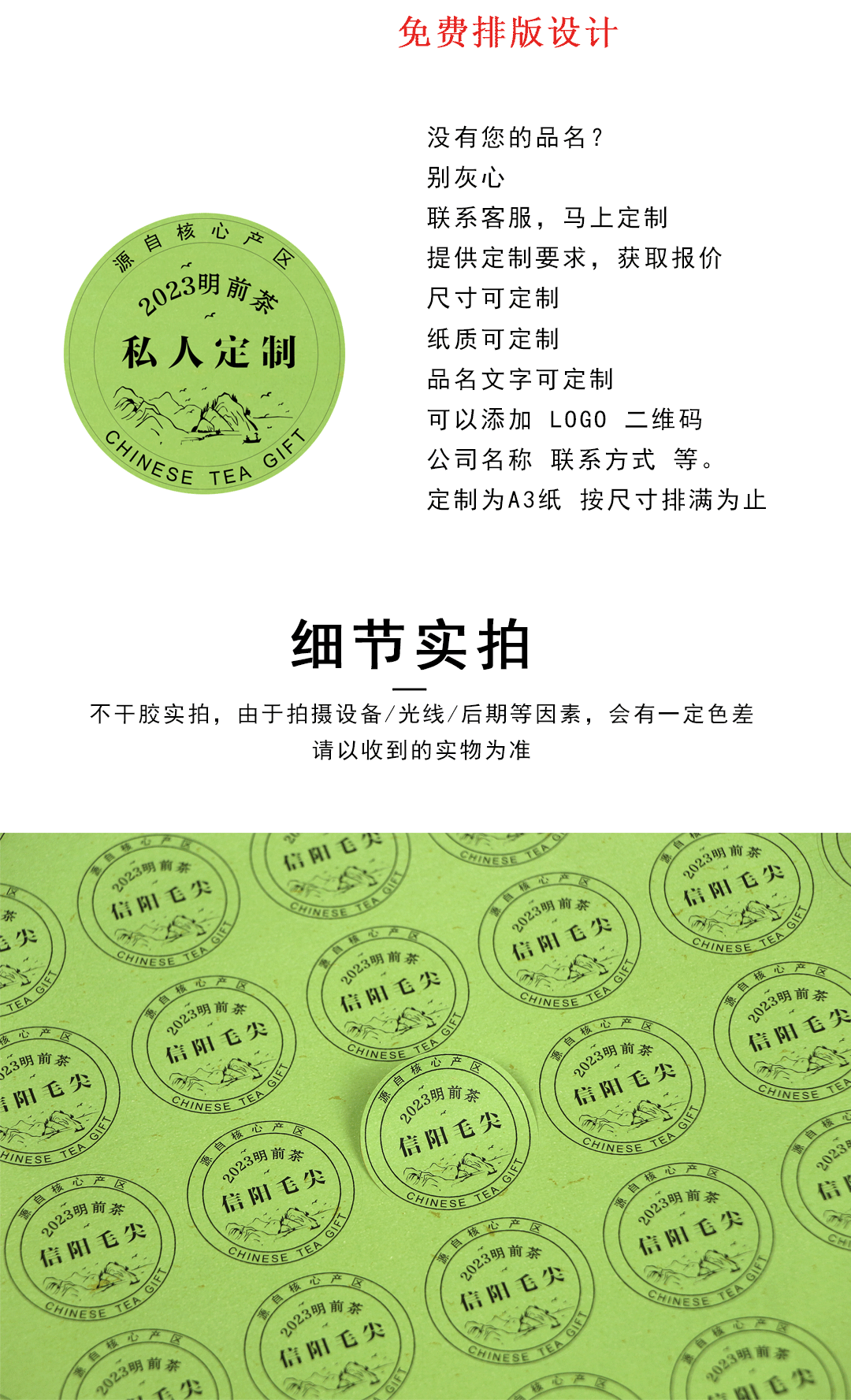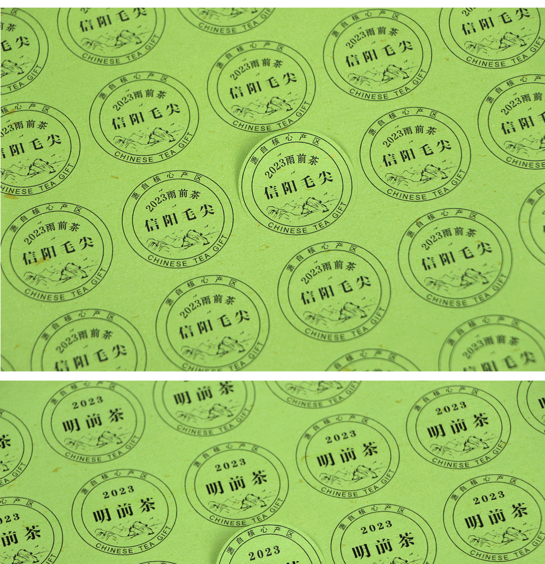 2025明前茶信阳毛尖黑底圆茶标绿色洒金纸一张6元, 满300元河南省内包邮