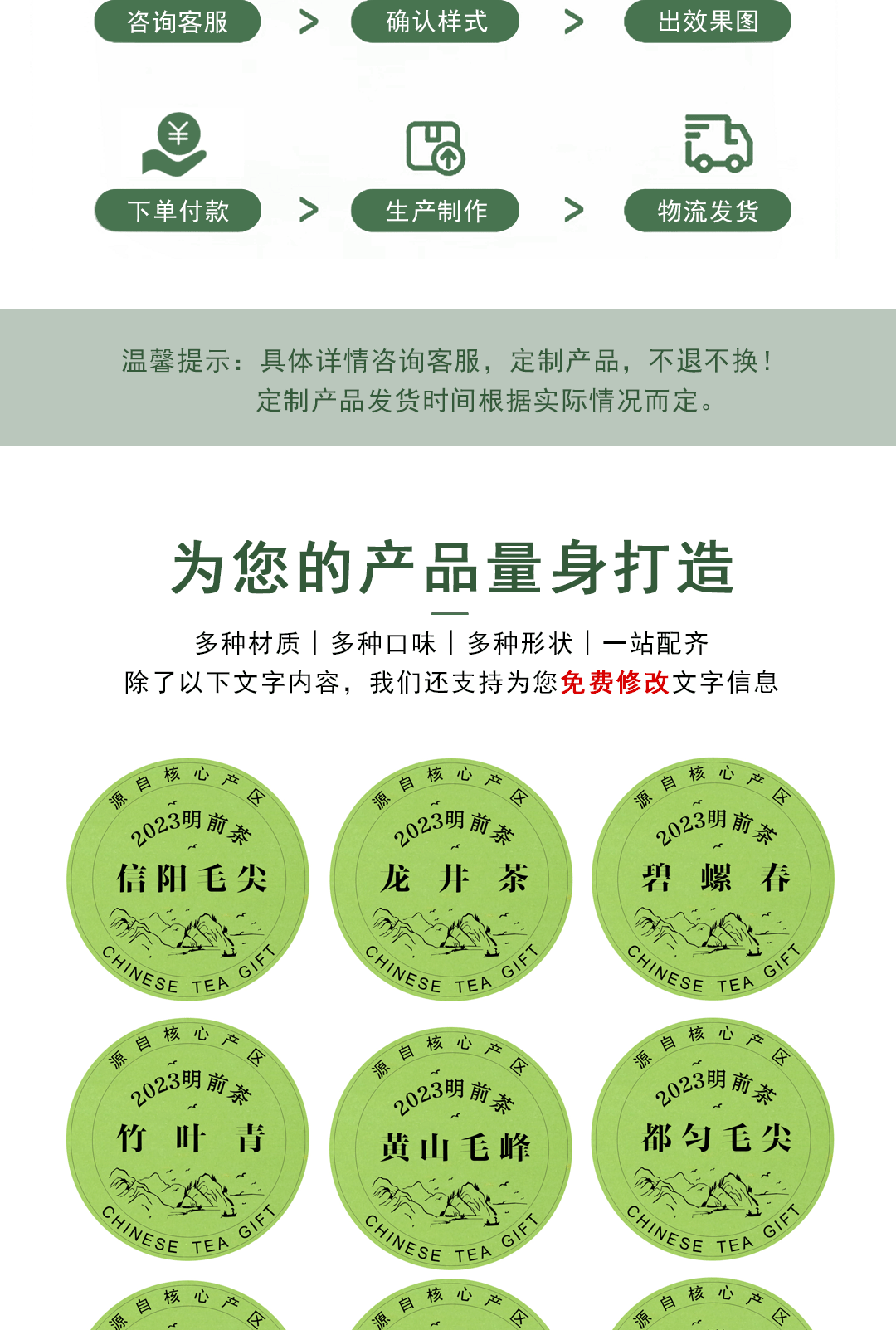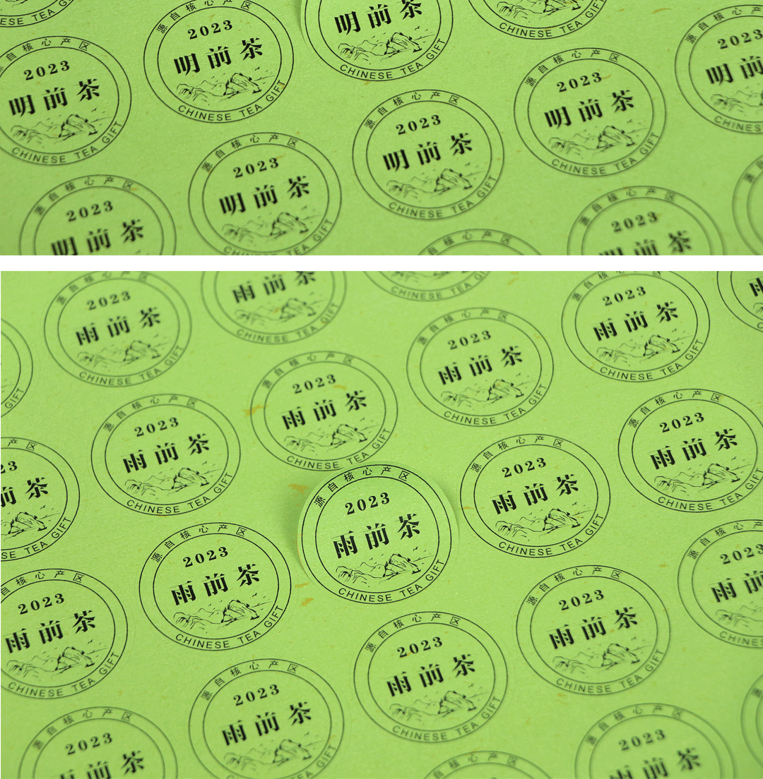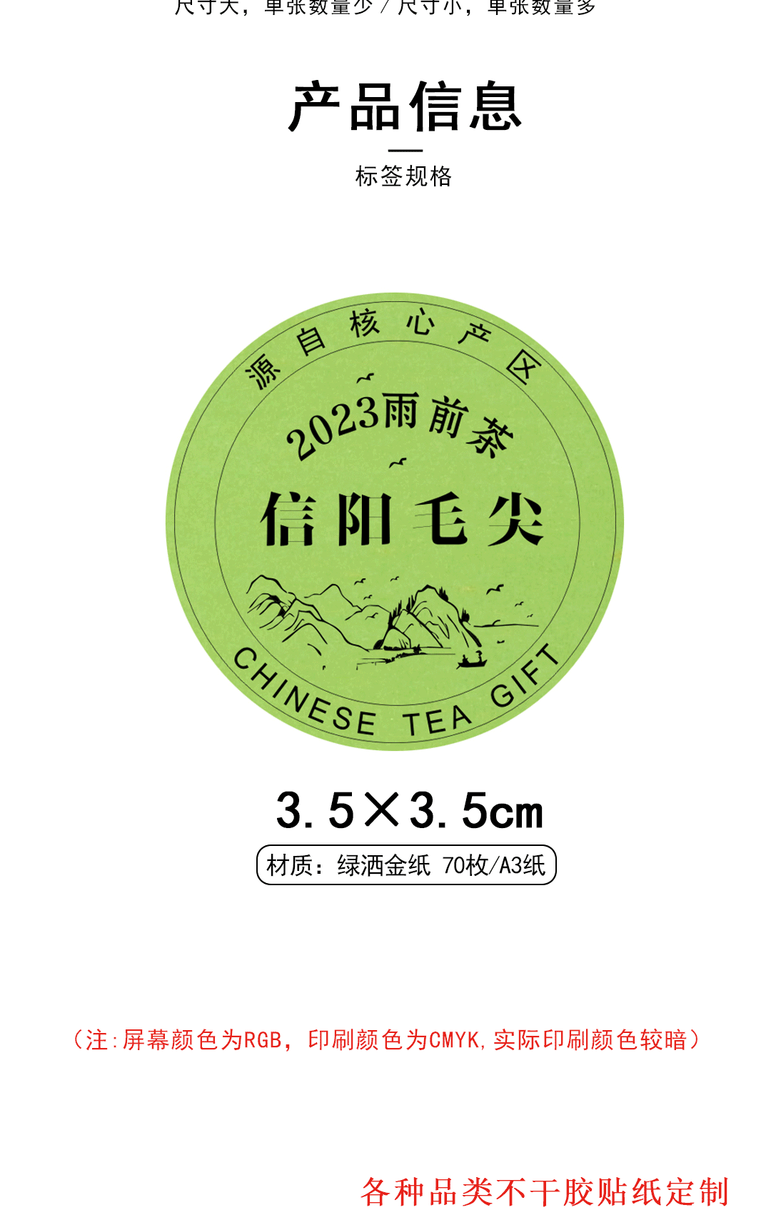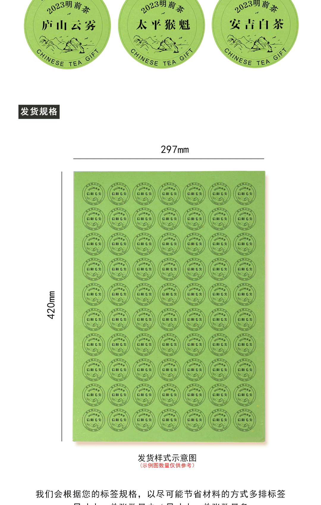 2025明前茶信阳毛尖黑底圆茶标绿色洒金纸一张6元, 满300元河南省内包邮