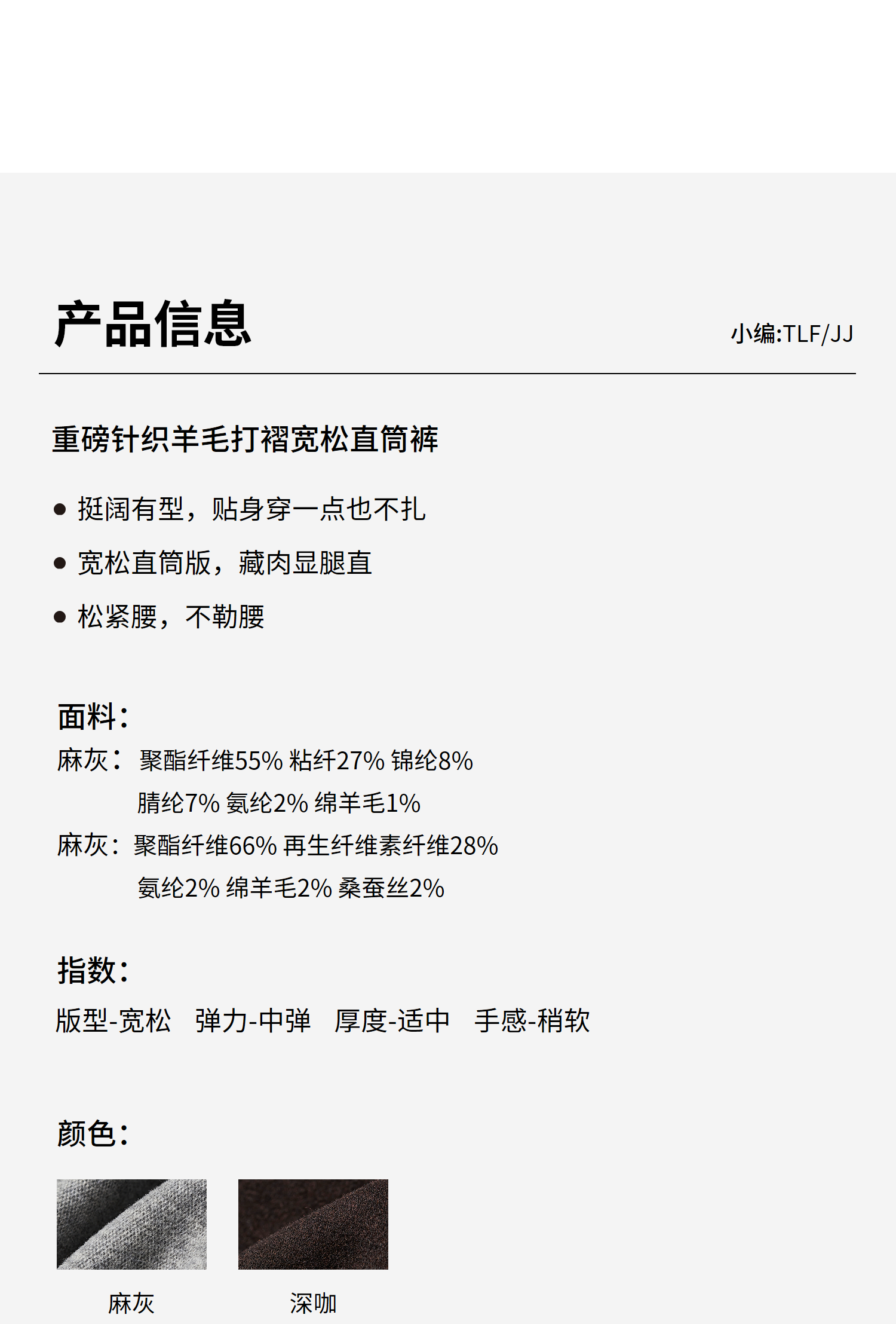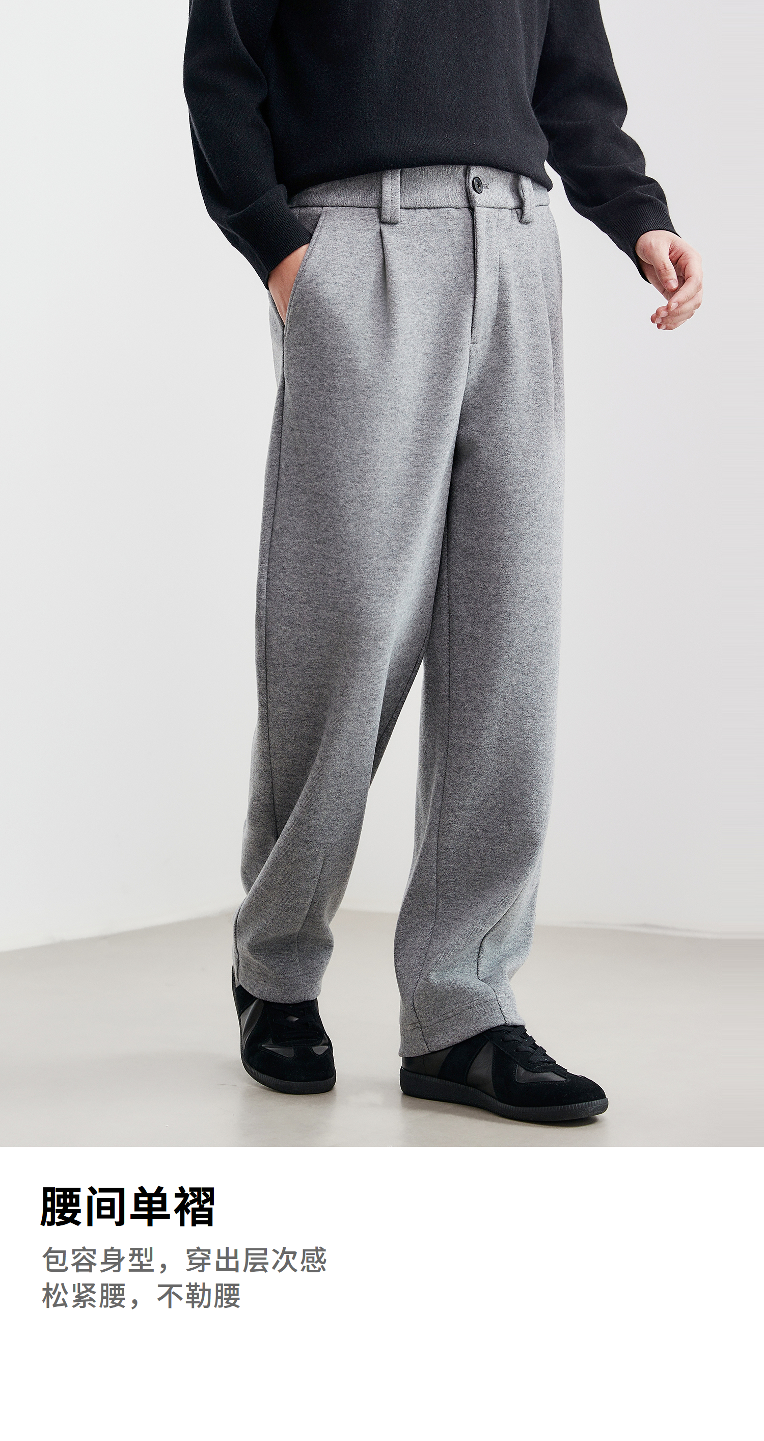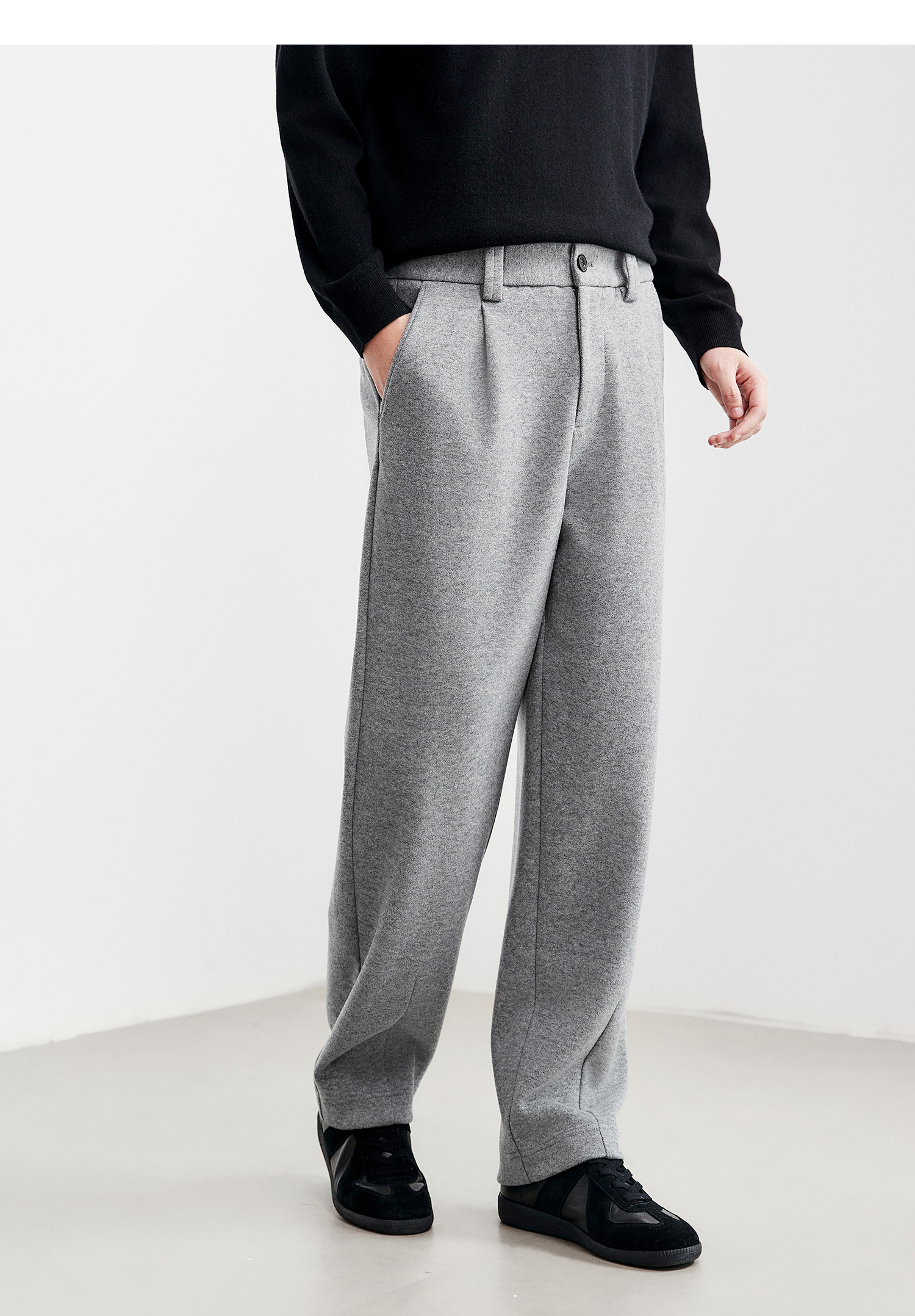 棉仓367818016-重磅针织羊毛打褶宽松直筒裤