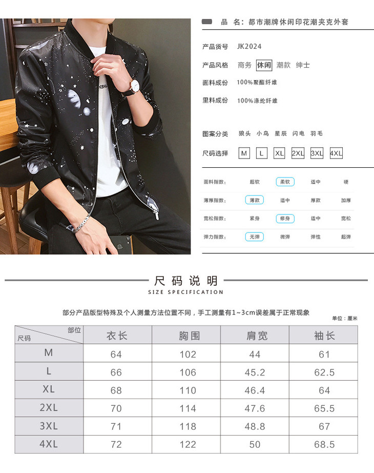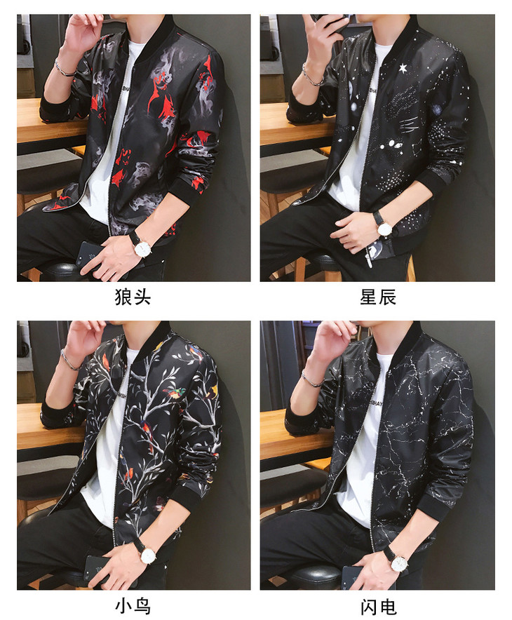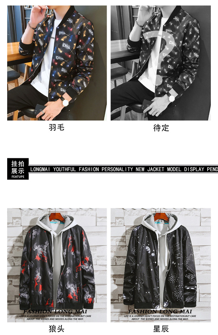 【服饰鞋包】外套男秋季港风休闲棒球领夹克男潮牌多款印花外衣潮流薄款上衣男