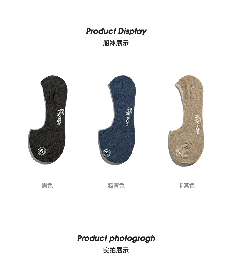 工装优选 复古防臭吸汗薄款船袜夏季低帮印花浅口硅胶隐形袜子男