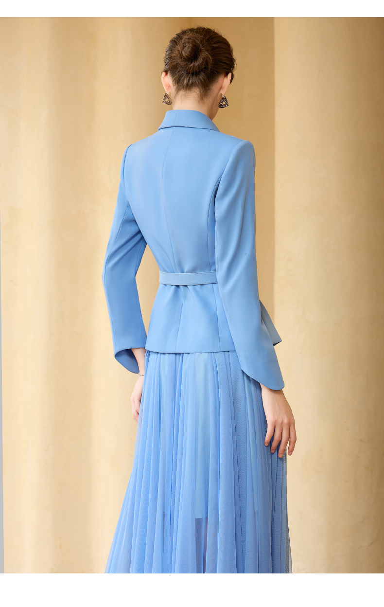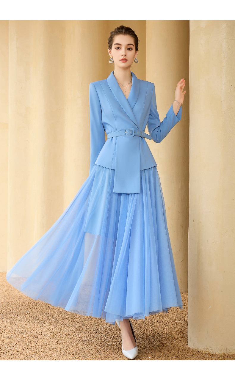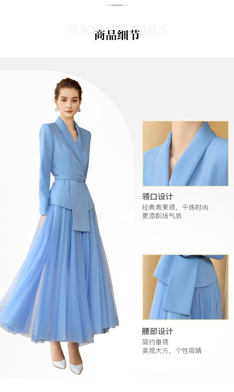 秋季洋气蓝色西服纱裙套装女艺考主持人正装礼仪礼服职业装西装