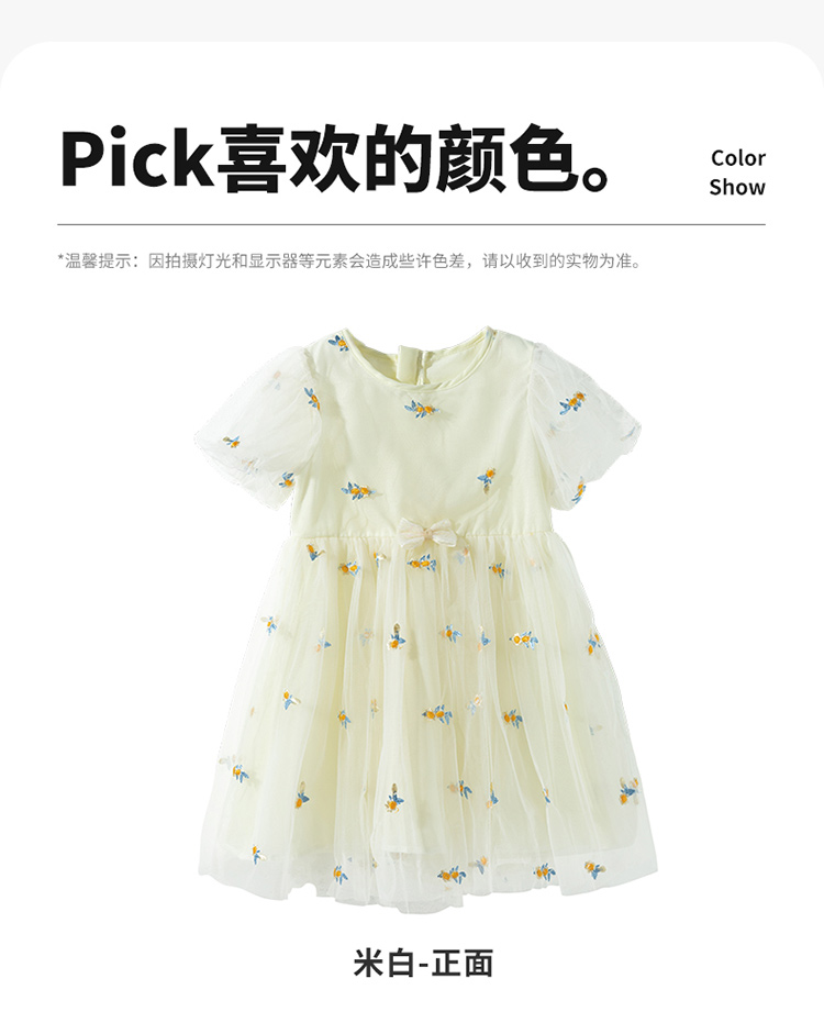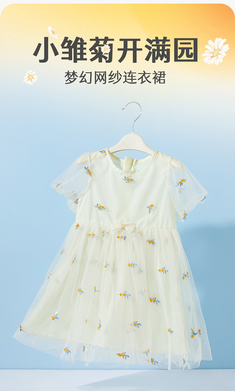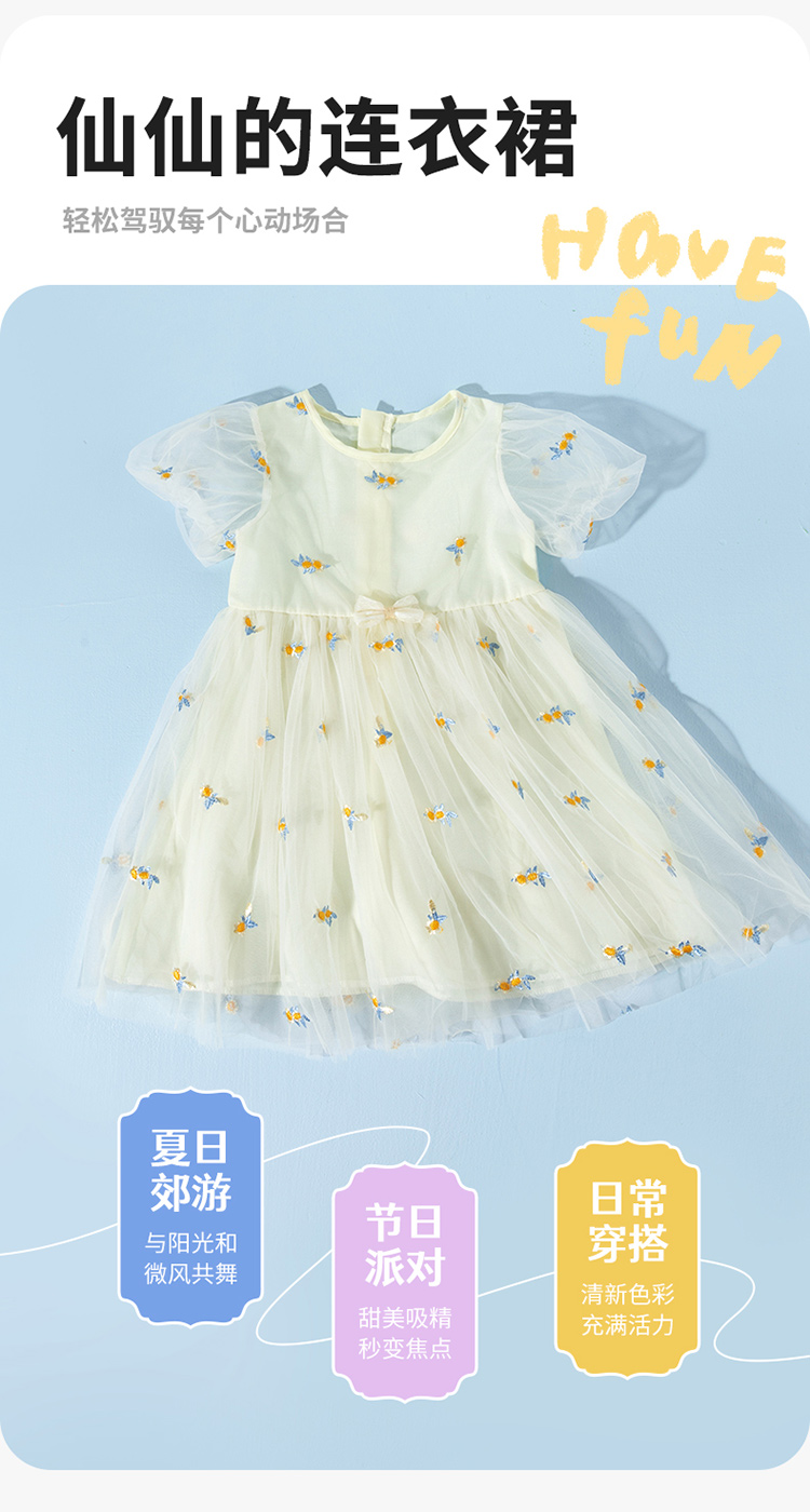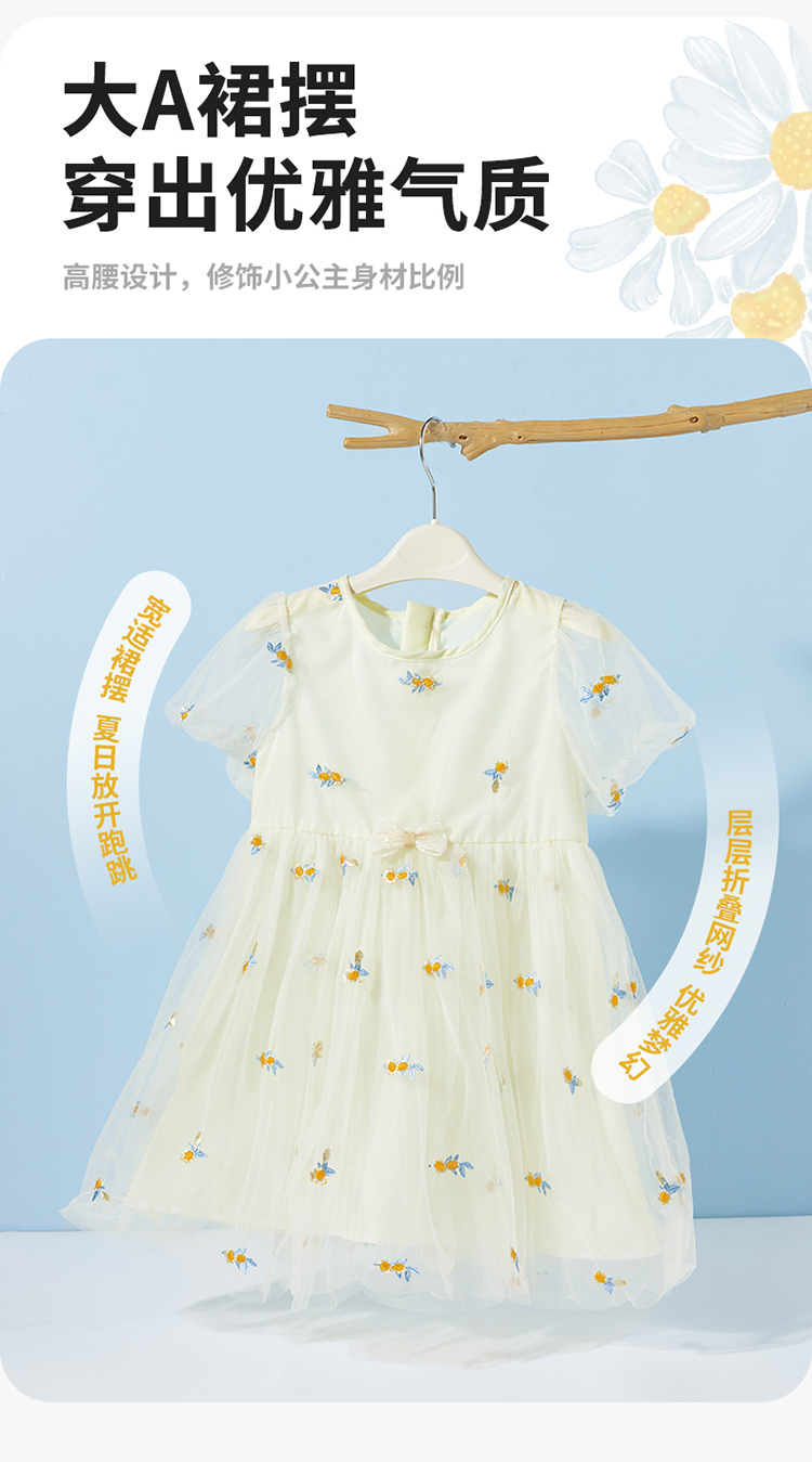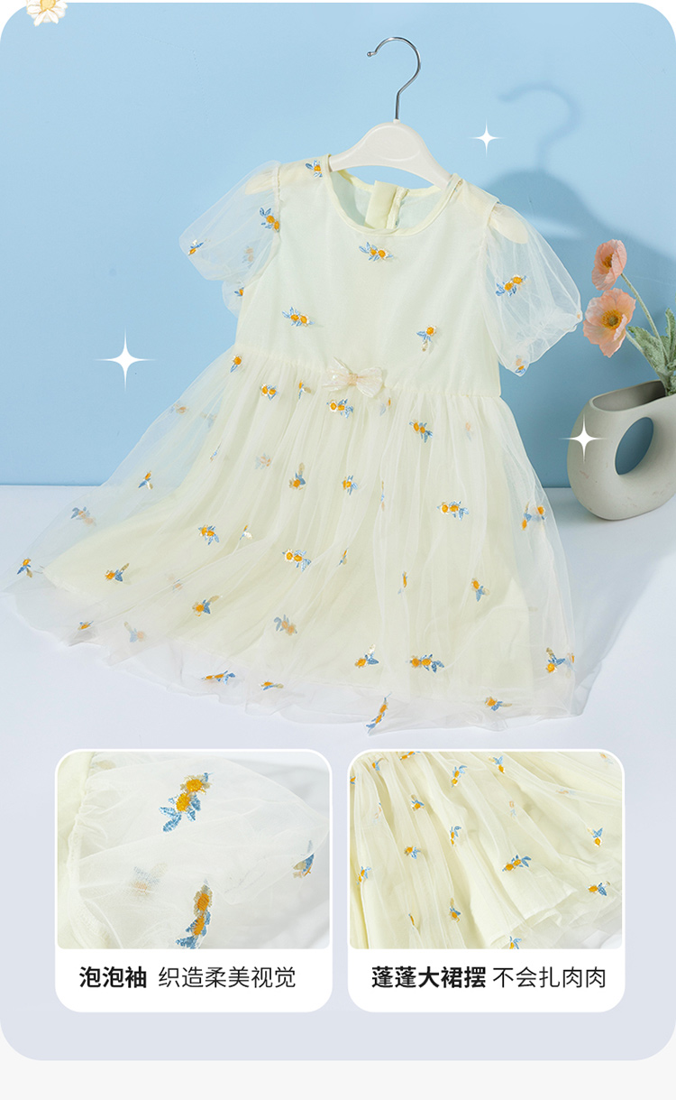 贝贝怡夏季新款女童短袖连衣裙轻薄透气网纱裙时尚百搭宴会公主短裙ZB2EQ018