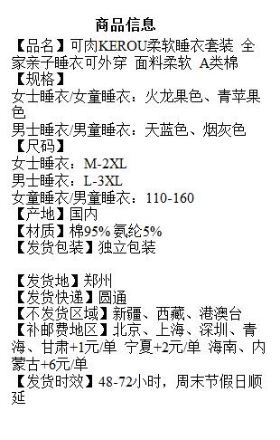 可肉KEROU 男女成人款睡衣套装 睡衣可外穿 面料柔软 A类棉