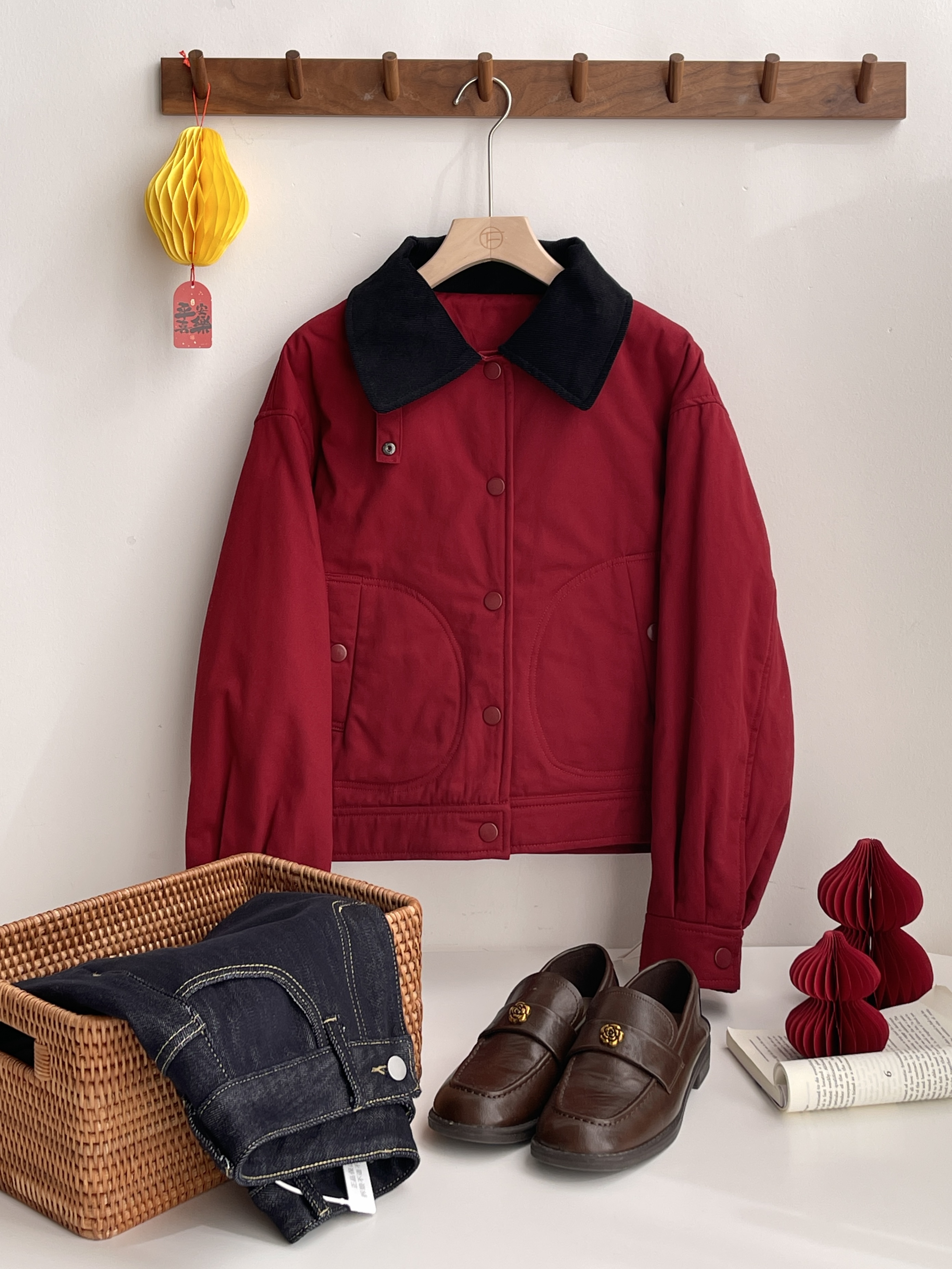 车厘子红太会拿捏新年氛围!显白显气血。截短箱型版,显瘦显高,高矮胖瘦都能驾驭。