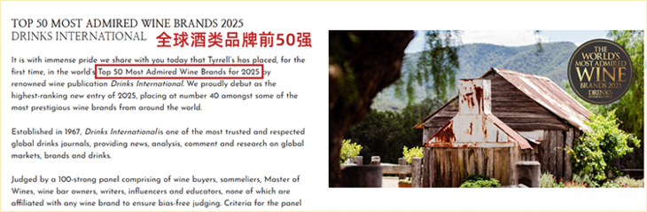 2025年入选Drinks International 全球葡萄酒品牌前50强。