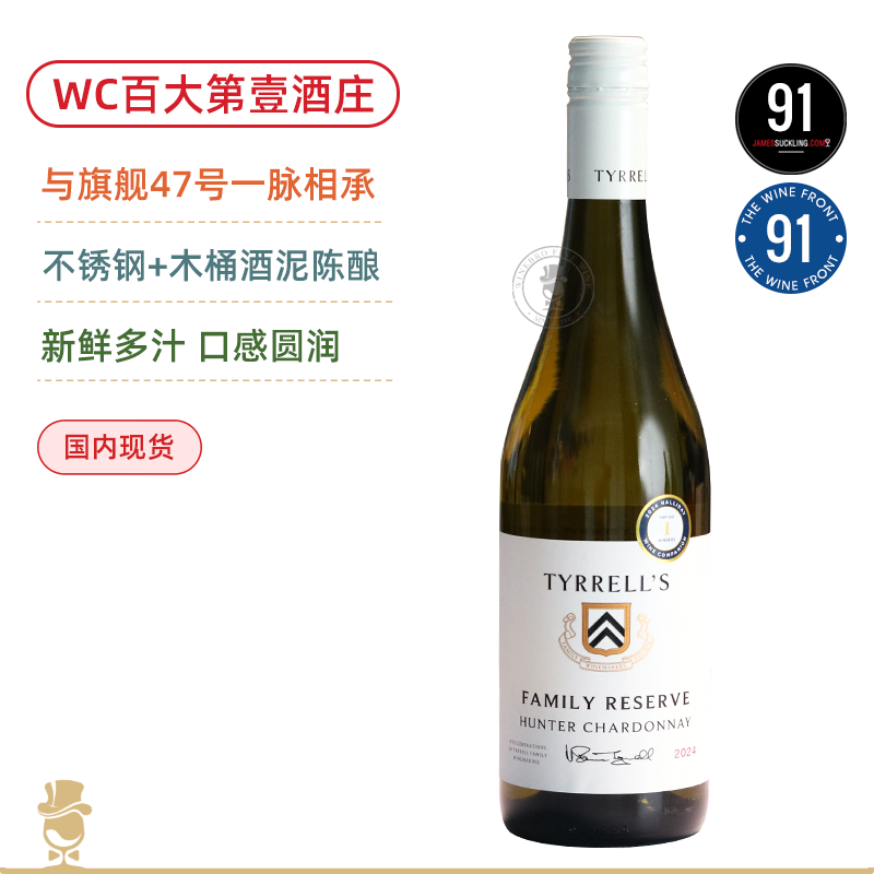 WC百大第壹酒庄!猎人谷赛霞多丽白葡萄酒 Tyrrell’s Family Reserve Hunter Chardonnay 2024
