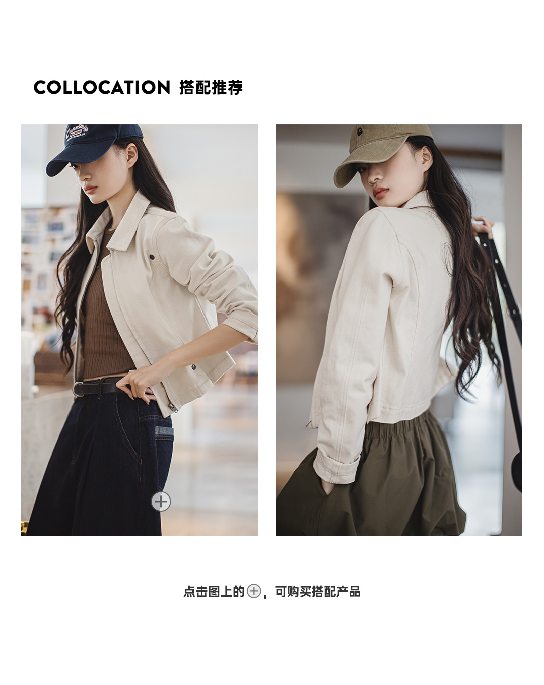 马登巴恩风白色收腰夹克小个子老钱风工装外套Vintage上衣春秋女