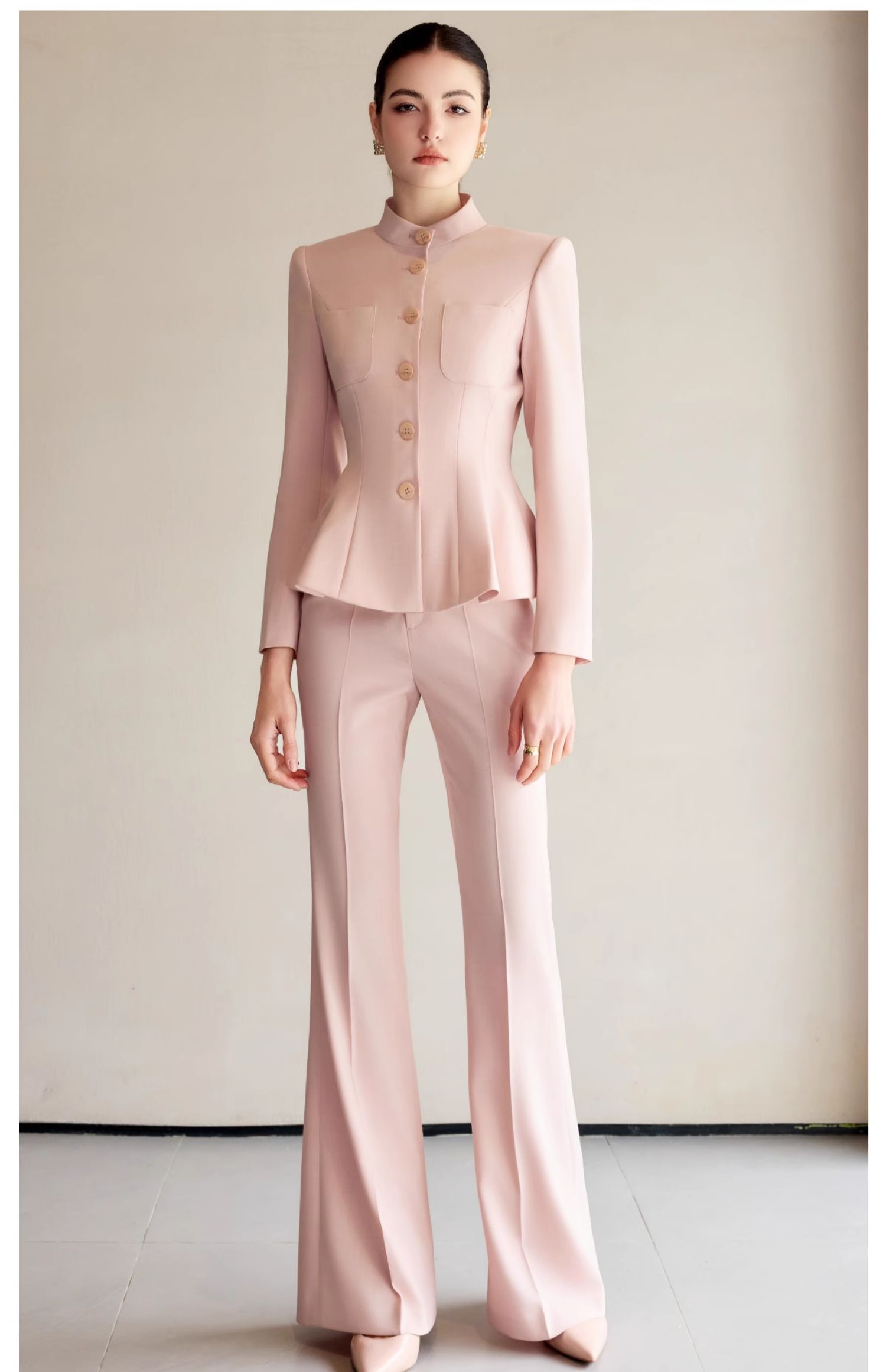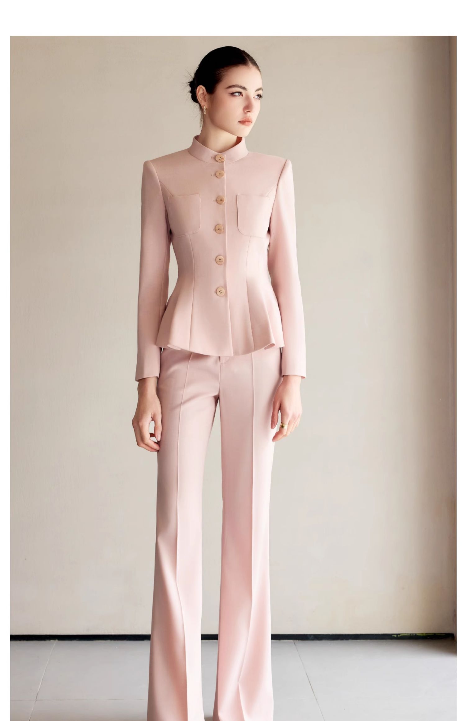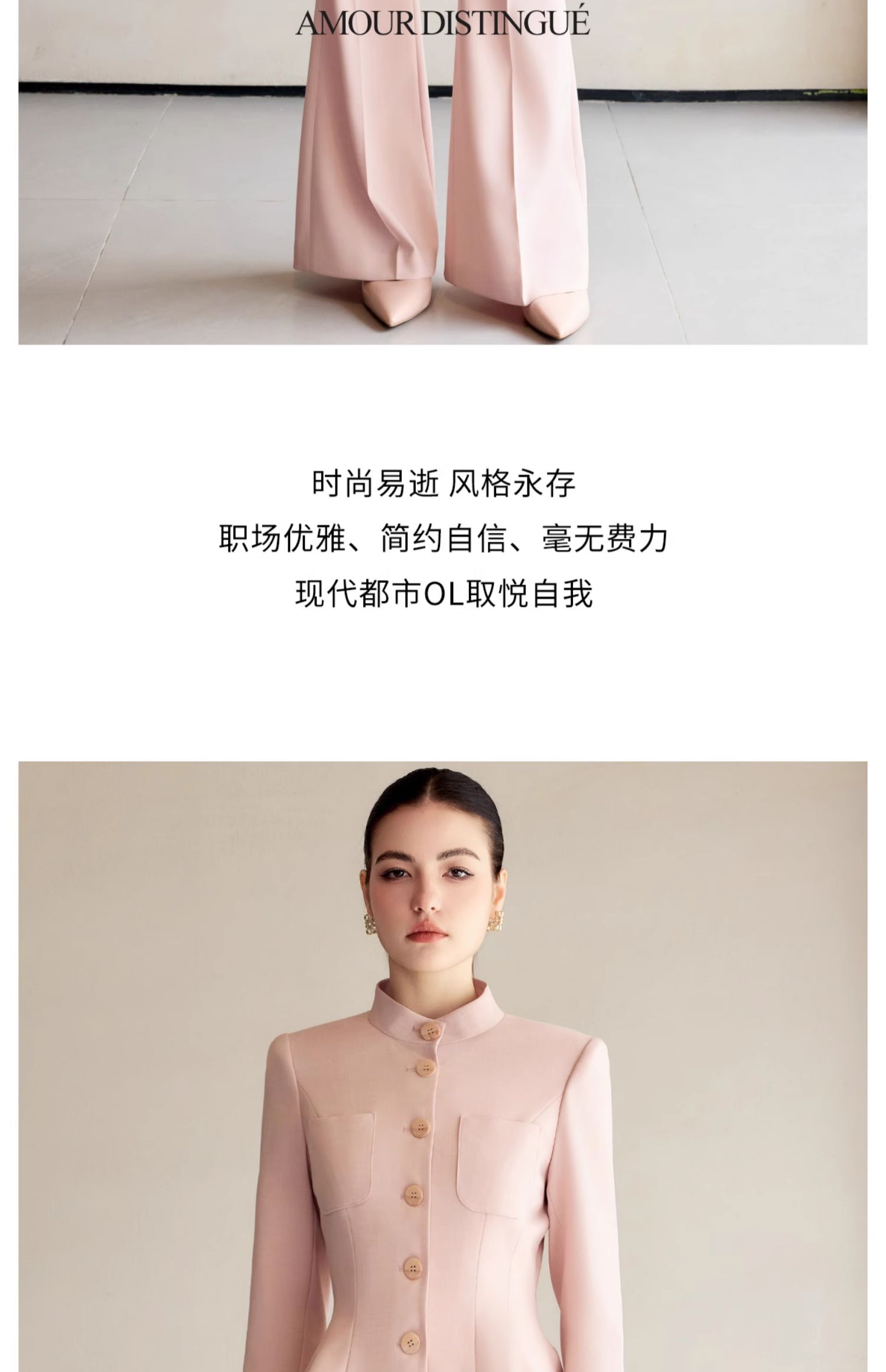 AD2025开春搭配一整套高级感粉色西装套装女显瘦阔腿裤职业两件套