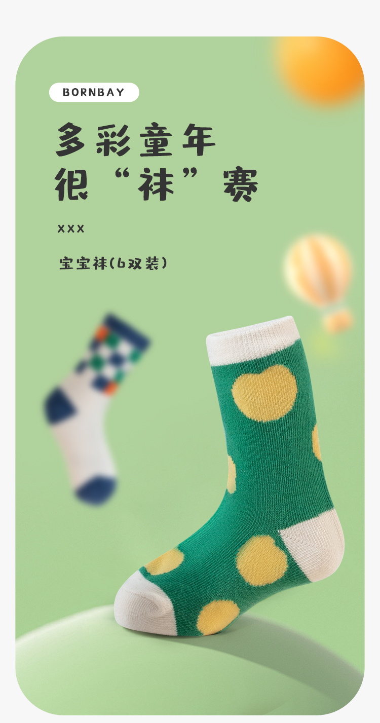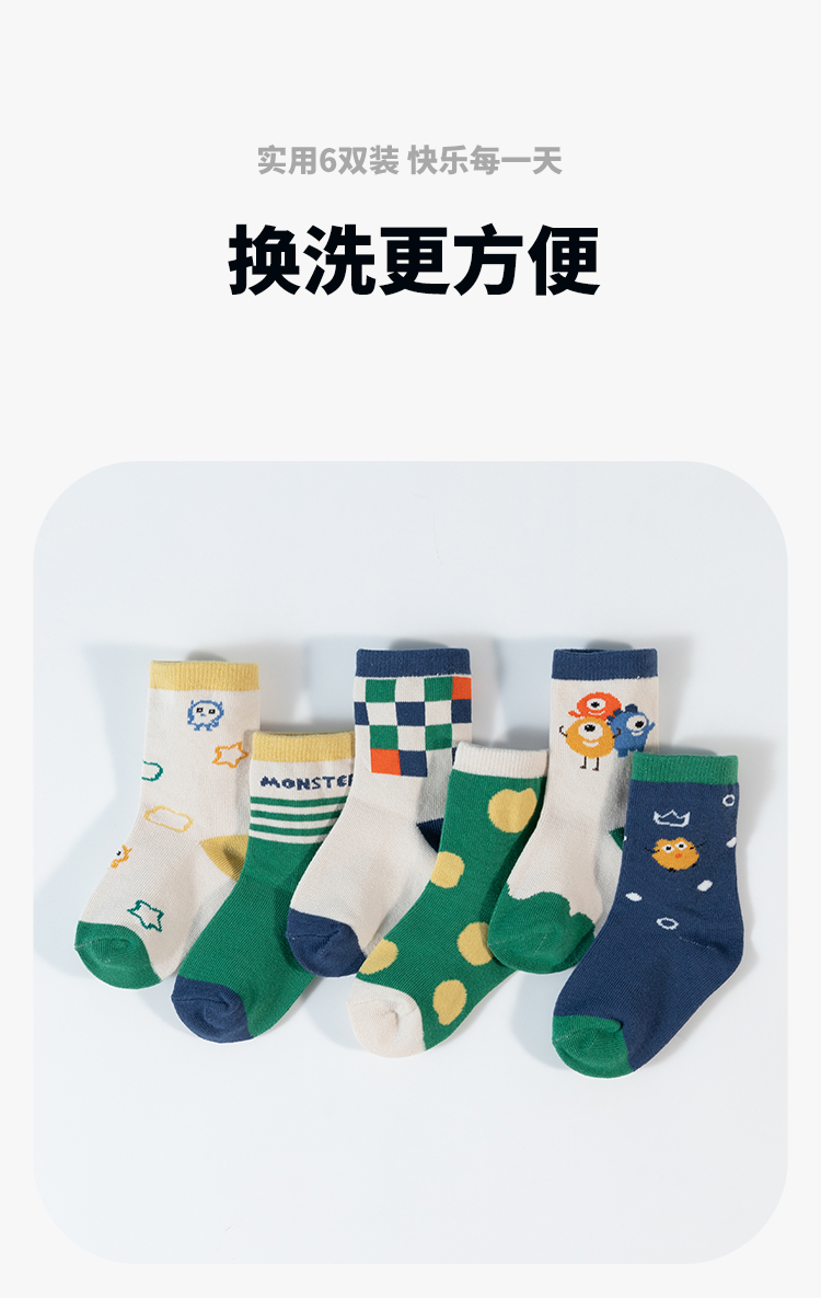 贝贝怡儿童卡通棉袜四季款男宝宝舒适平纹袜宝宝袜(6双装)JB5CP004