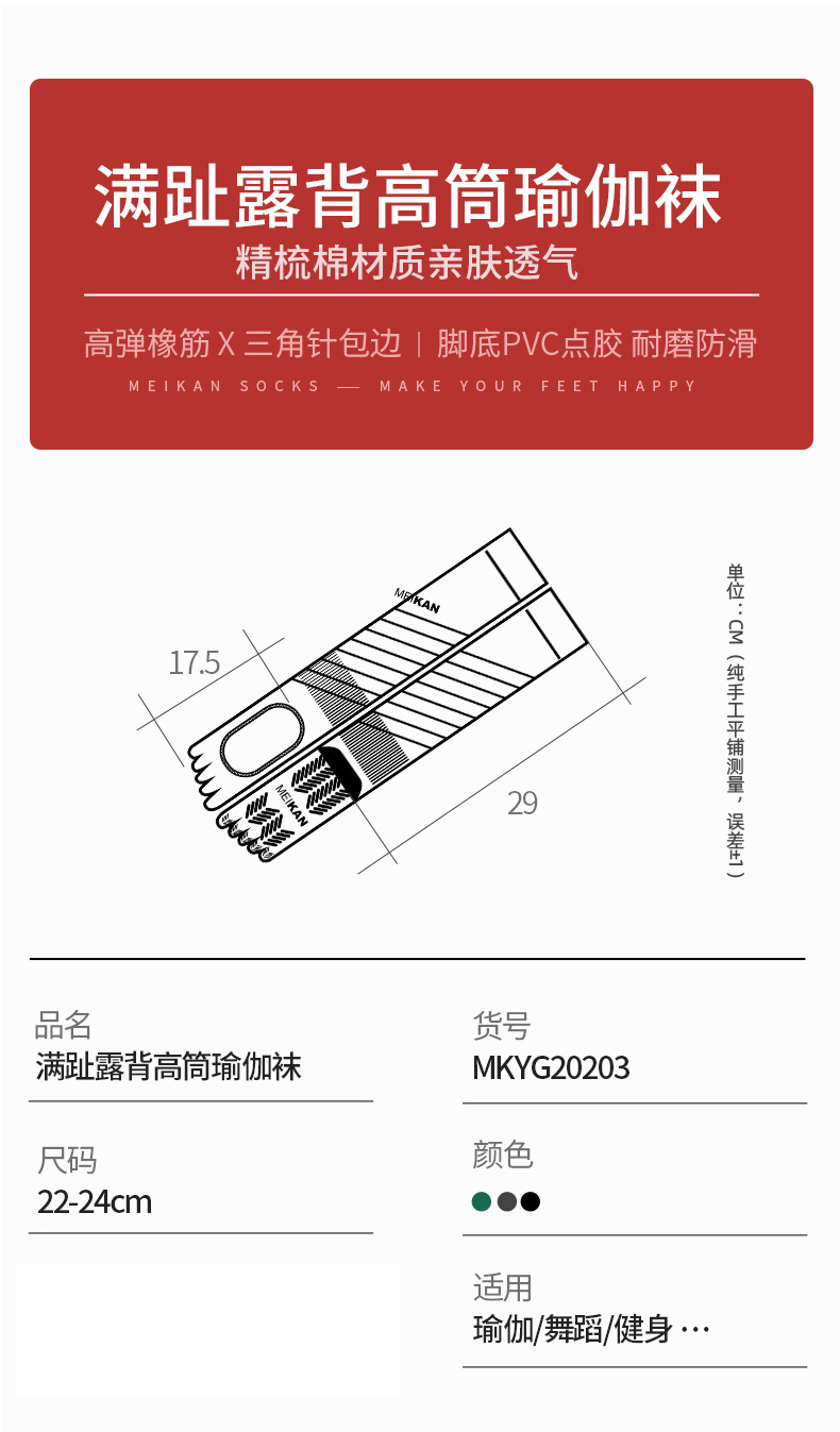 品名:满趾露背高筒瑜伽袜