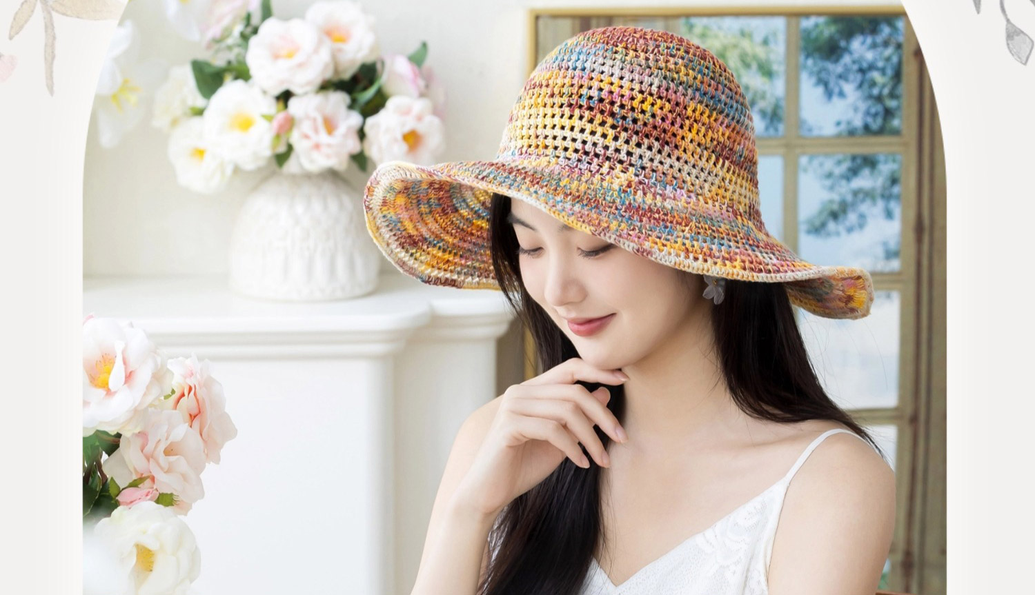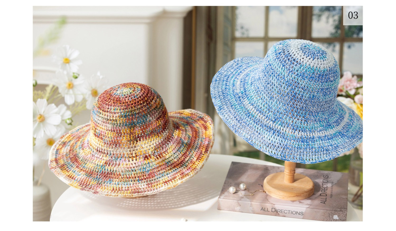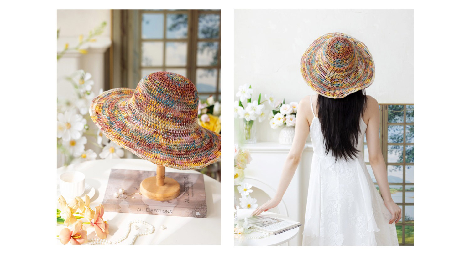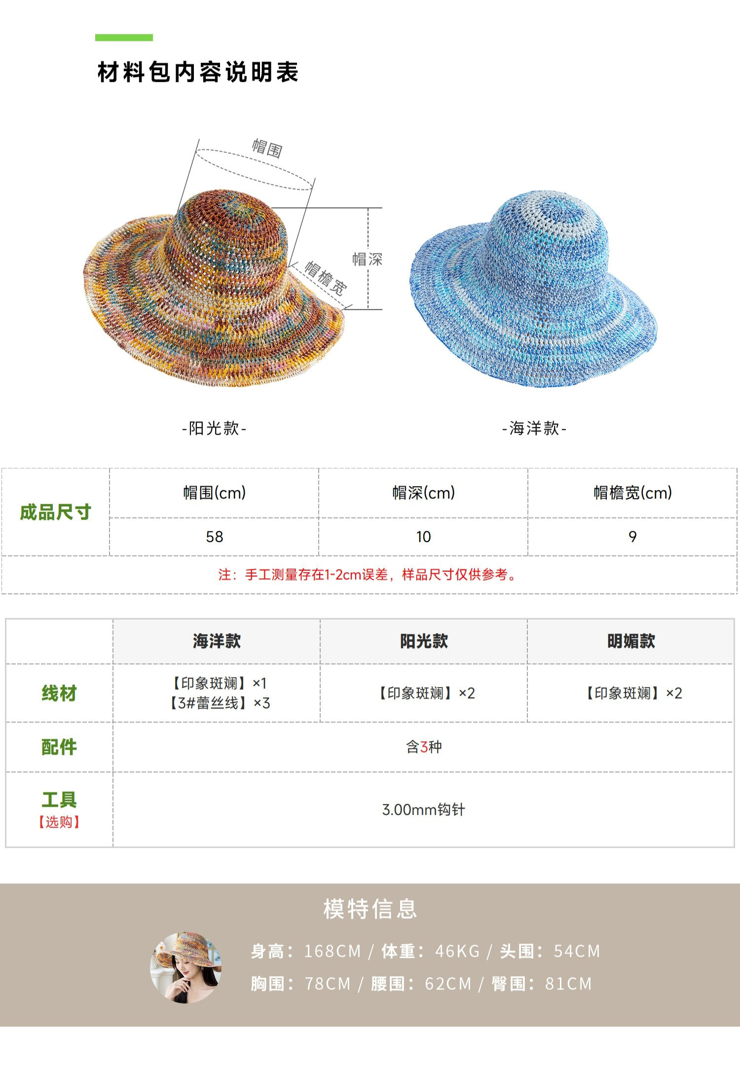 苏苏姐家假日水彩大檐帽手工diy编织钩针蕾丝线毛线遮阳帽材料包