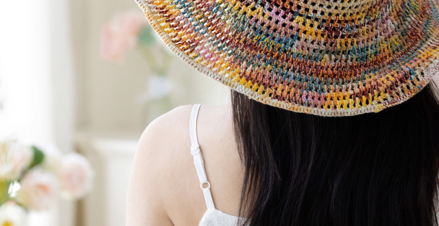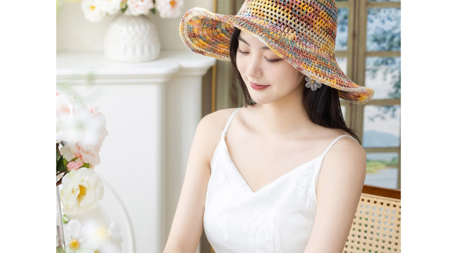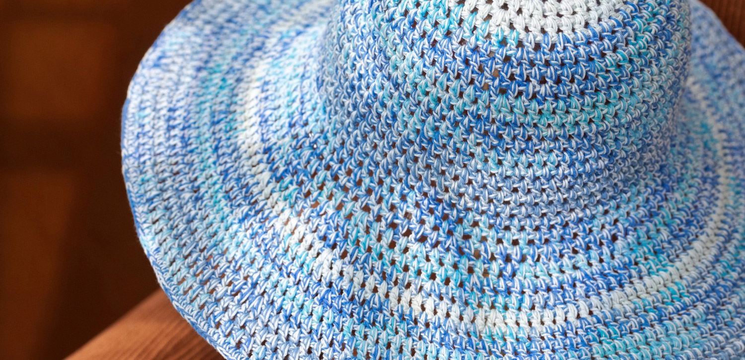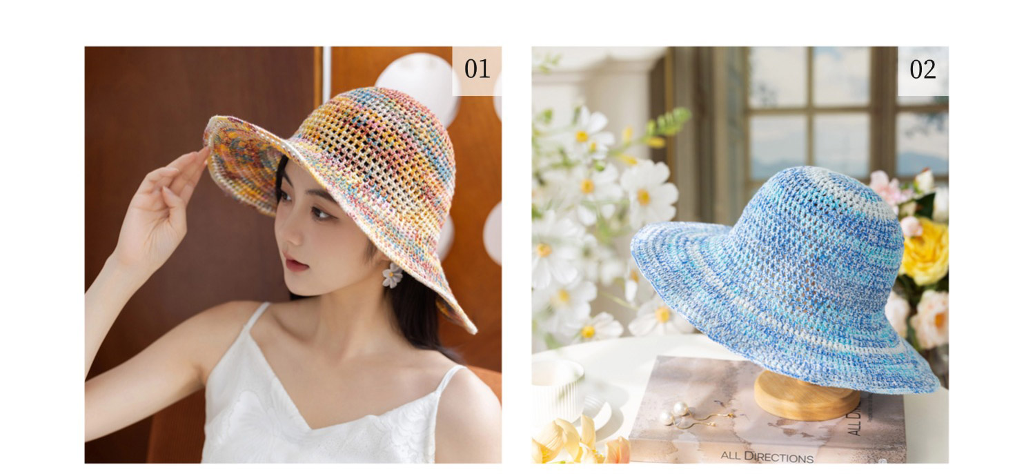 苏苏姐家假日水彩大檐帽手工diy编织钩针蕾丝线毛线遮阳帽材料包