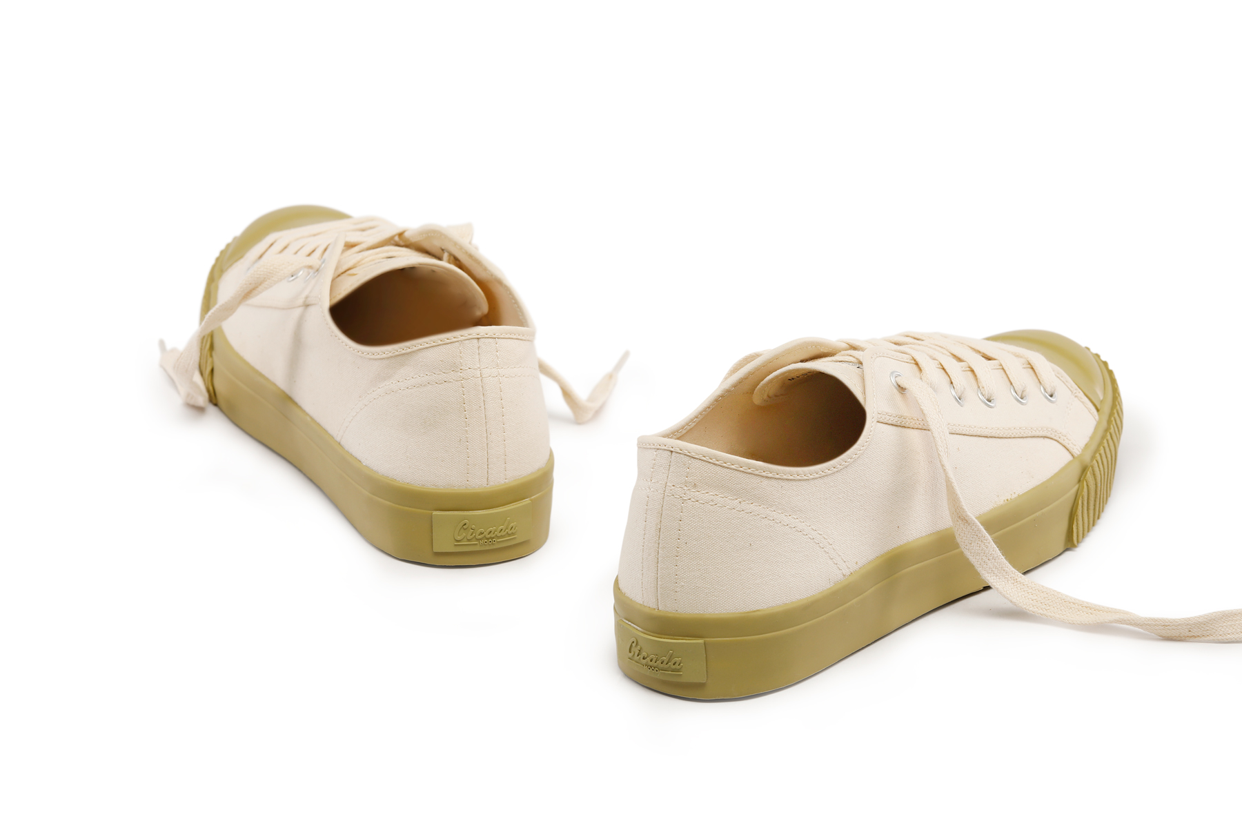 Cicadahood日本冈山帆布低帮硫化鞋 本白/橄榄绿款 原创 复古工装