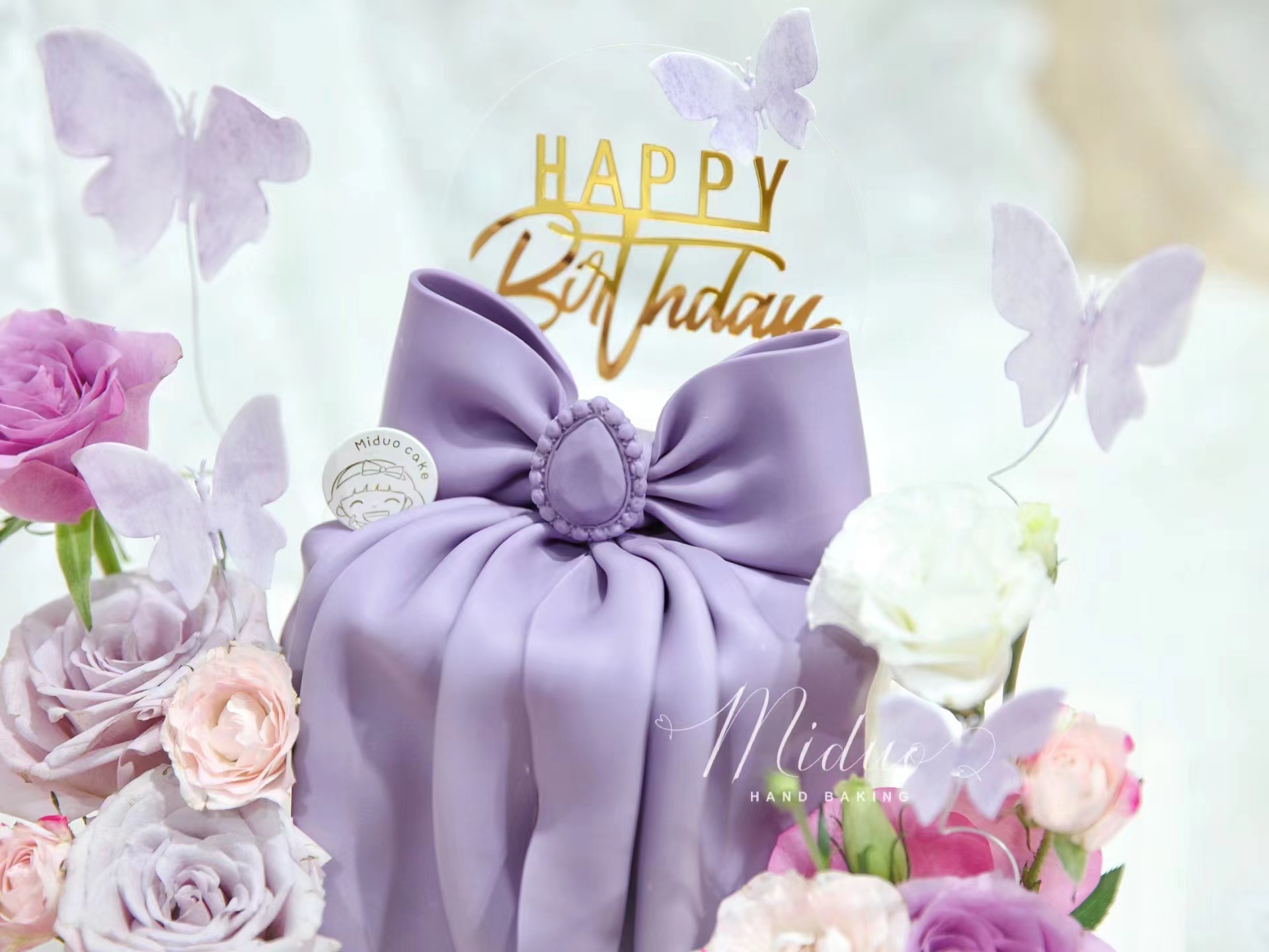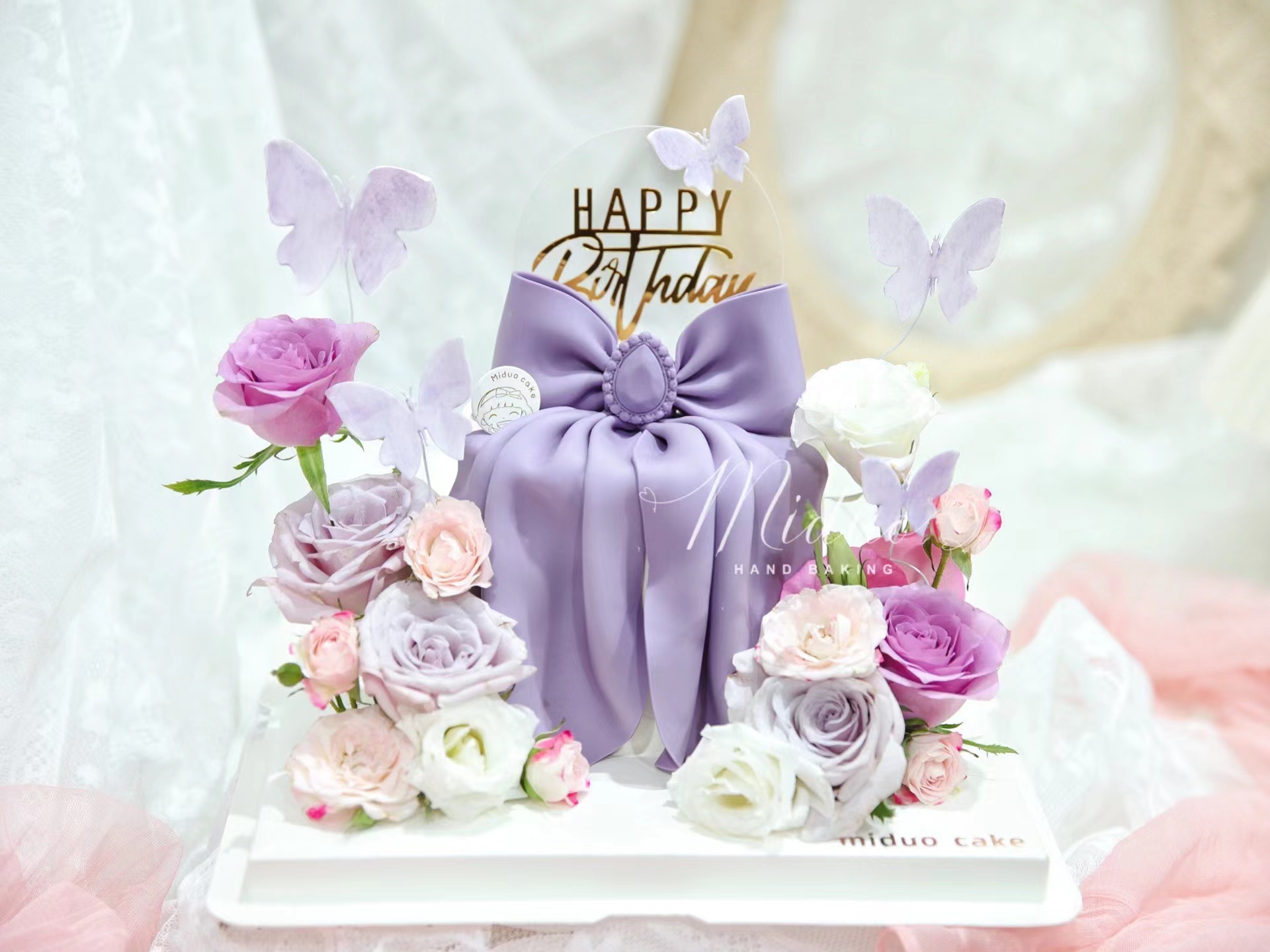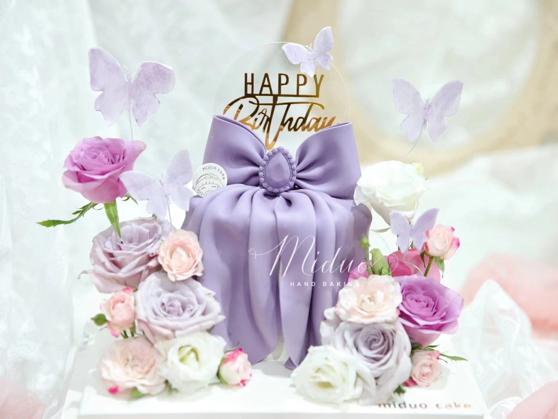 女士款 仙气紫色鲜花 优雅 紫色蝴蝶结蛋糕