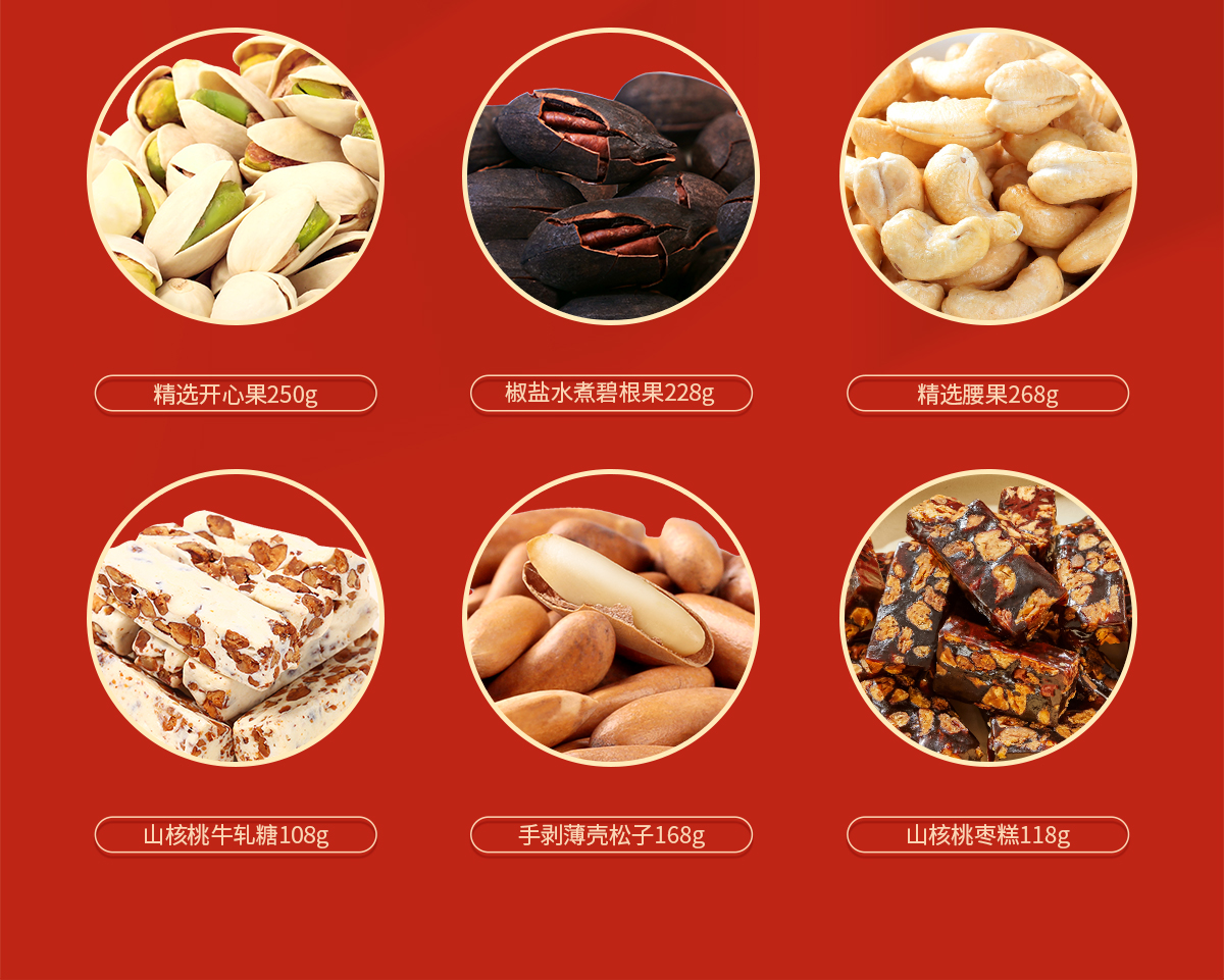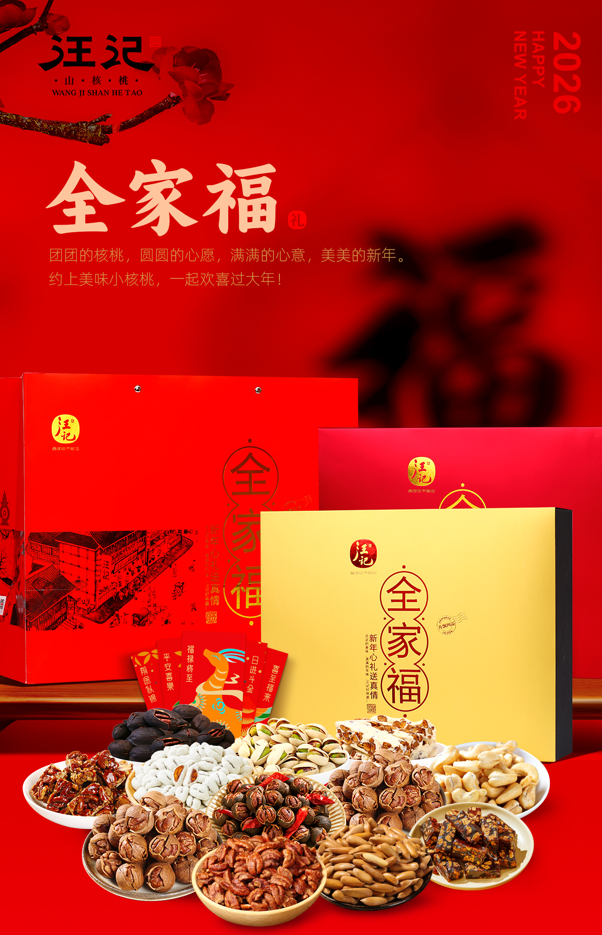 【全家福年货礼盒】 汪记山核桃坚果组合品种丰富可代写贺卡净重2127g