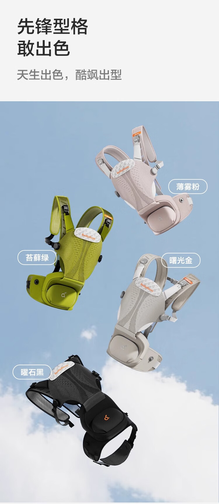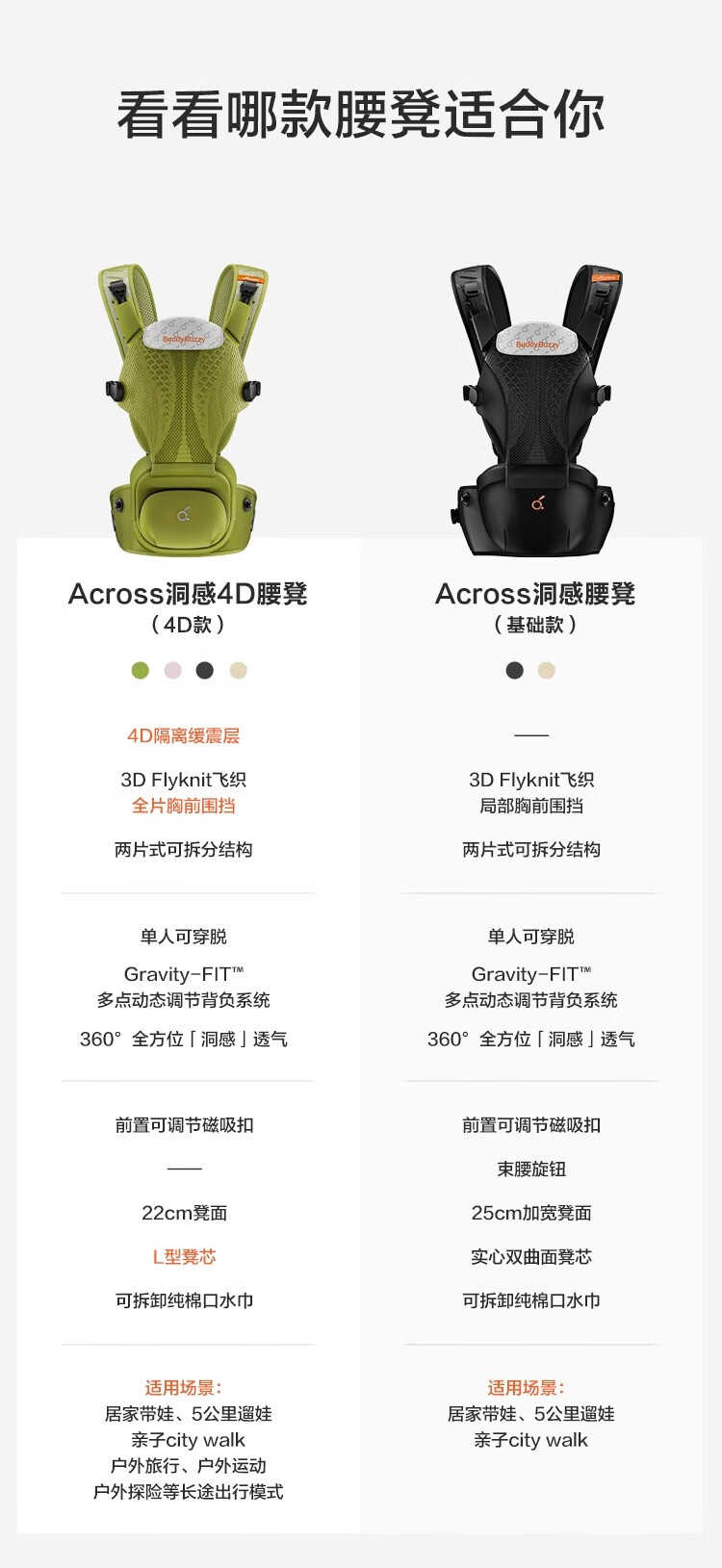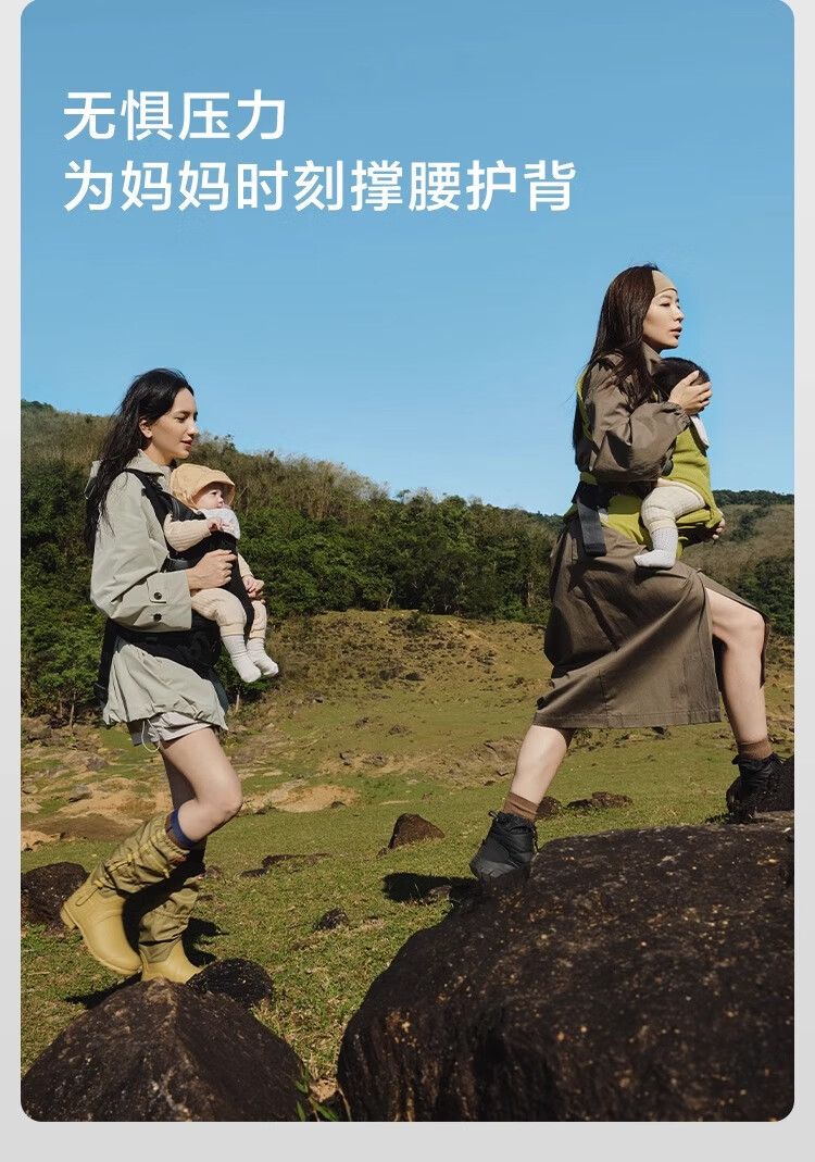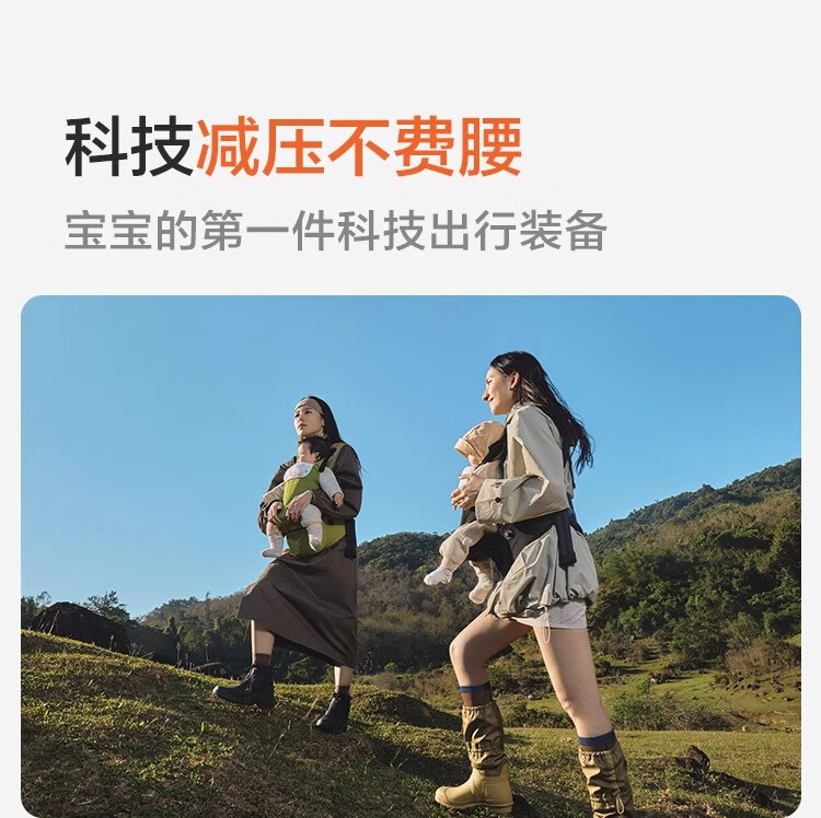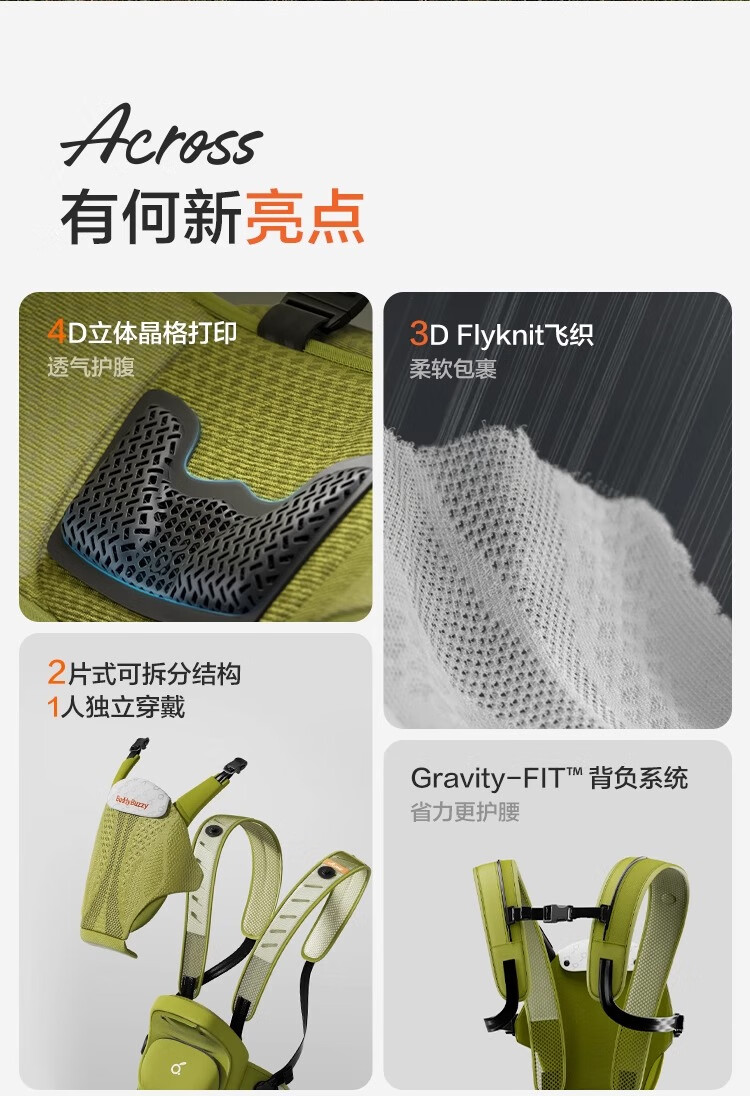 【5F】英氏 两只兔子Across洞感4D腰凳背带二合一轻便两片式护腰便捷穿戴透气 4D升级款-苔藓绿