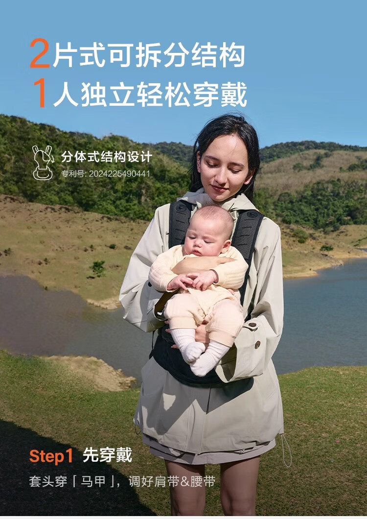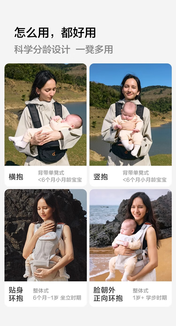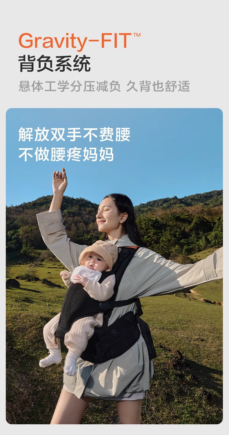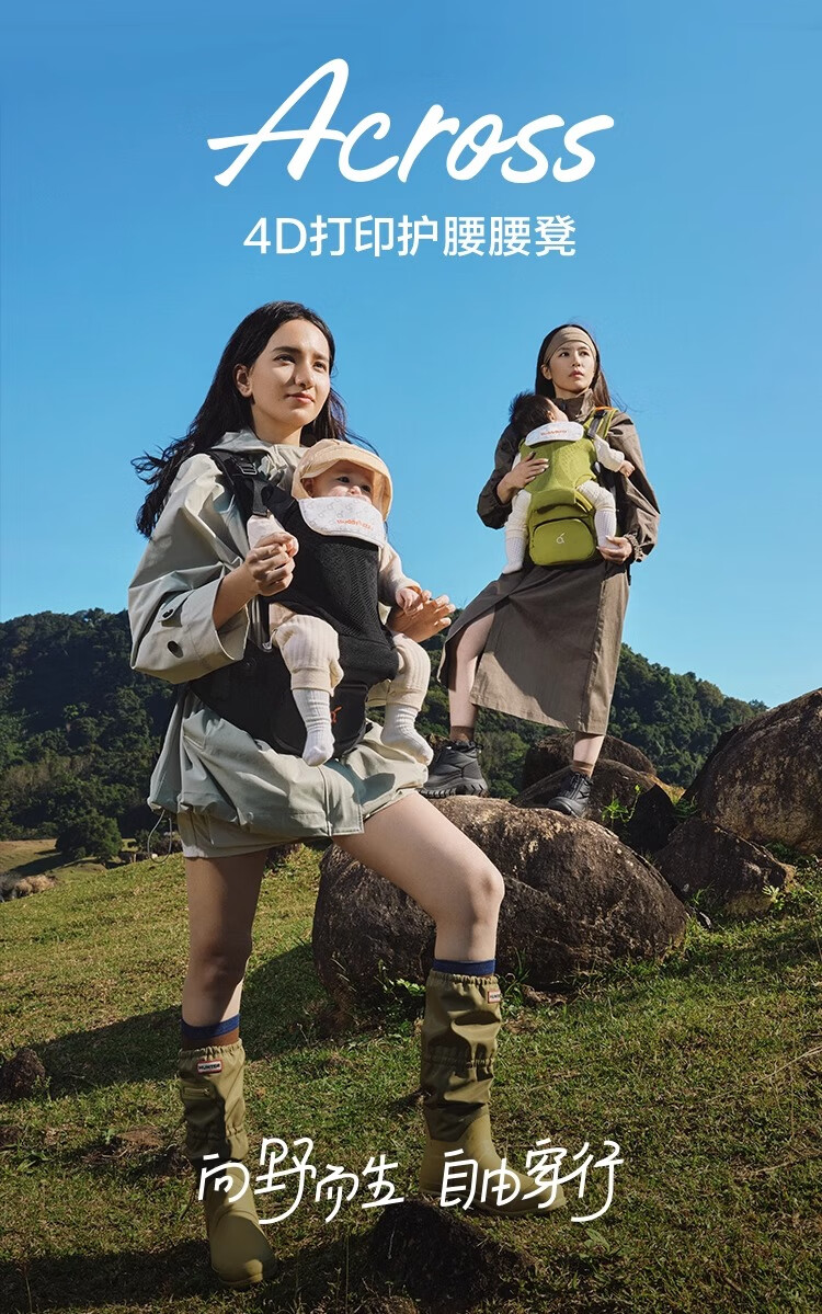 【5F】英氏 两只兔子Across洞感4D腰凳背带二合一轻便两片式护腰便捷穿戴透气 4D升级款-苔藓绿
