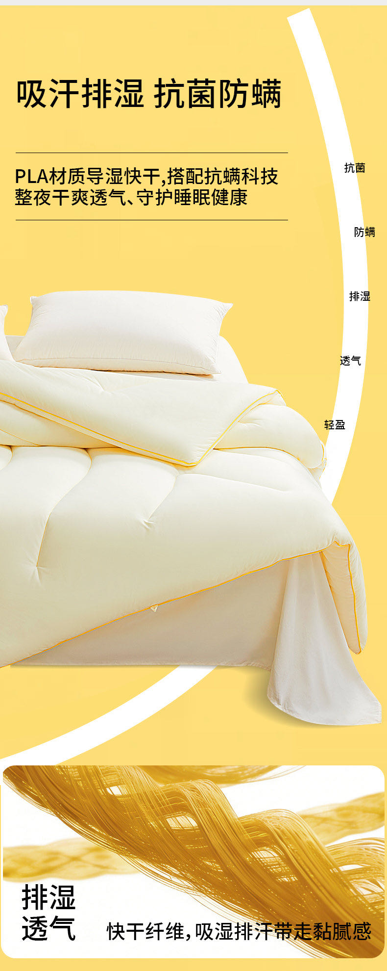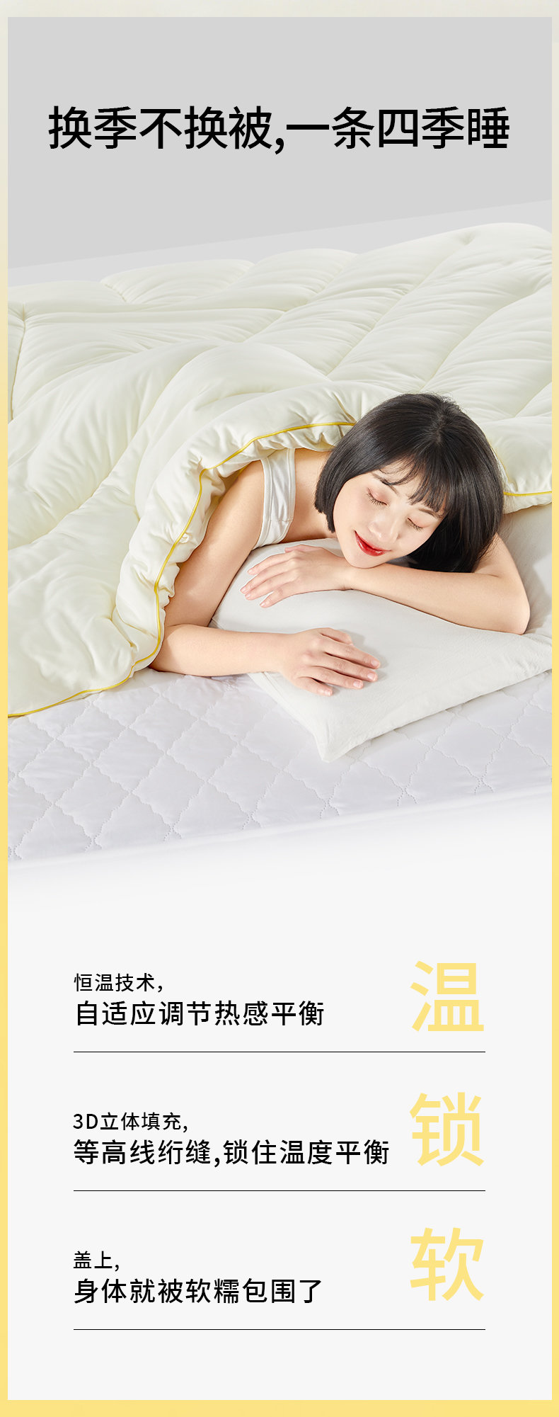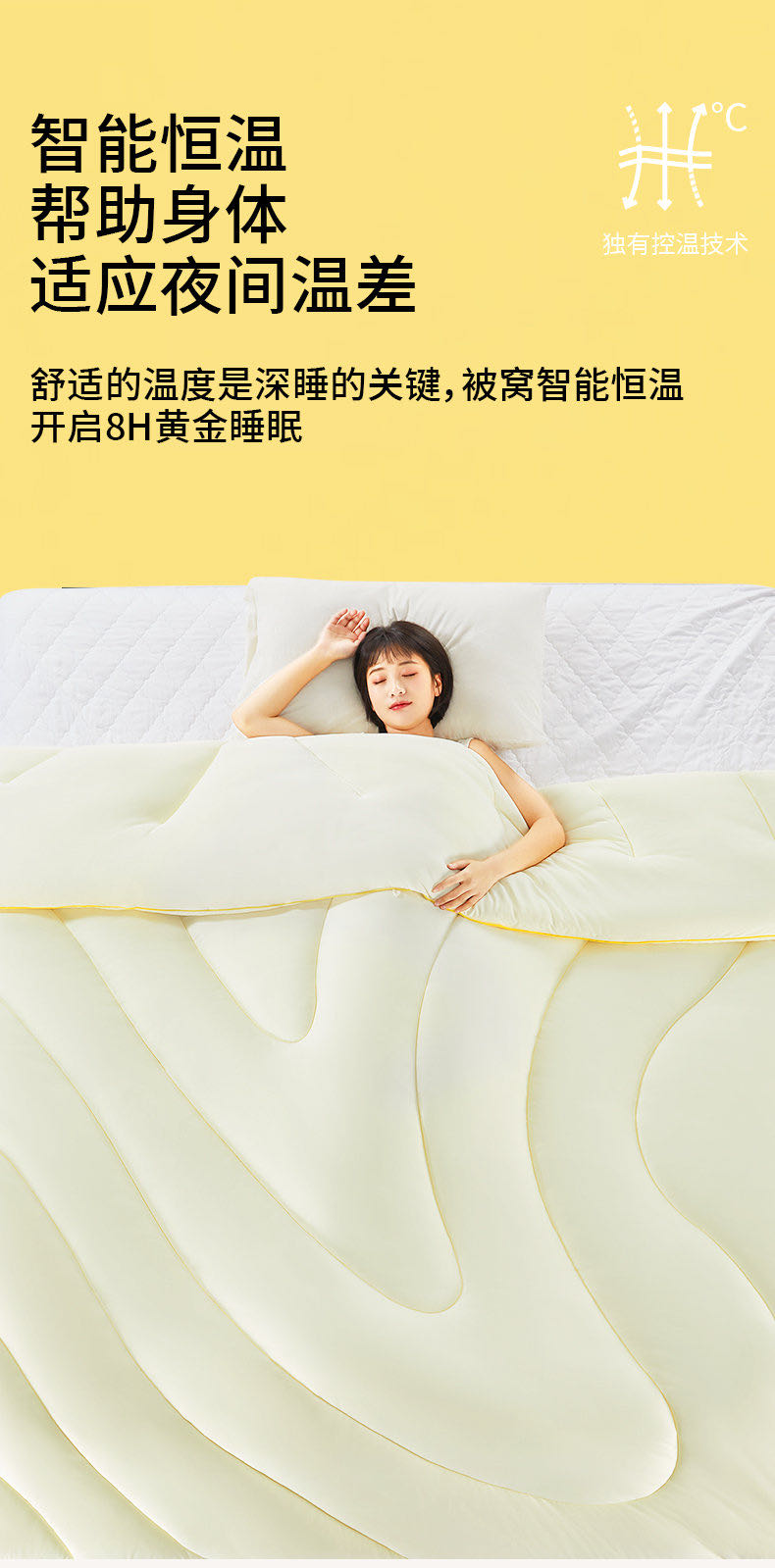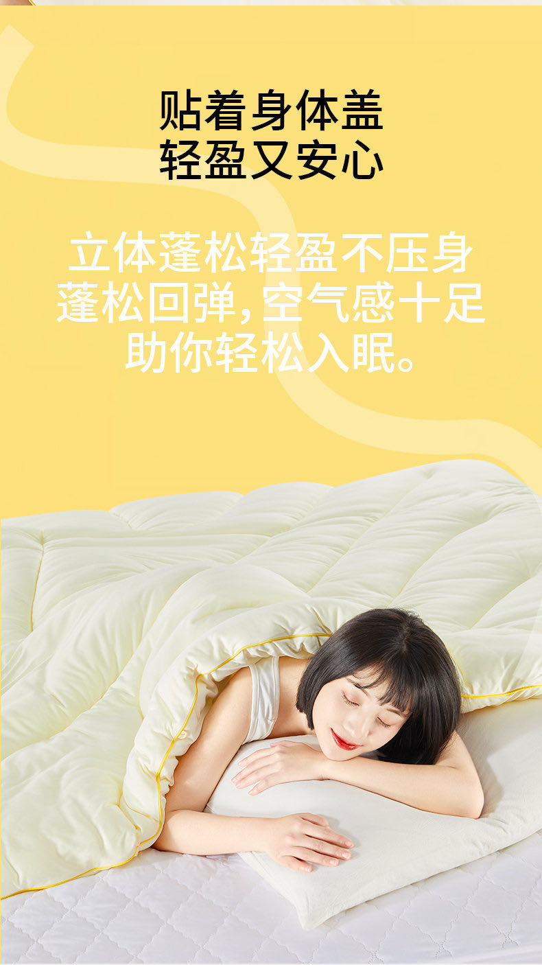 智能恒温,抗菌防螨双在线,一整晚无压力安睡,浅眠星人都能睡个好觉~