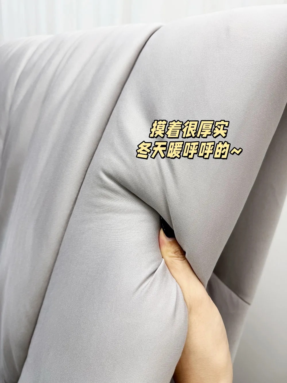 而且这种工艺还能让面料更有蓬松度,盖在身上轻盈不压身,却能牢牢锁住温度,一钻进去根本不舍得出来!!