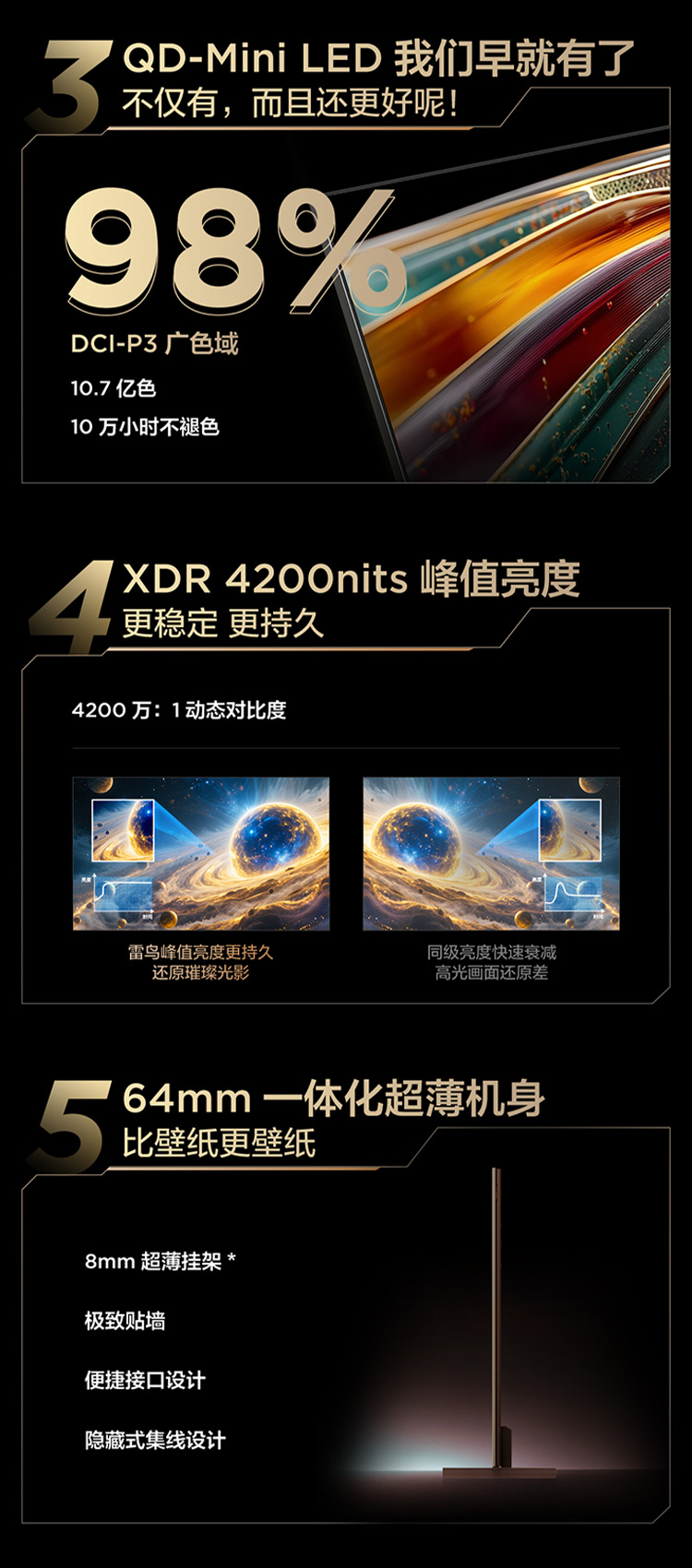 【FFALCON雷鸟】鹤7 PRO 25款98英寸 0.5%LR低反膜 QD-MiniLED HVA屏一级能效电视 无开机广告 98R795C